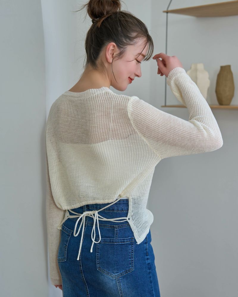 バックデザイン透かし編みニット