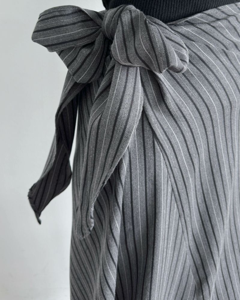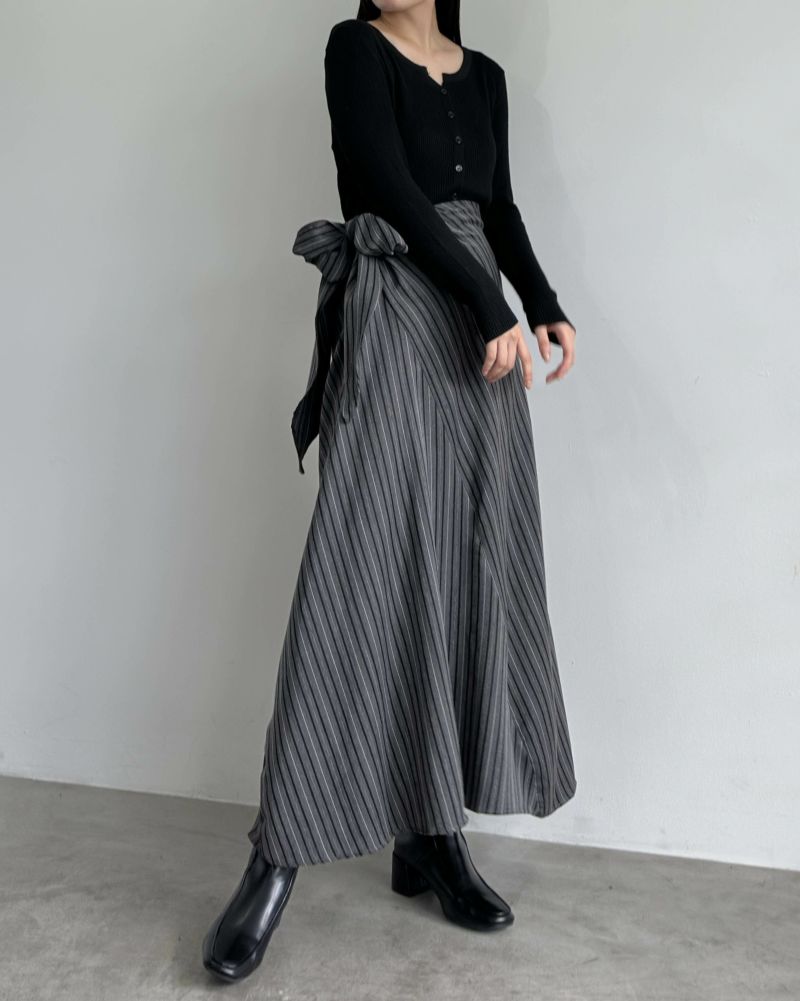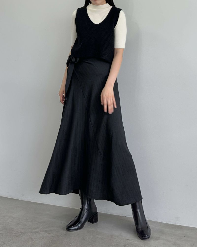 ウエスト周りはゆとりがあり大きめのサイズ感です。また腰周りが目立ってバランスが悪く思ってた感じとは違った。 リボンで結ぶからトップスを長めにして隠そうにも膨らみが出るし着こなすのがとても難しい。