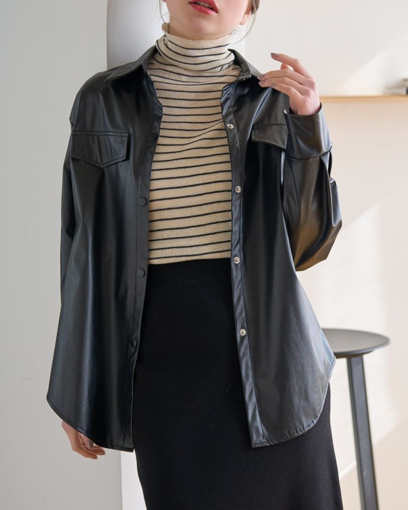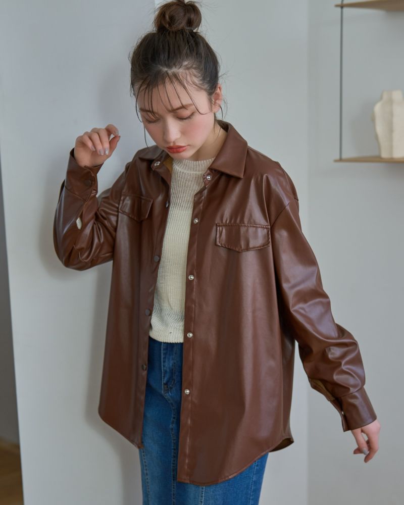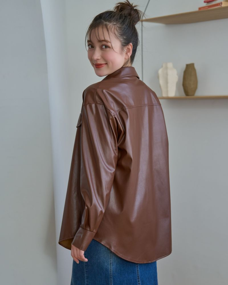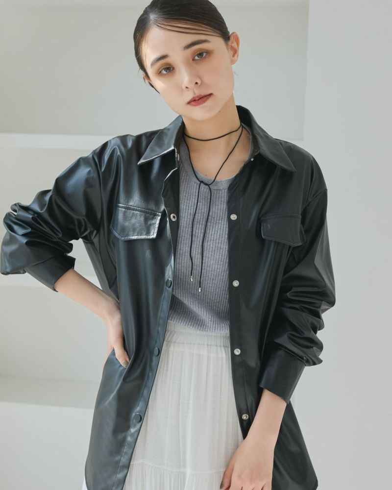 フェイクレザーシャツ