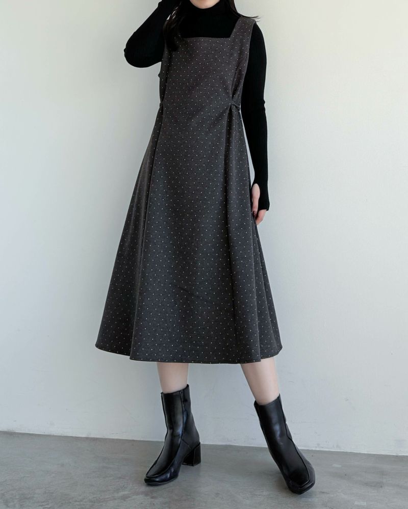 スクエアカットドットワンピース