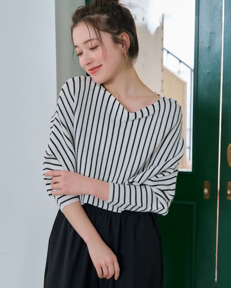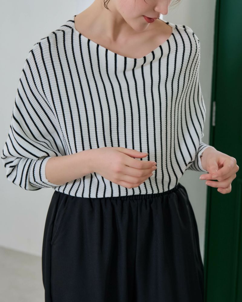 ホワイト購入しました。薄手の生地なので、もう少し暖かくなったら着用したいです。首元も開きすぎず、綺麗なネックラインがでます!ドルマンなのでウエストインしてもしなくても可愛いです。インスタライブの通りサロペットに合わせたらすごくオシャレです!