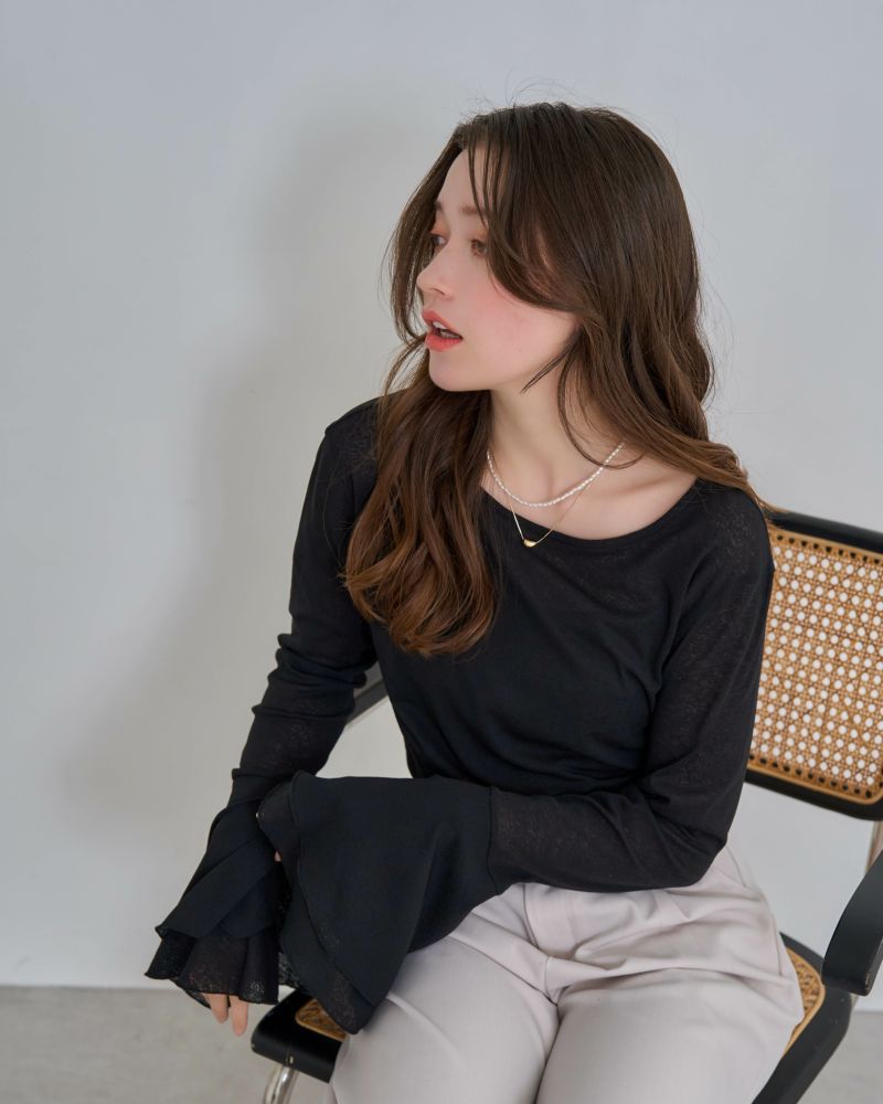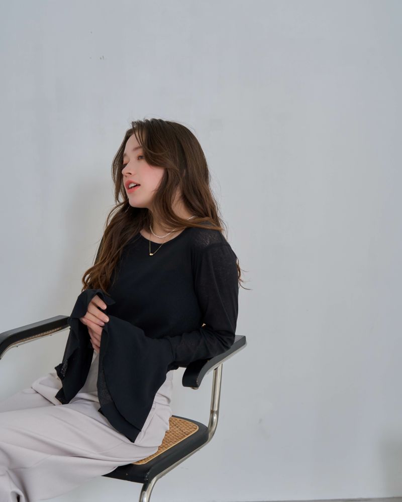 フレアスリーブシアーカットソー