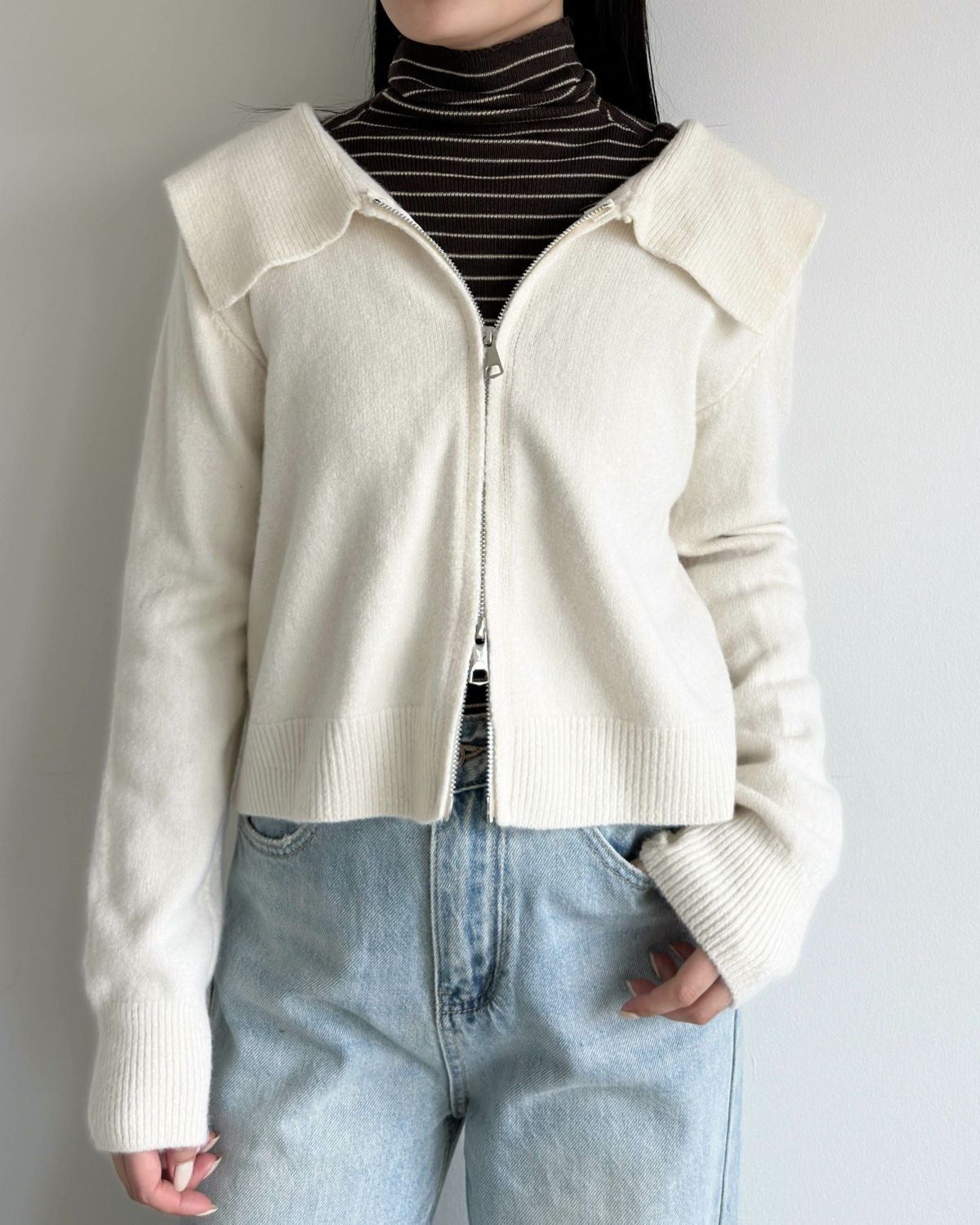 an chic ダブルジップ襟付きニット