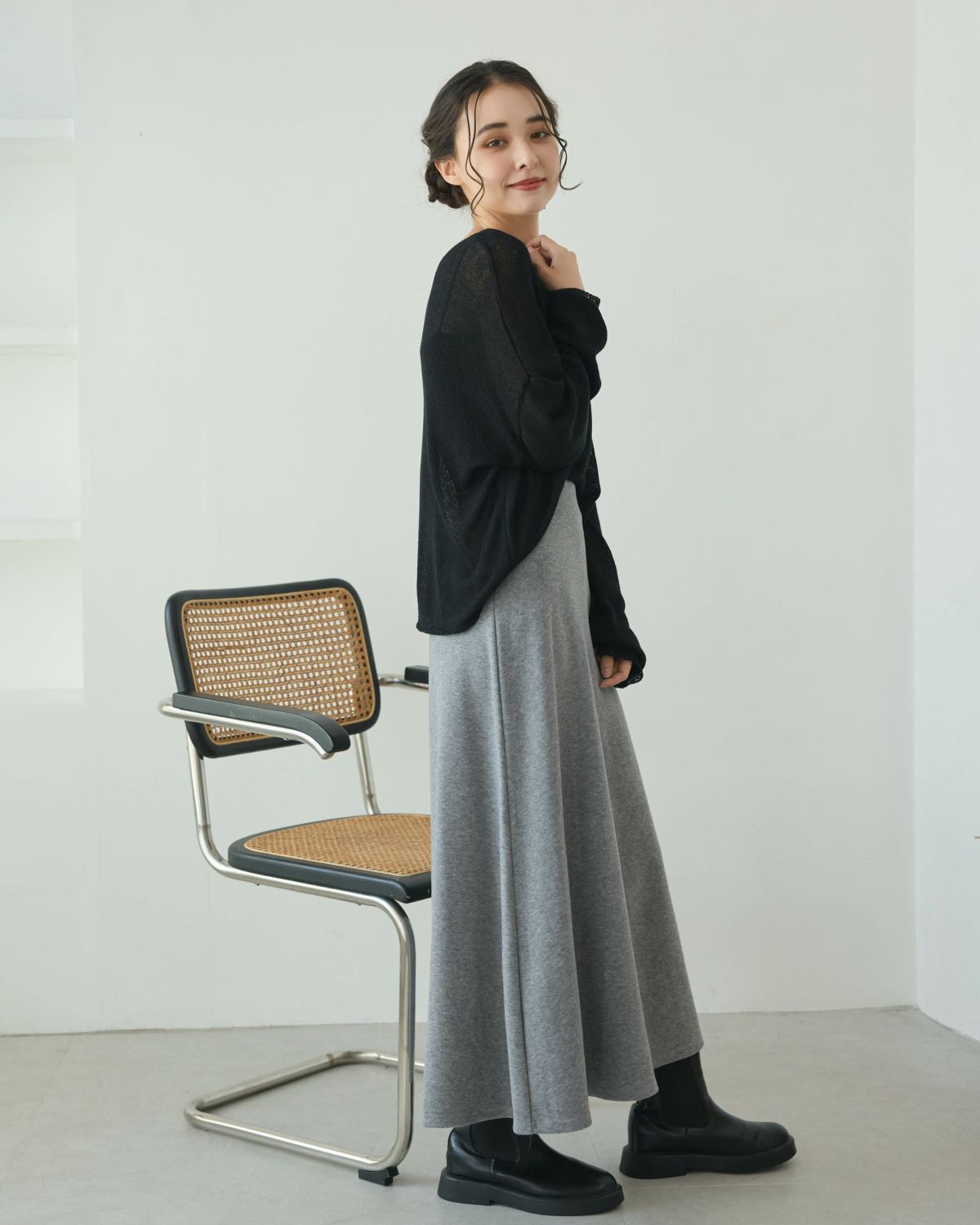 an chic スリットレスセミタイトニットスカート
