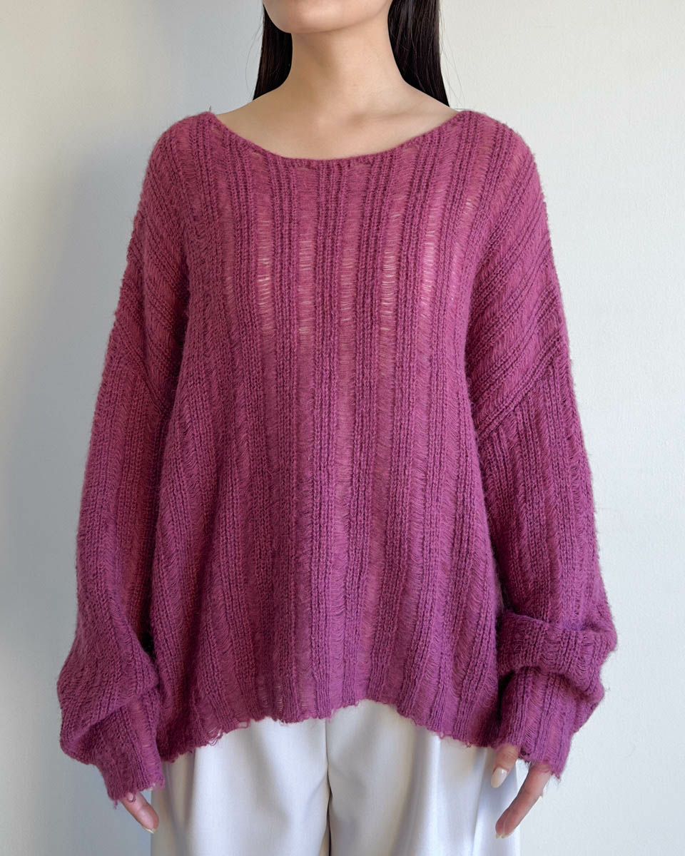 an chic ダメージ加工MIX編みニット
