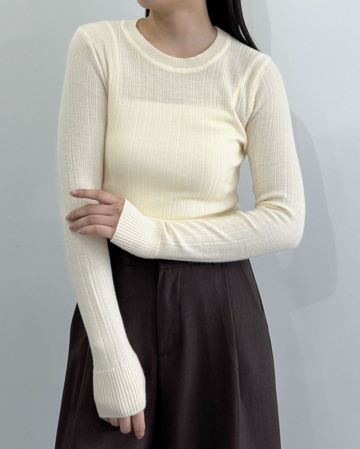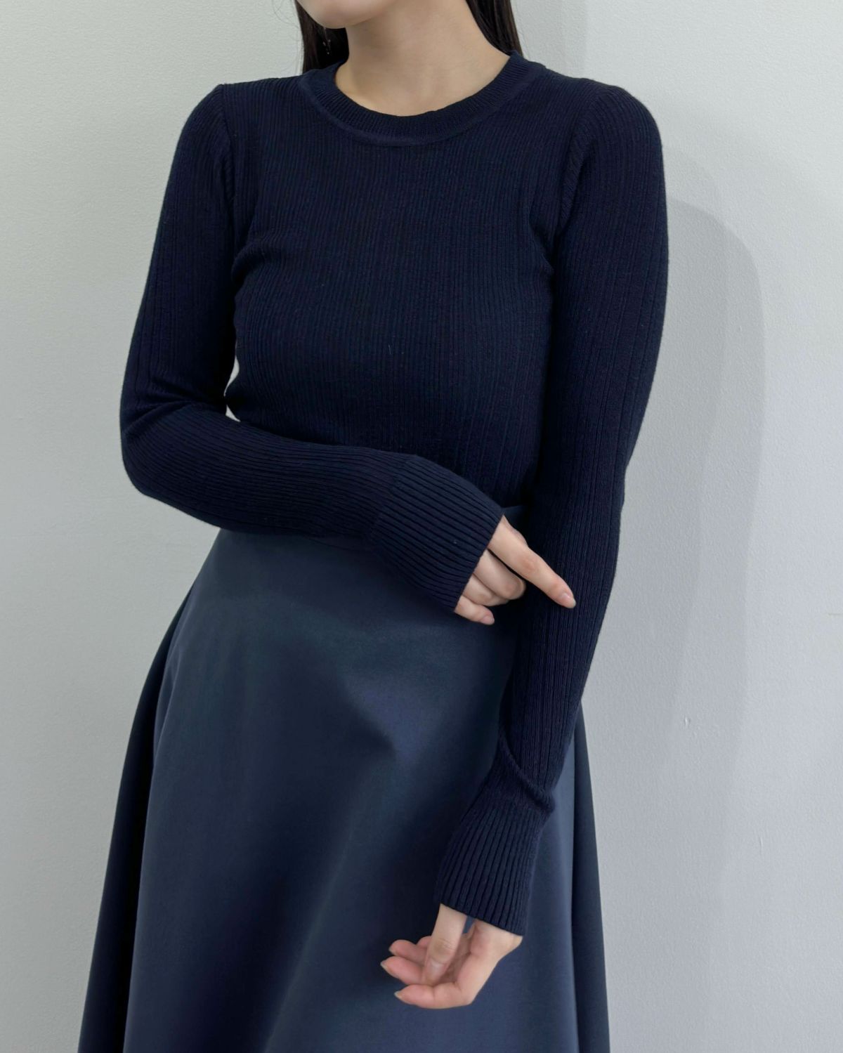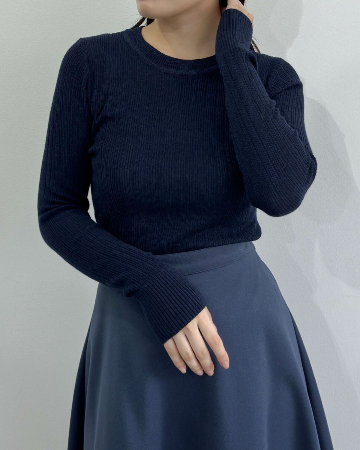 an chic クルーネックランダムリブニット