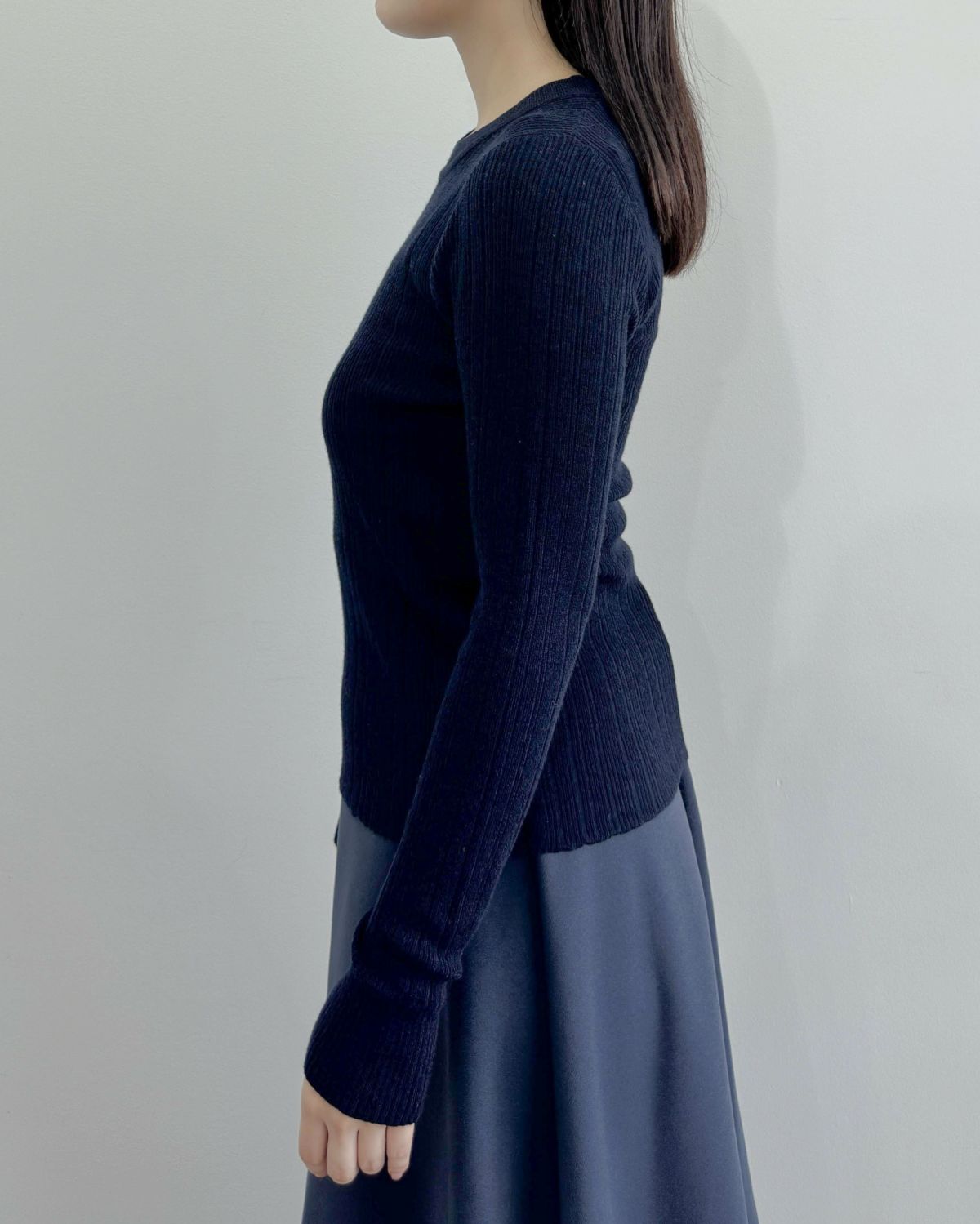 an chic ワンサイドスリットリブニット
