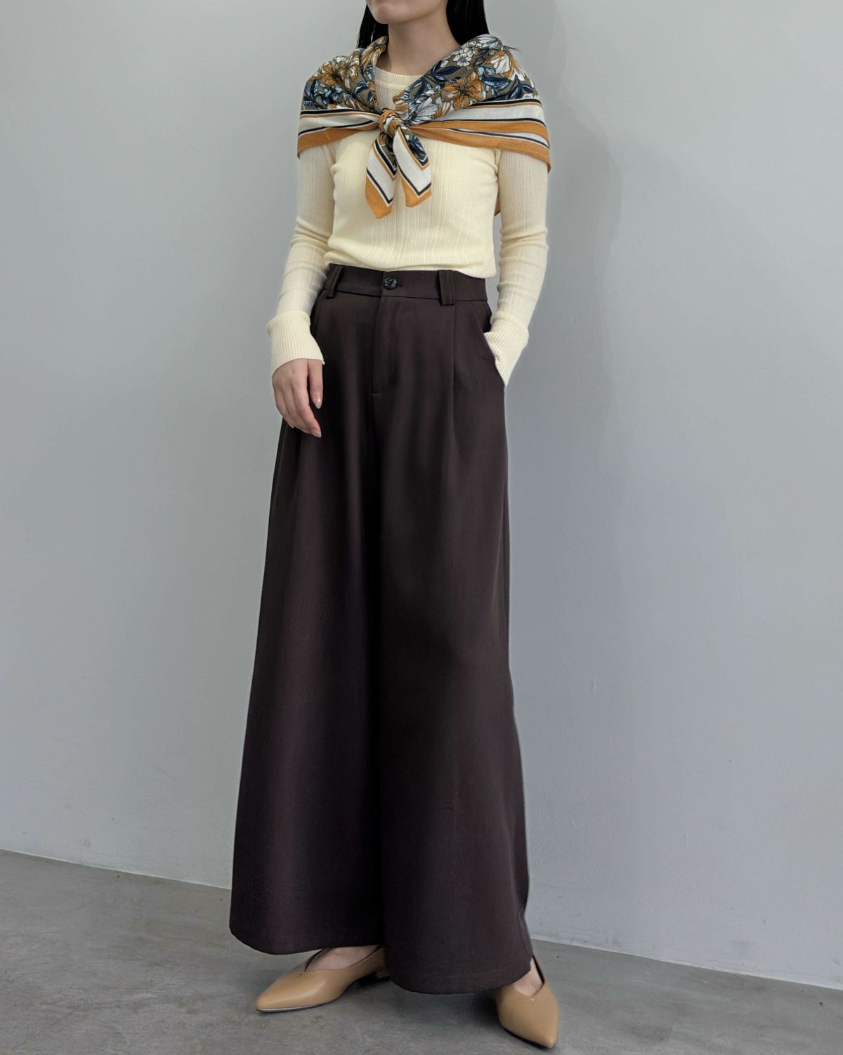 an chic 太ベルト付きタックパンツ