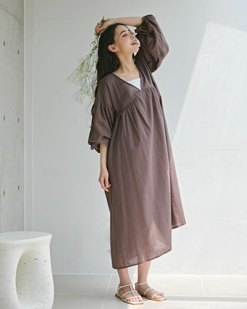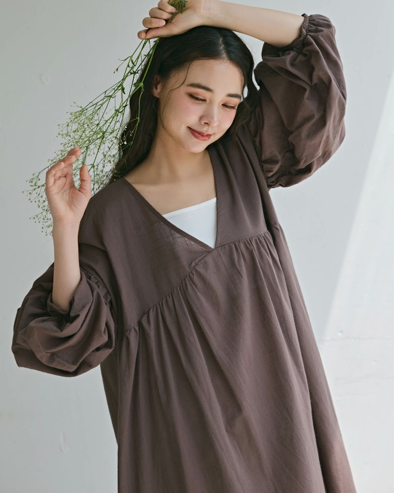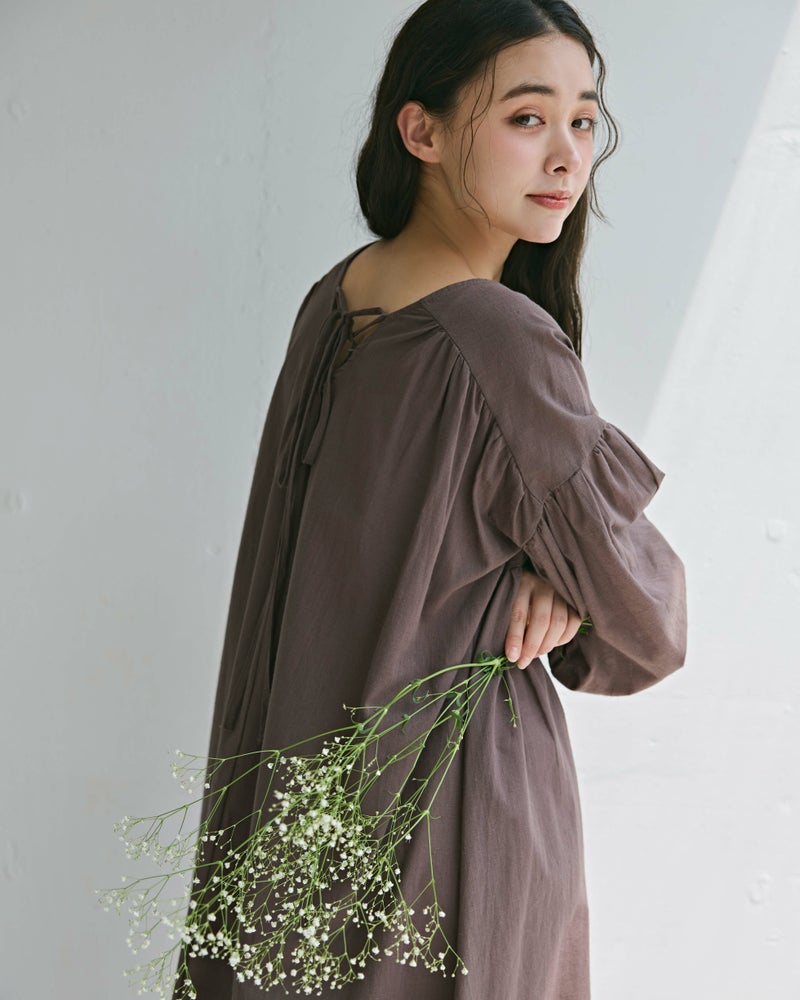 バックシャンボリュームスリーブワンピース