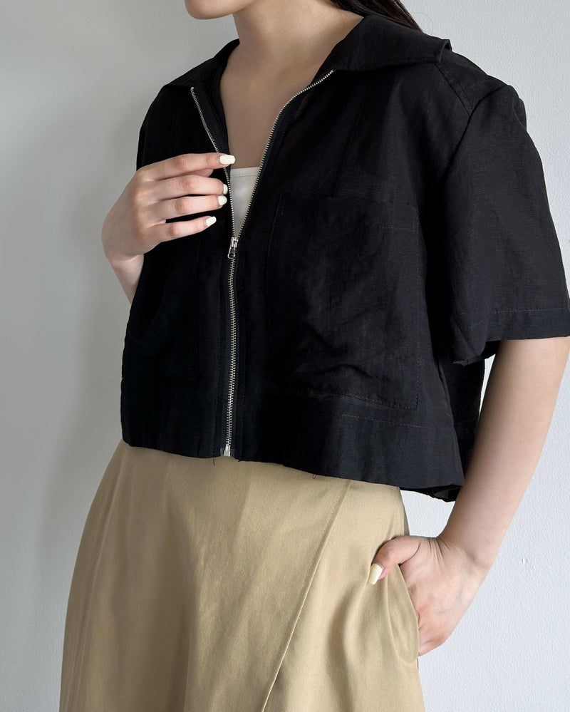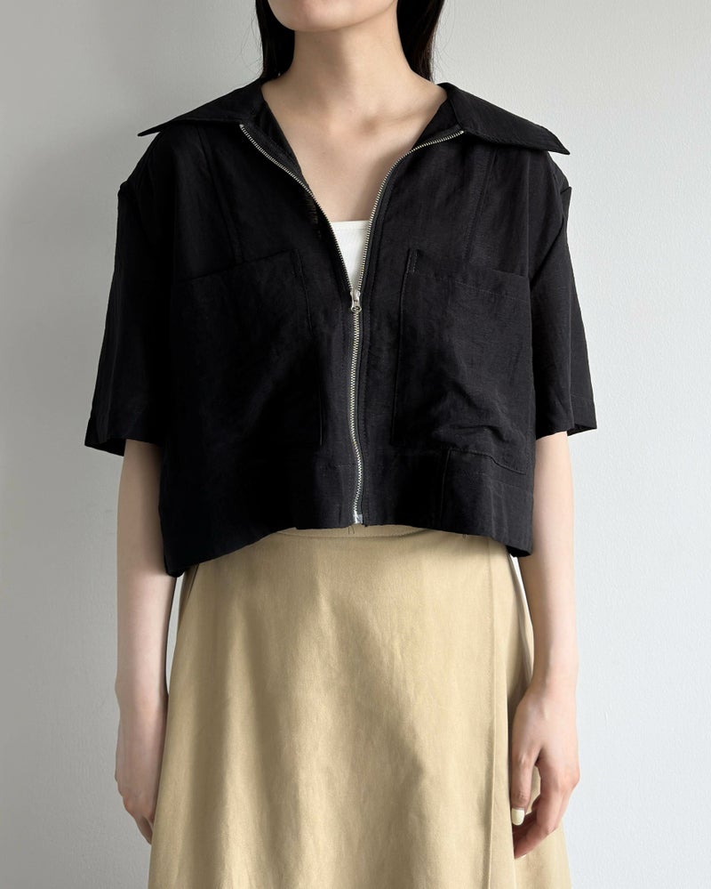 フロントポケットジップ半袖シャツ