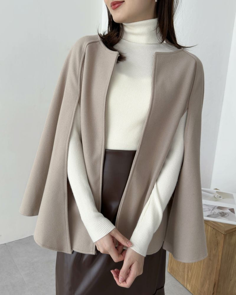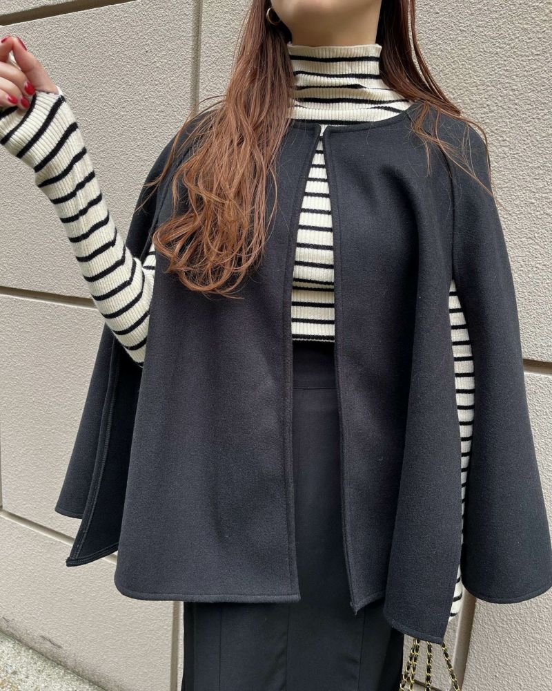 #030#ノーカラー#マント#シンプル
