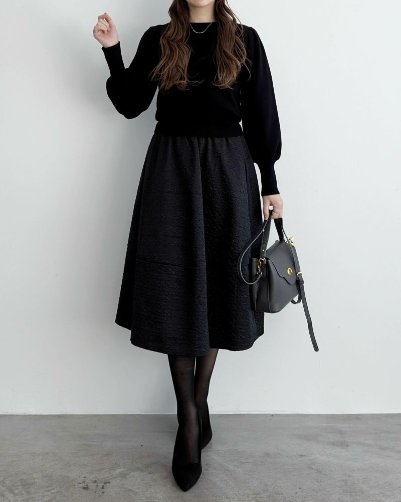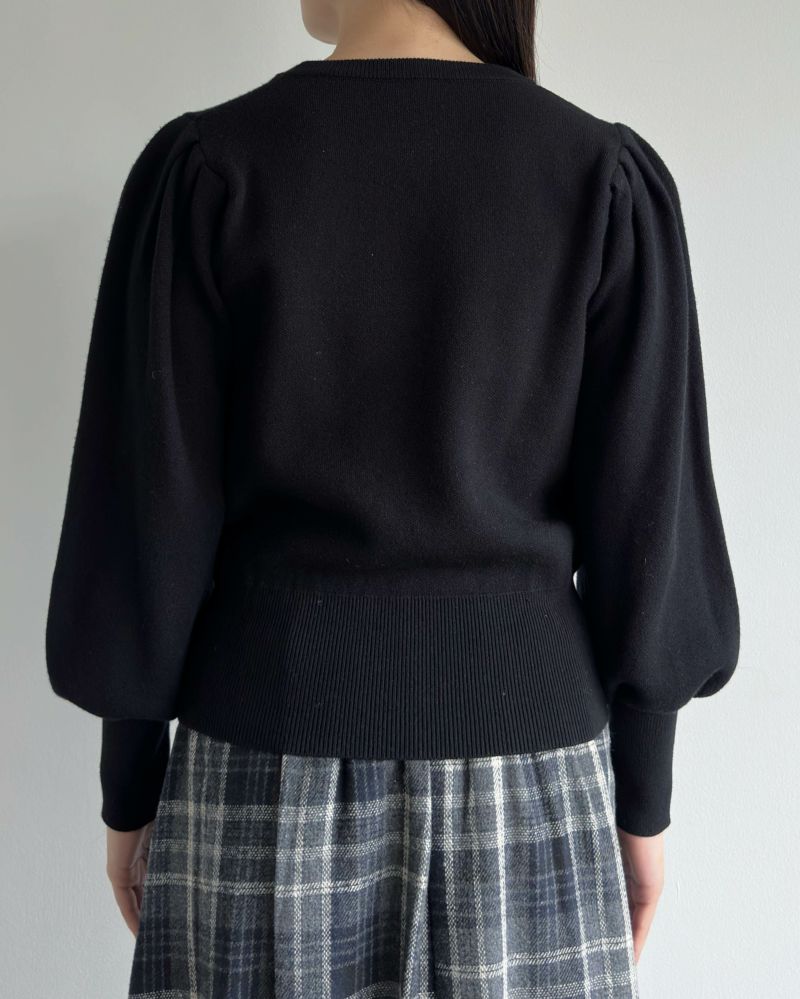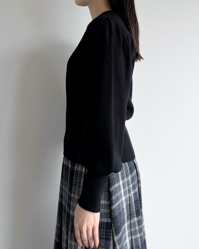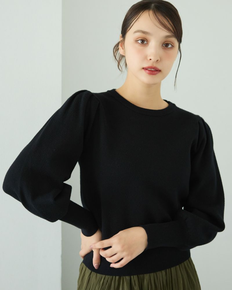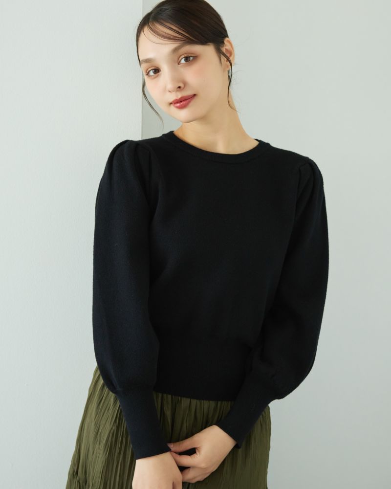 田中ちゃんが言ってた通り、モチモチの生地で、網目も詰まってるから暖かそう。肩幅広めでパフスリーブ苦手でしたが、これは着てても気にならなかったです。