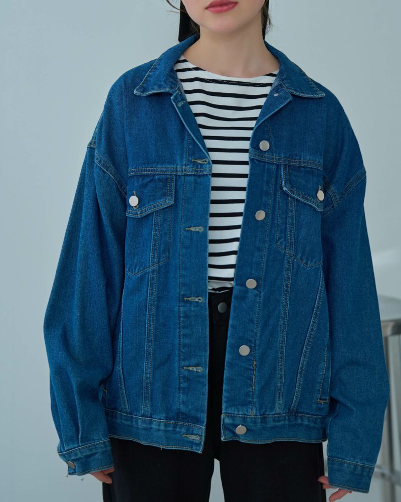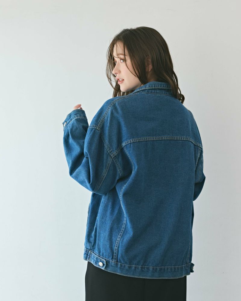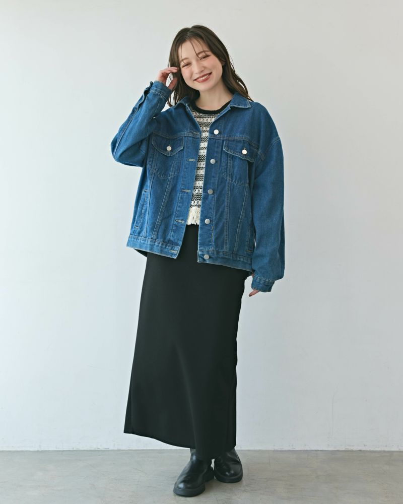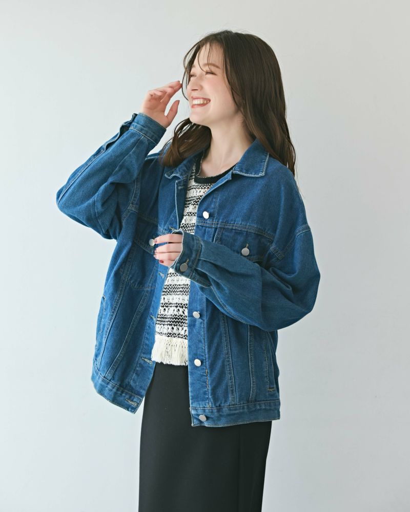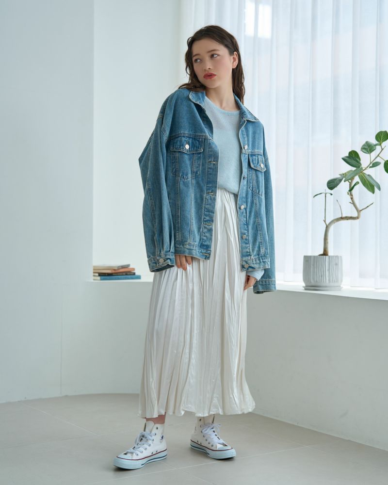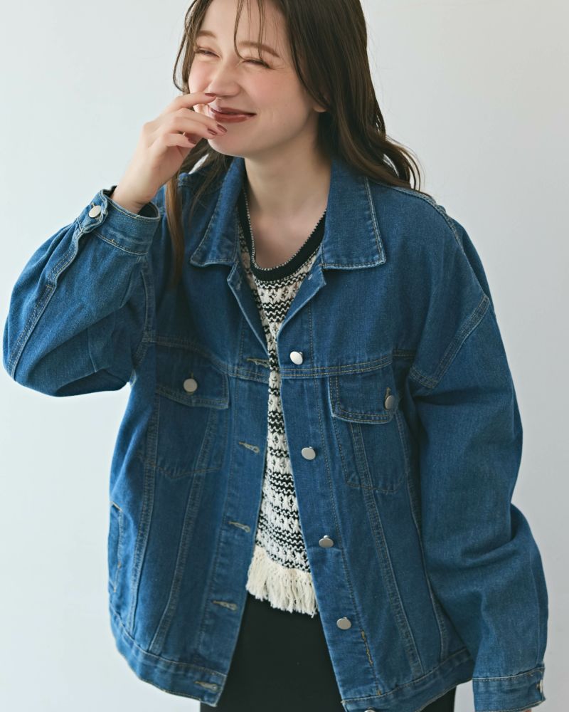 オーバーサイズなので少し重さを感じます。 きれいめカジュアルがしたくてブルー購入。 長く着れそうで買って良かったです。