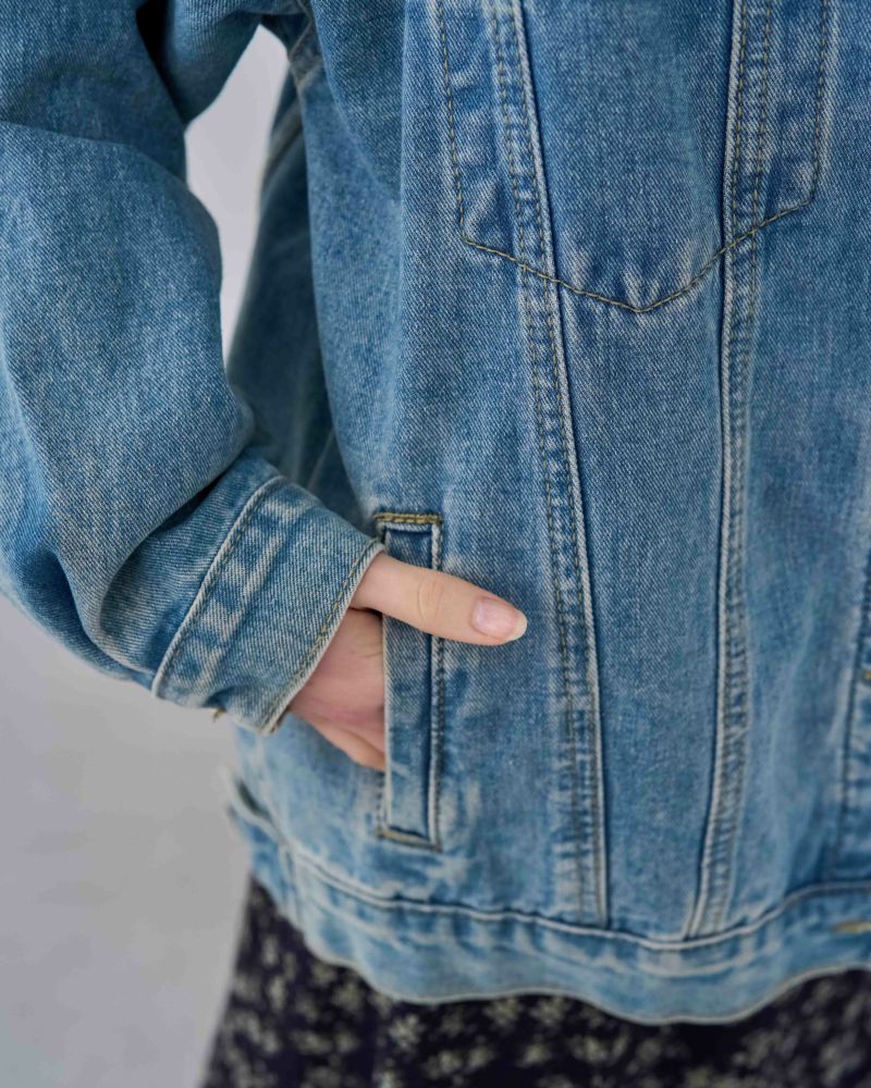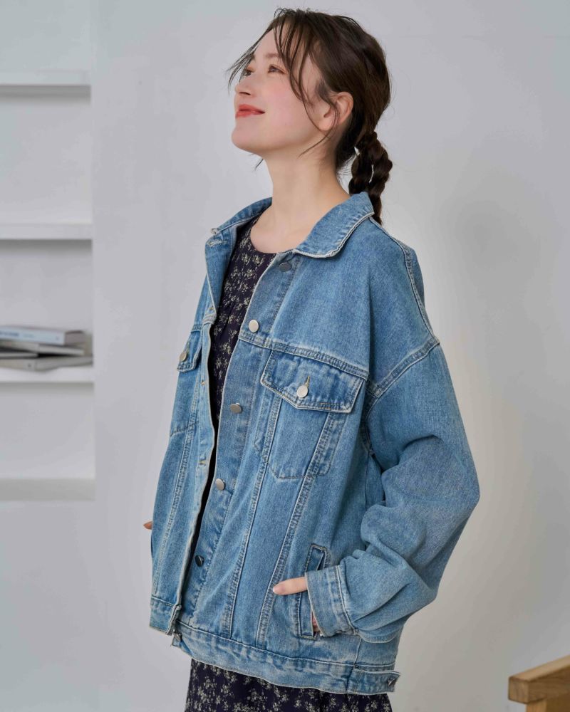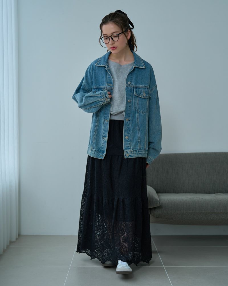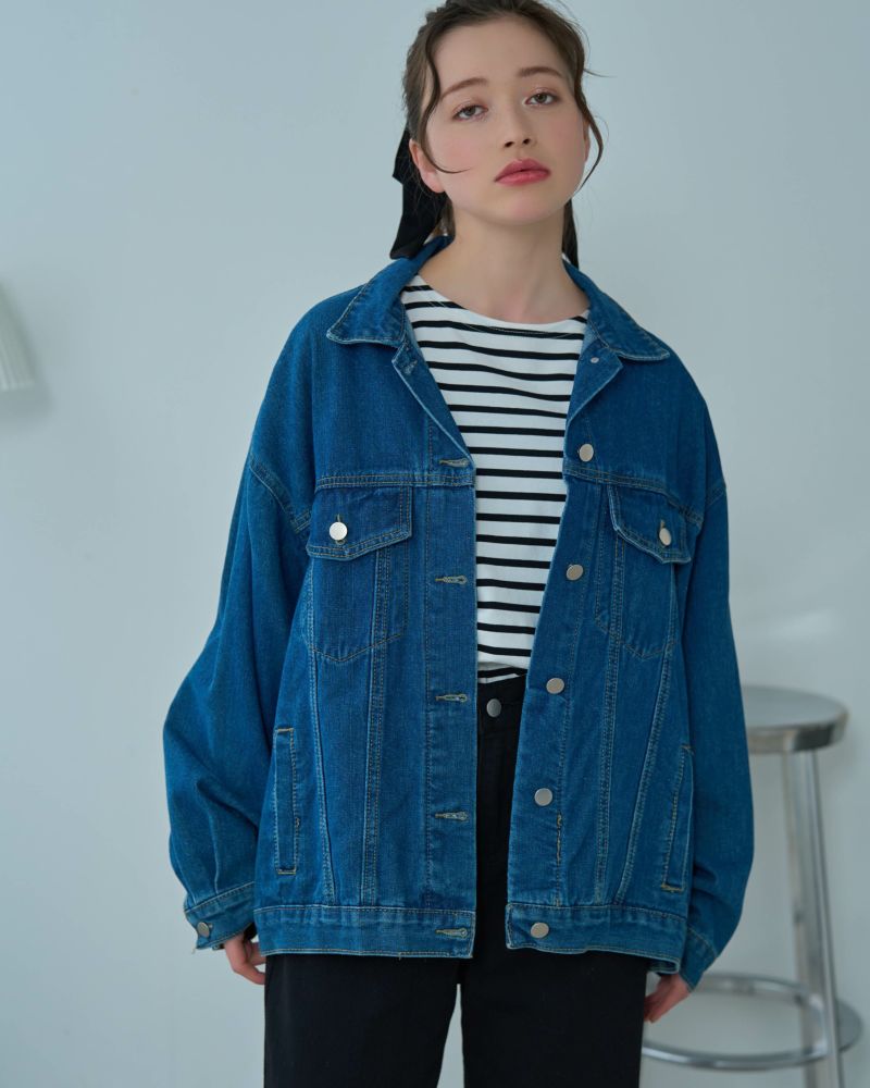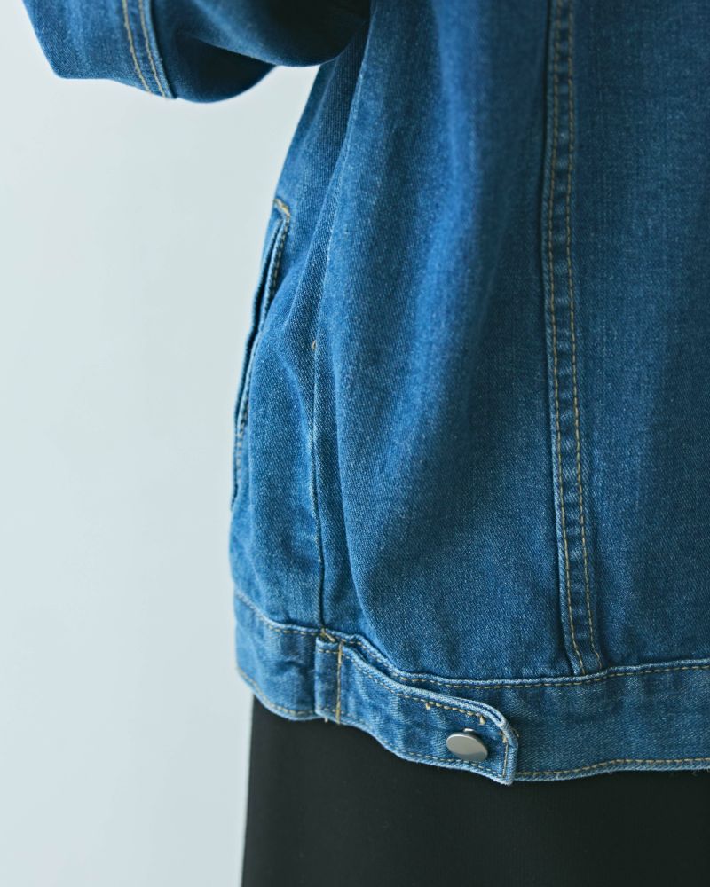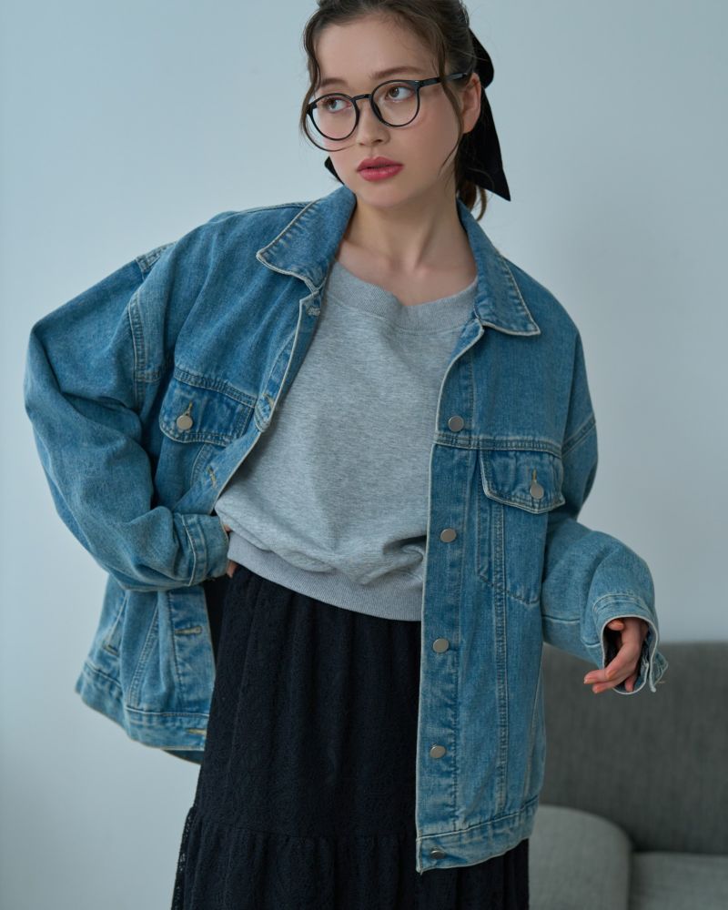 オーバーサイズなので少し重さを感じます。 きれいめカジュアルがしたくてブルー購入。 長く着れそうで買って良かったです。