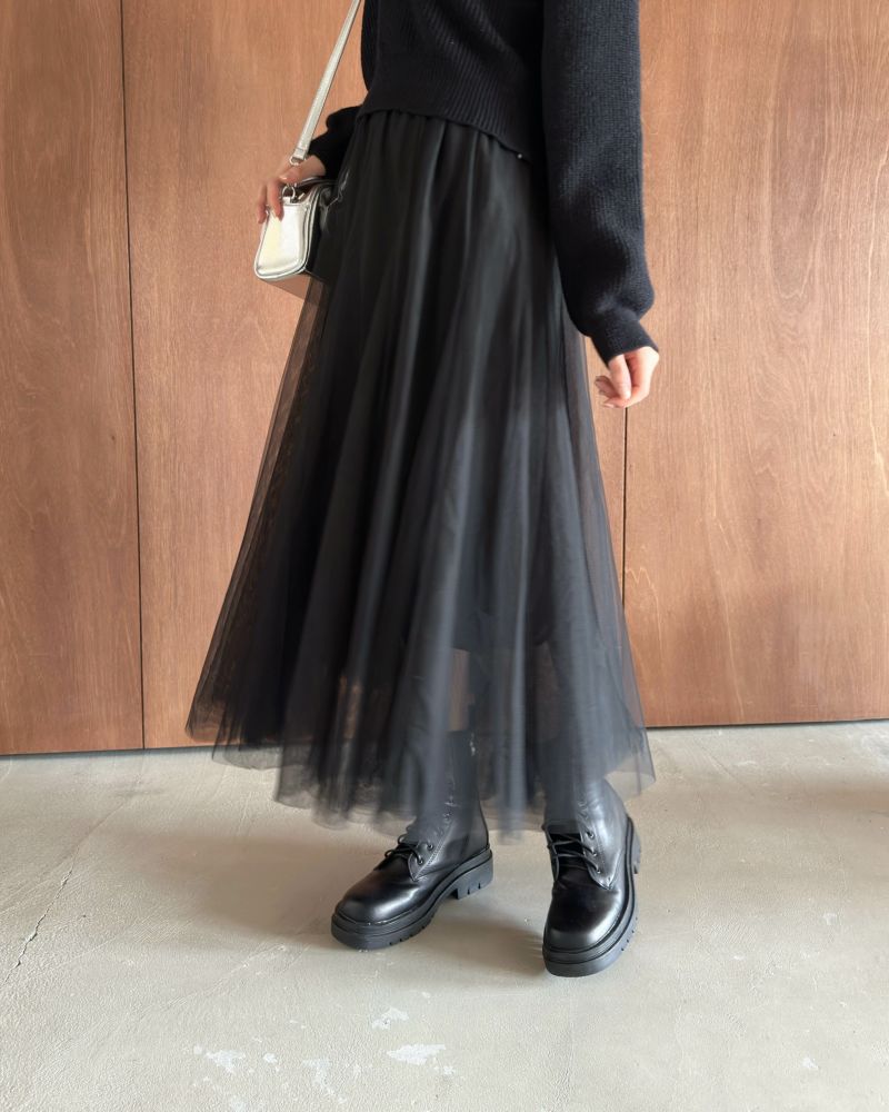 ブラックを購入。いつも黒タイツと合わせて履くので透け感は分かりませんが、身長158㎝で丈感、ボリューム感が丁度良くてバランス取りやすいです!甘くなり過ぎないのに可愛いし、綺麗めコーデもカジュアルコーデも出来るし大活躍してます✨他の色も狙ってますが、これからの季節に素足で履いた時の裏地の見え感とか、透け感が気になってまだ買えずにいます😣