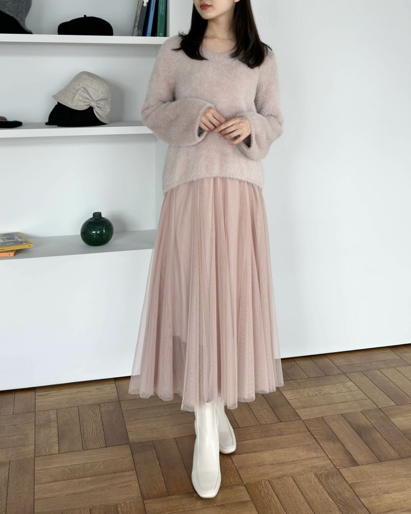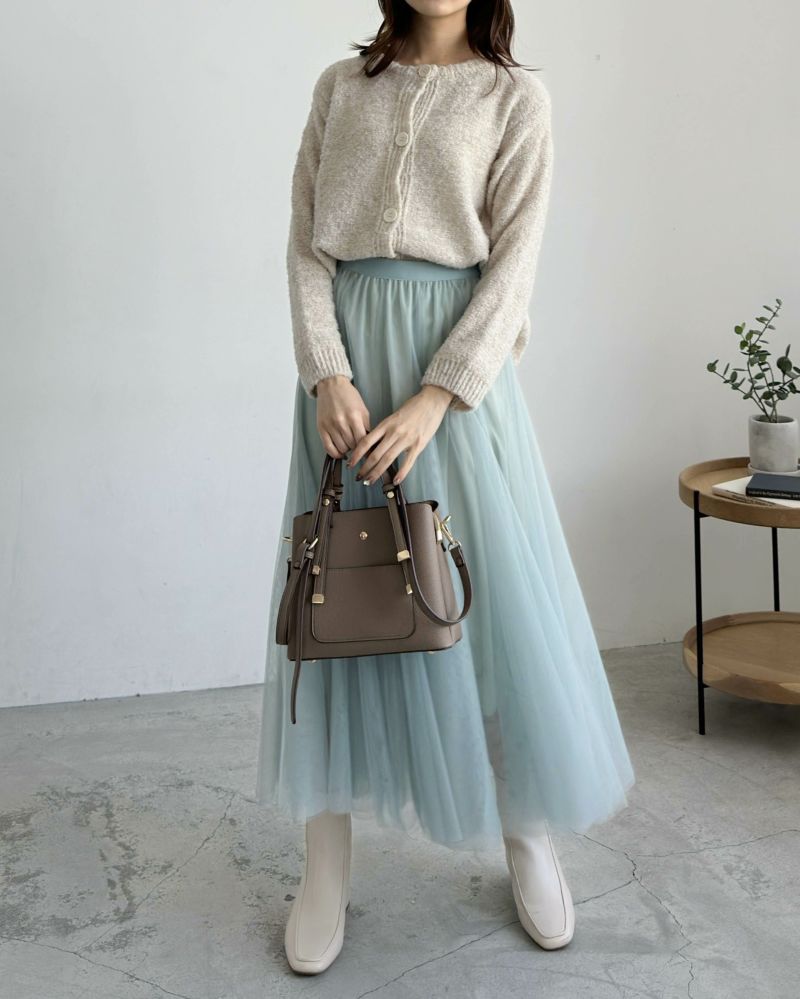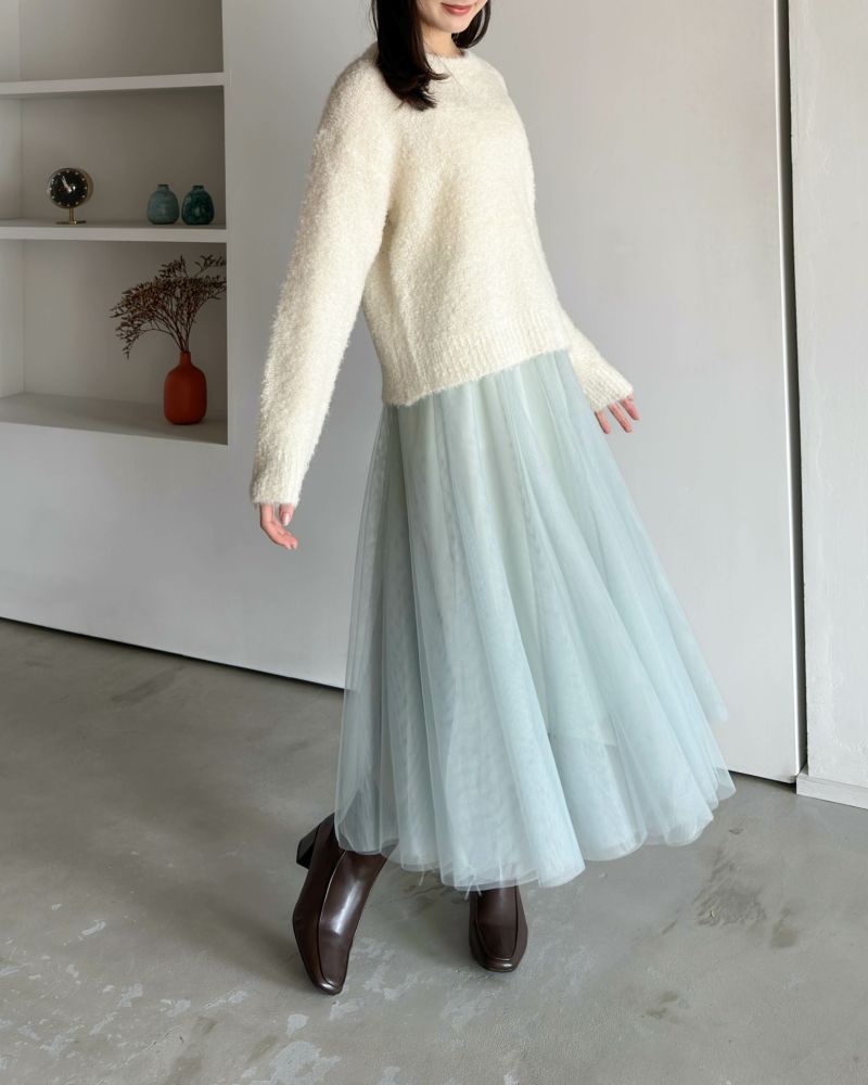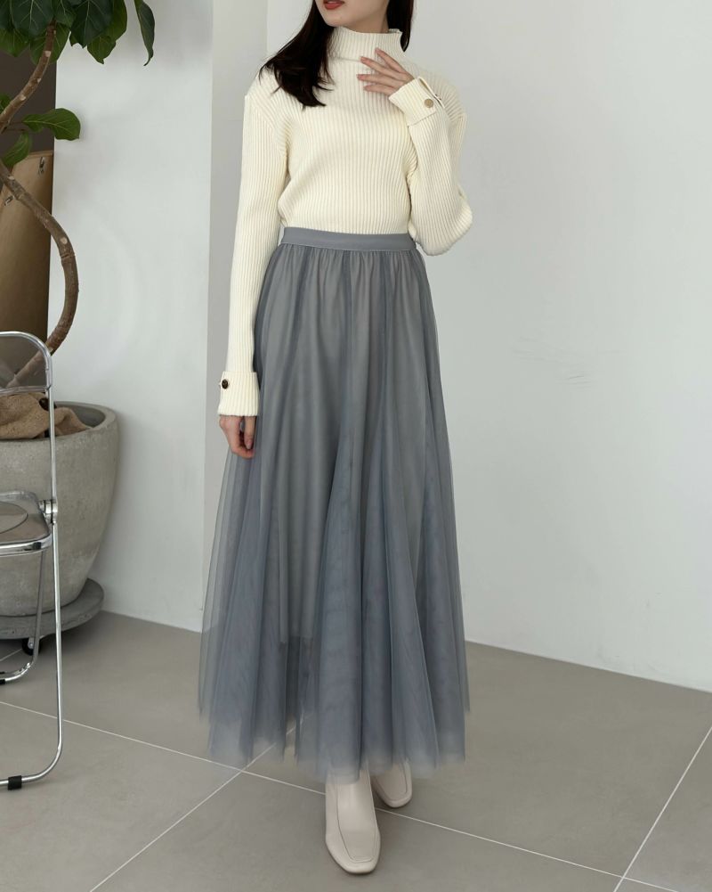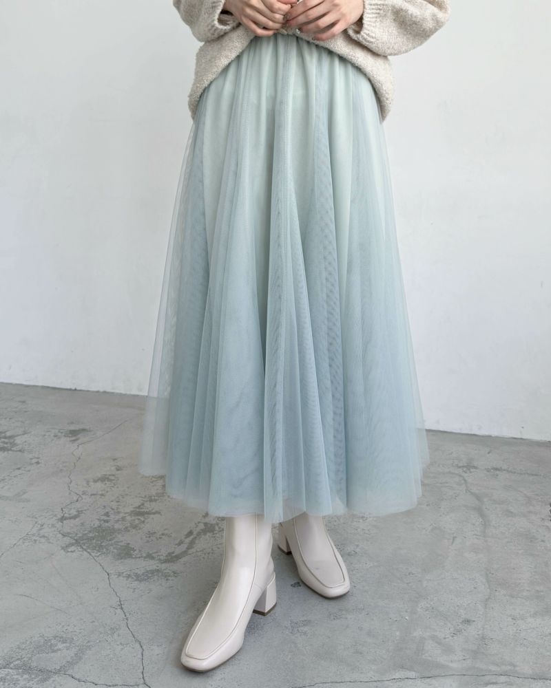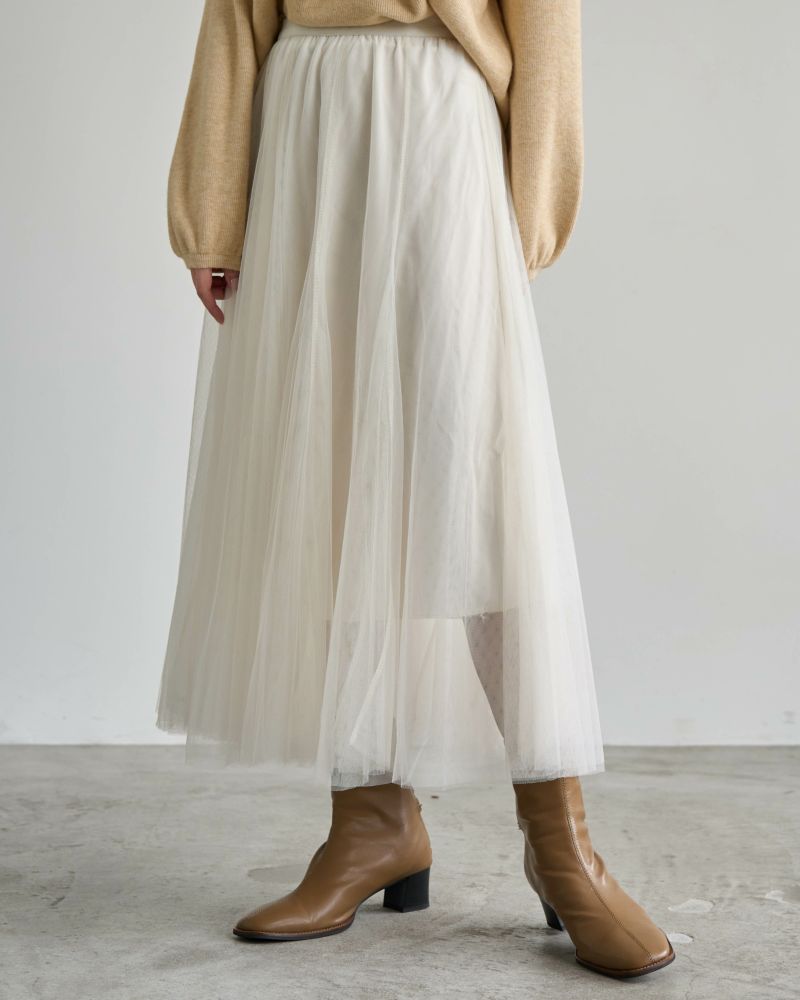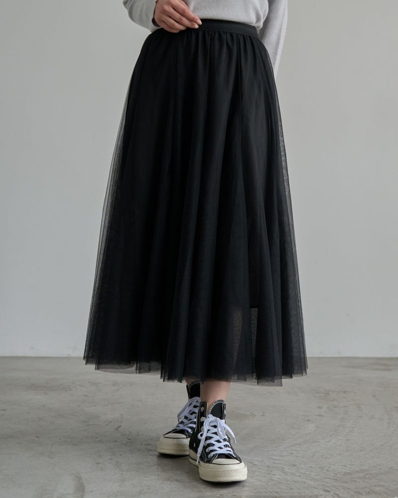 低身長なので長いかな?と思いながらもウエスト総ゴムなので折り返せばいいか?と思い、どうしてもチュールスカートを履いてみたくてホワイト購入しました。 折り返してもウエストが緩く結局落ちてきてしまうので、1回履いただけでたなかちゃんと同じ身長の妹にあげました。 妹にはめちゃくちゃ似合っていて、すごく喜ばれました。