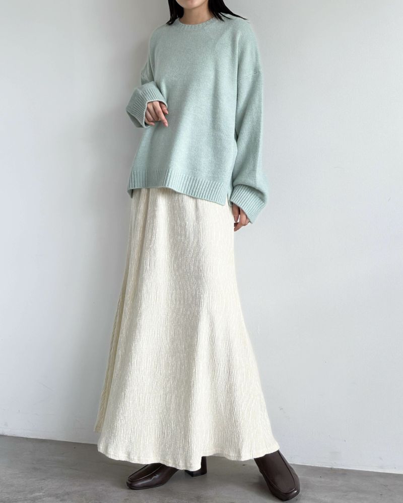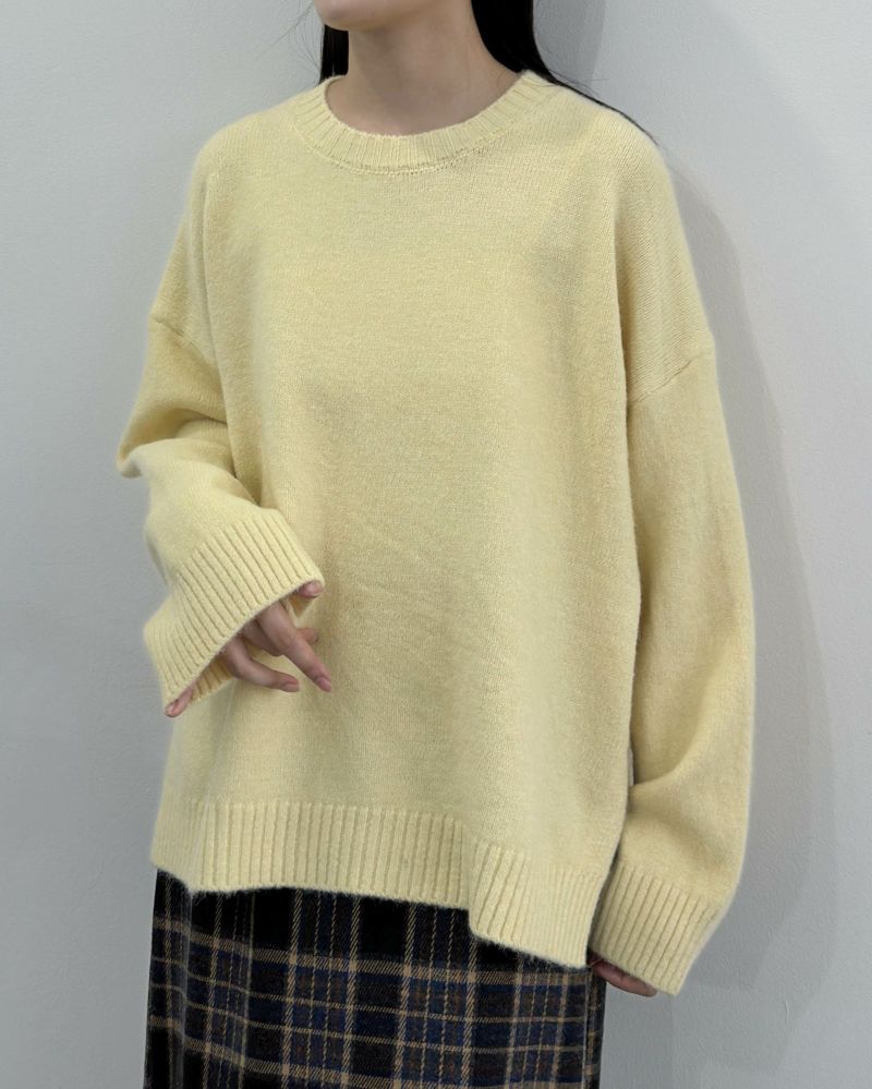 黄色を購入!体型カバーされるのでとても使いやすいです。シンプルですが黄色なので華やかにもなりイエベ春にはとても相性が良いです◎生地感が首周り当たると少しチクチクするので超敏感肌の方は気になるかもしれません。ニットの感じは硬めでG◯とかにあるようなニットの生地感に似ています。