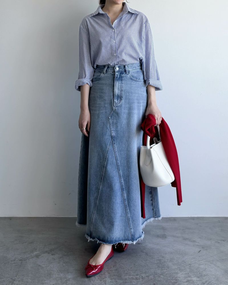 サイズ表を見てウエストゎS、丈ゎM。でも腰の位置が低いのとヒップが薄いので悩んでS購入!結果正解でした✨インする余裕もあり心配してた丈もマキシ丈で理想通り😊お二人が言ってた通り、同じ身長でも骨格によって違うと実感しました!♡素敵な商品をありがとうございます🥰