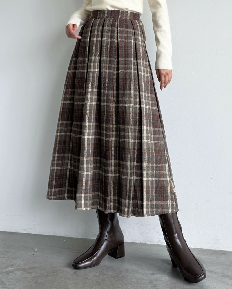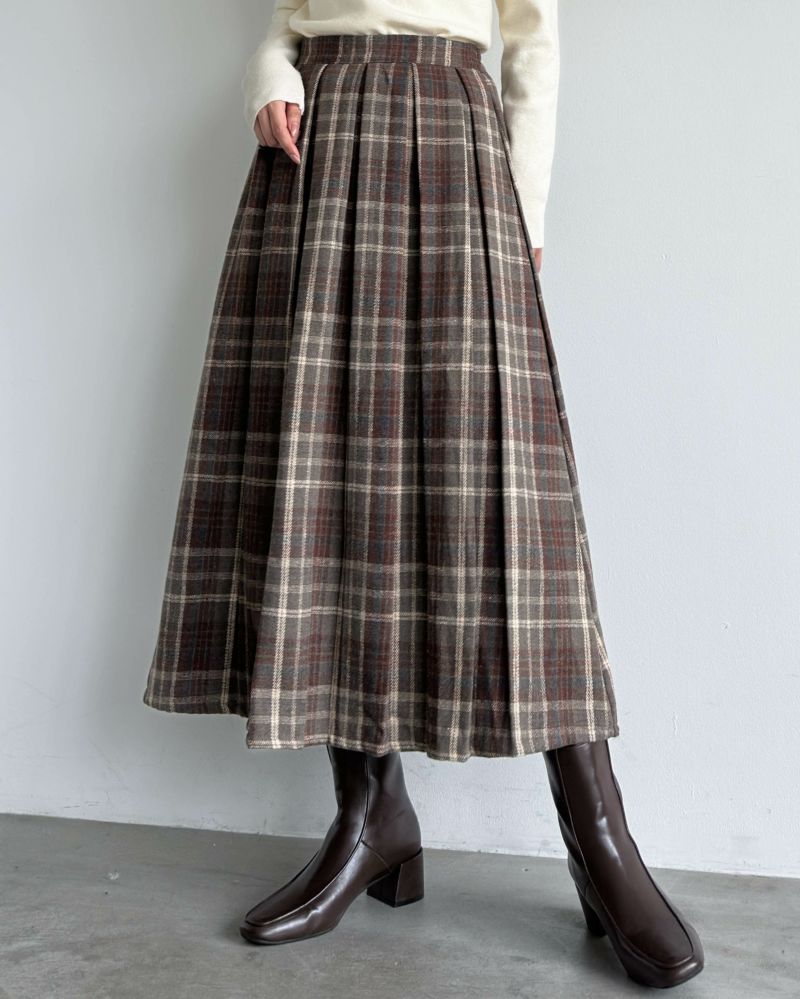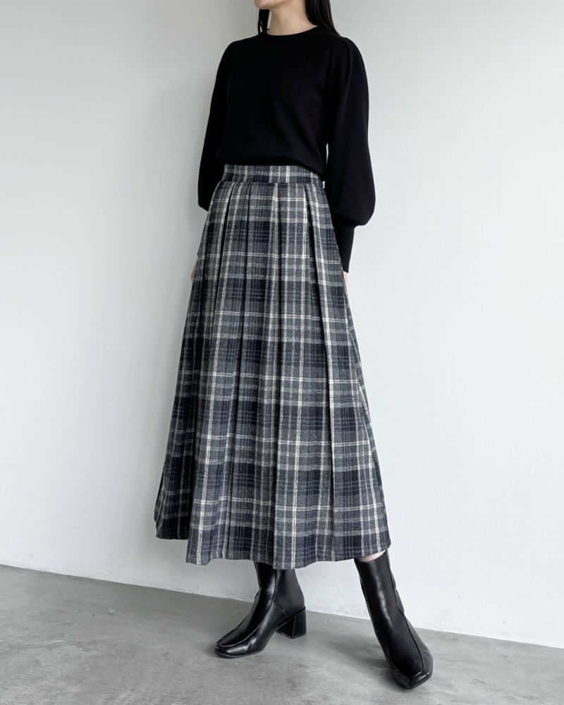 フロントタックチェックフレアスカート