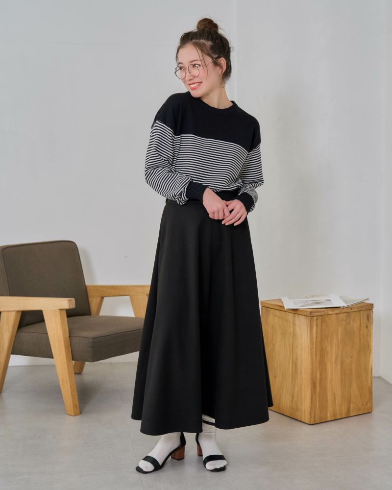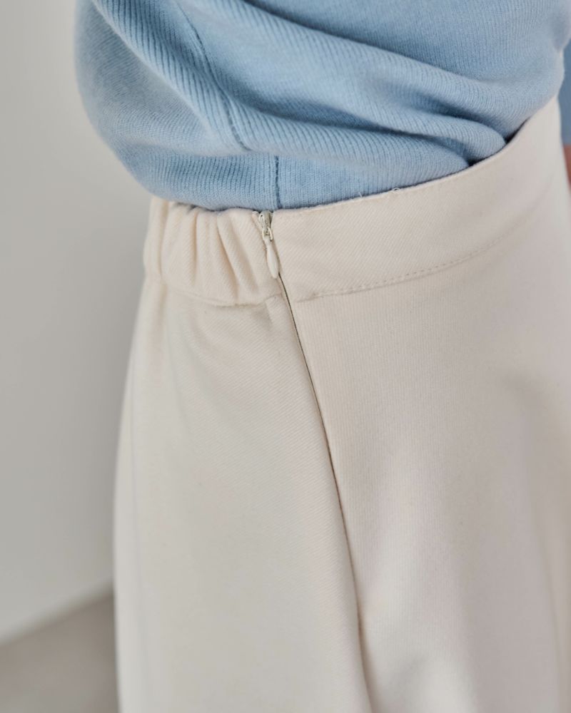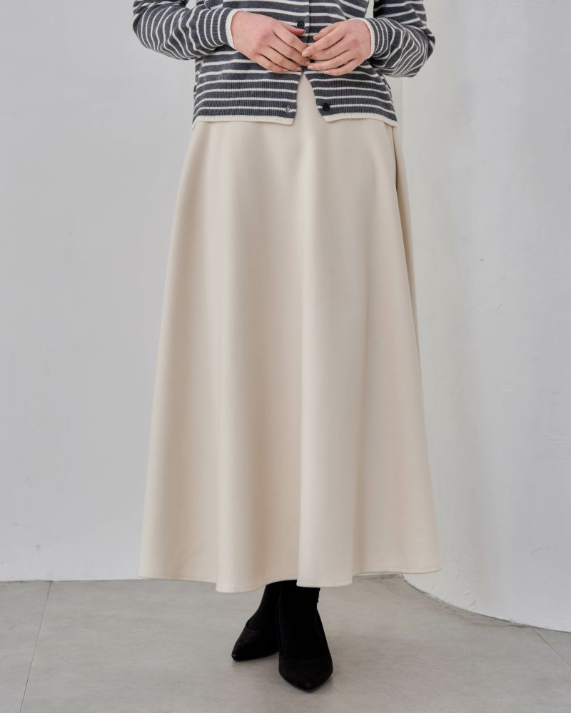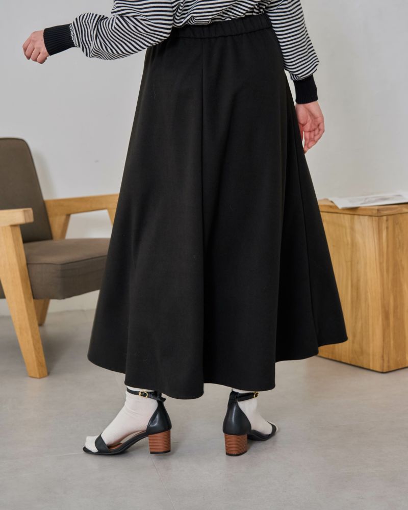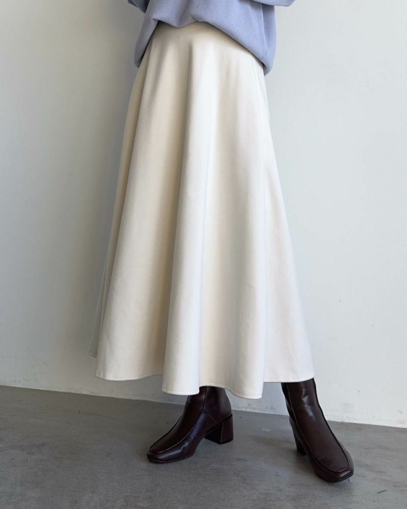 厚手でしっかりした素材感なので少し重さはありますが丈感もちょうどよく高みえします。 ウエストは確かに少しゆとりがあるので華奢な方はウエスト位置で履くのは難しそうです。 an chicでのスカートやパンツはウエストが合わない事があるため買うの悩みましたが、これは許容範囲で綺麗みえするので気に入ってます。