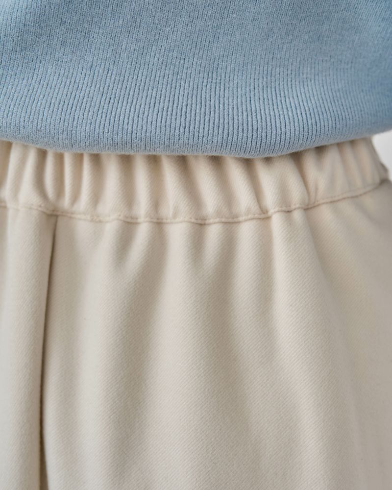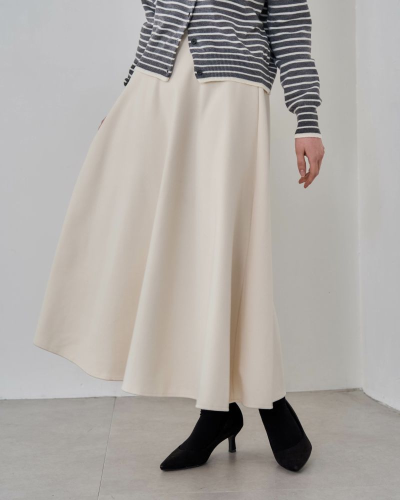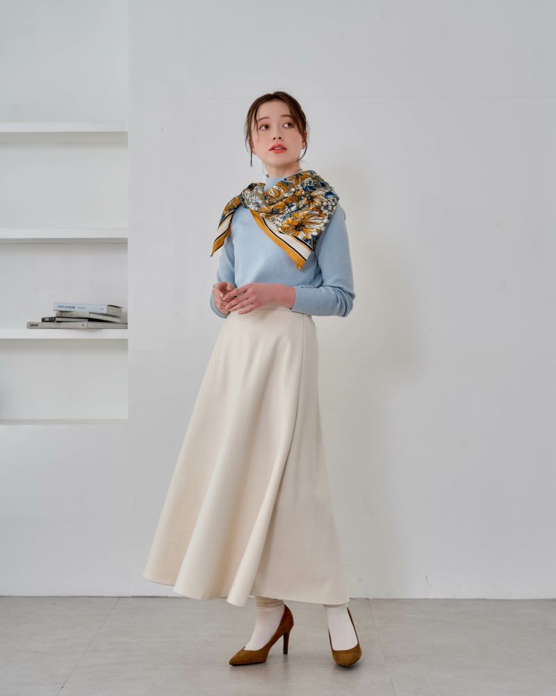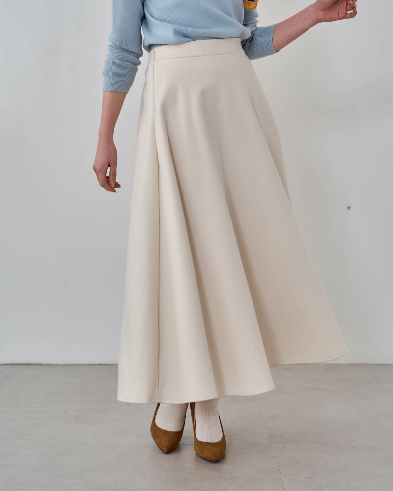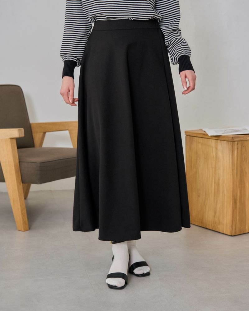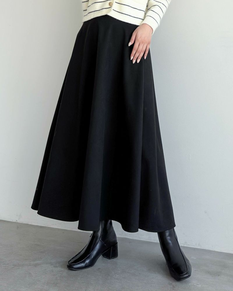 厚手でしっかりした素材感なので少し重さはありますが丈感もちょうどよく高みえします。 ウエストは確かに少しゆとりがあるので華奢な方はウエスト位置で履くのは難しそうです。 an chicでのスカートやパンツはウエストが合わない事があるため買うの悩みましたが、これは許容範囲で綺麗みえするので気に入ってます。