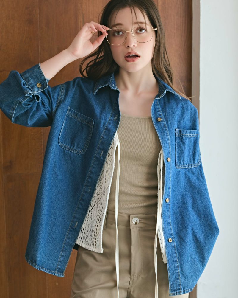 デニムジャケットよりも薄いとライブで教えていただき購入!普通のシャツよりは厚手ですが、薄くて着やすいです!ゴワゴワしていないので、長い季節活躍しそうです。
