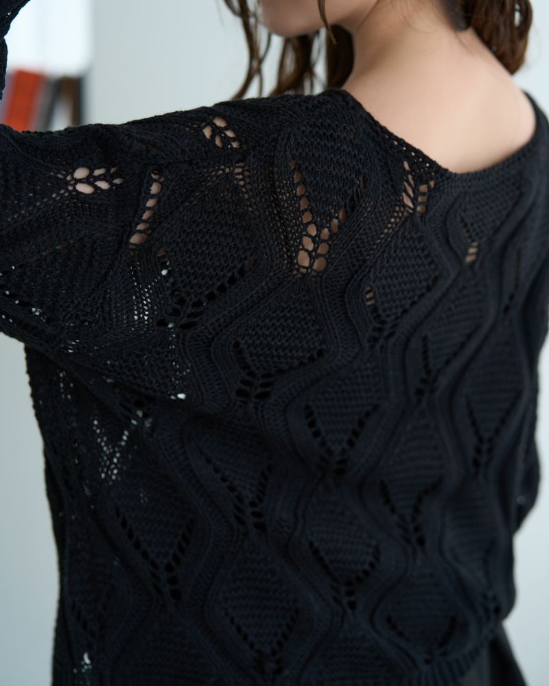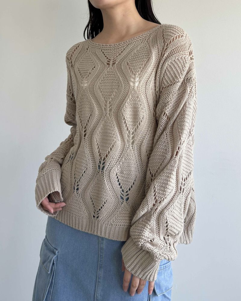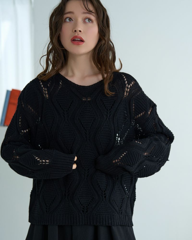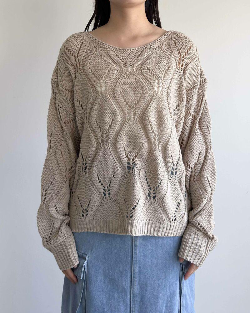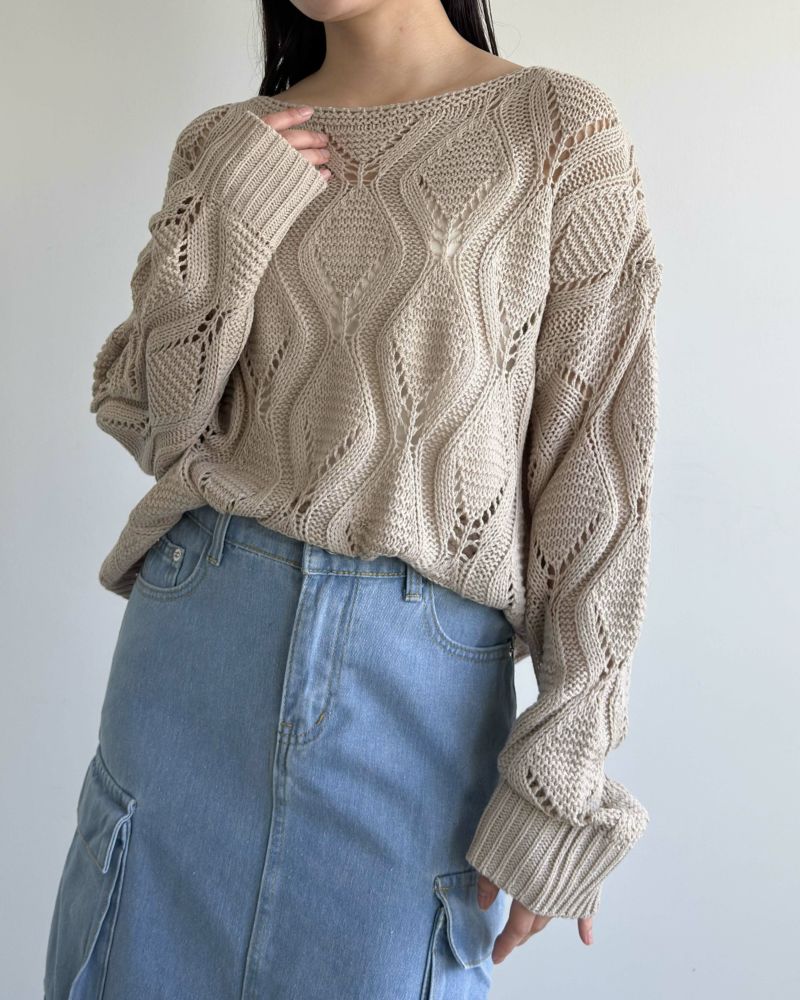 ボートネック柄編みニット