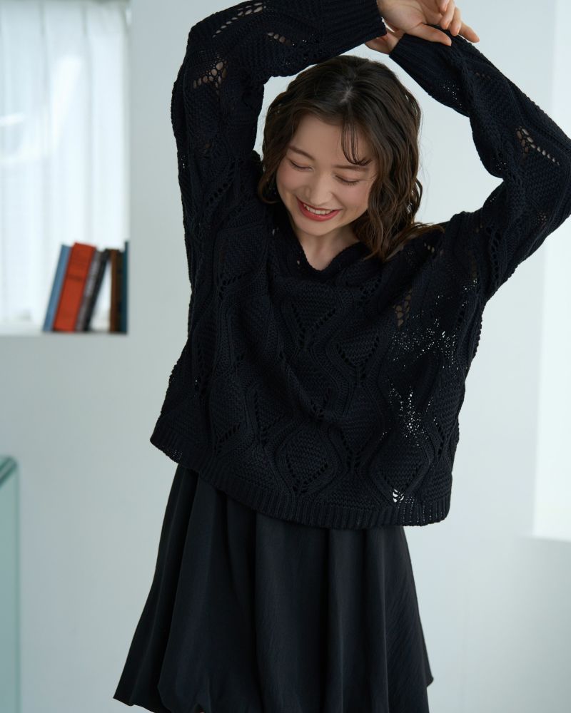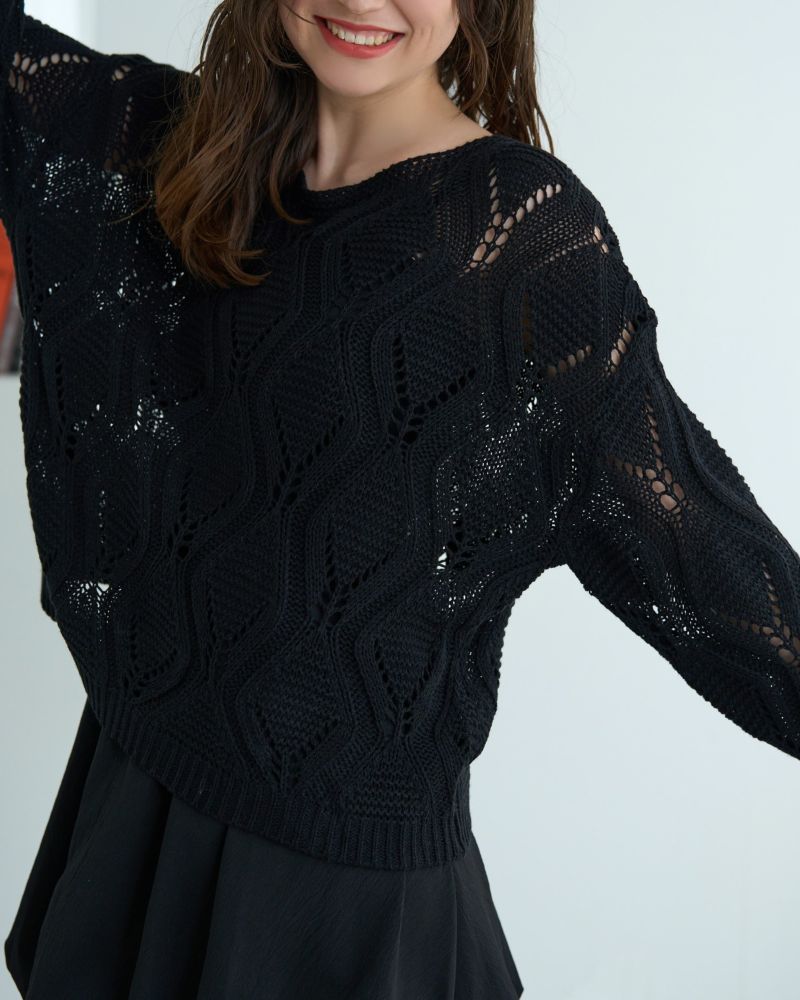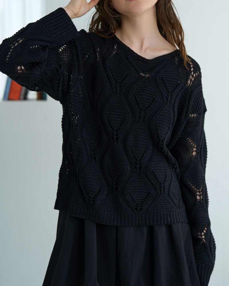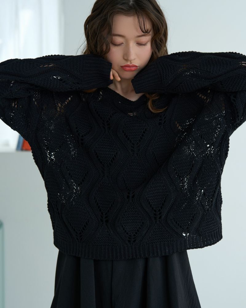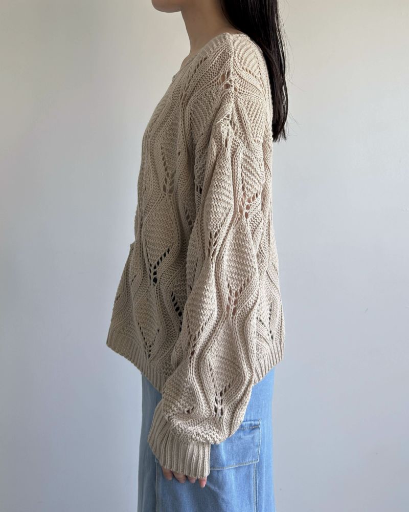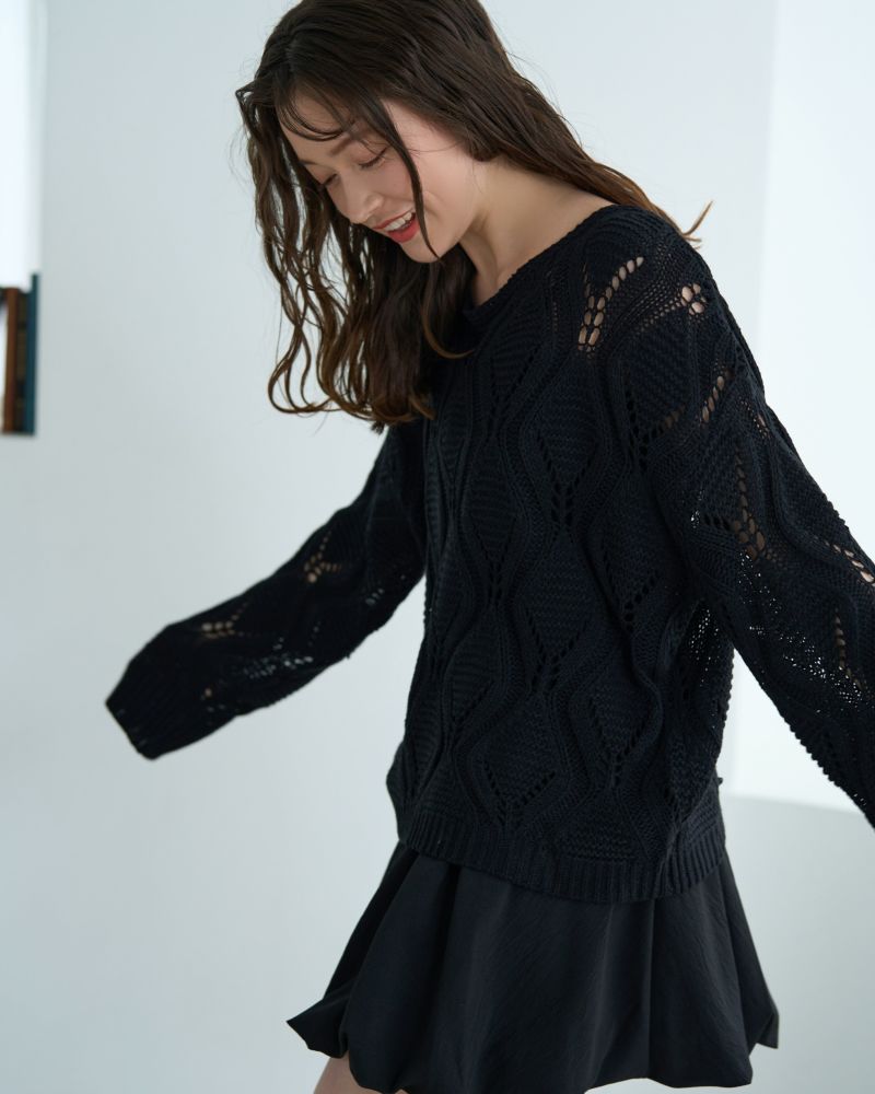 ボートネック柄編みニット