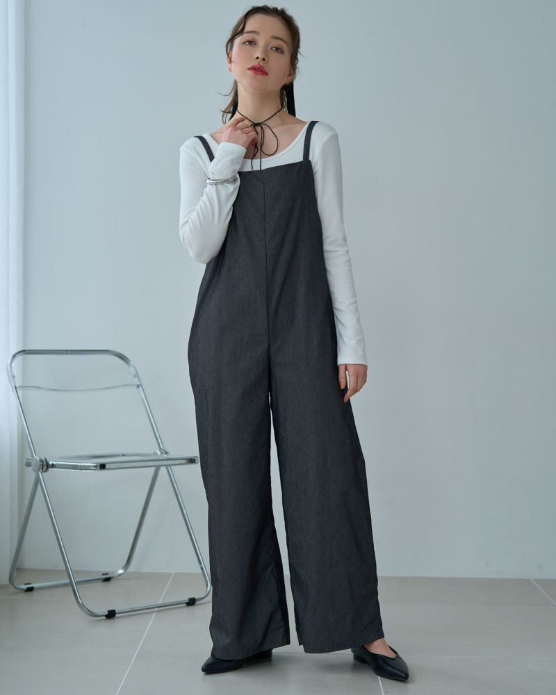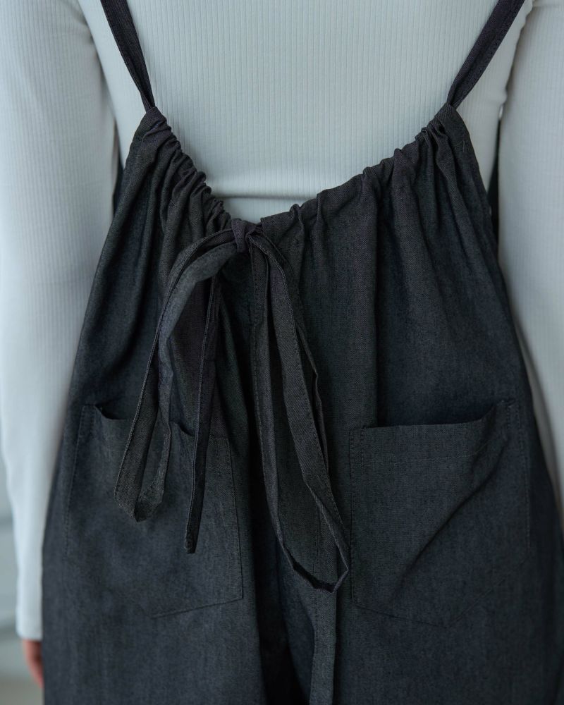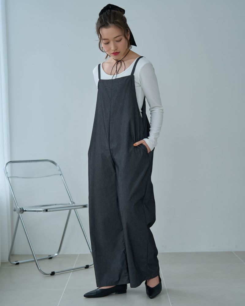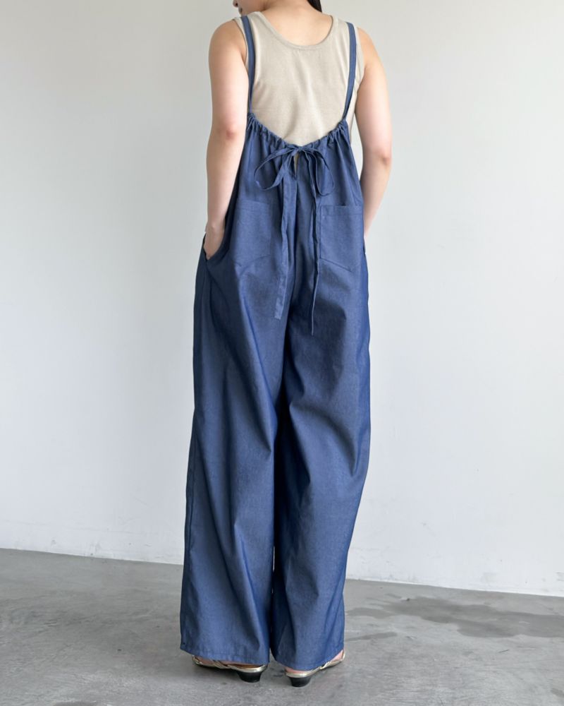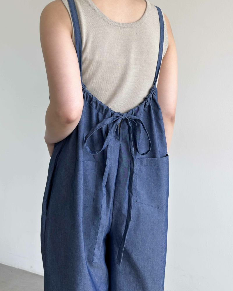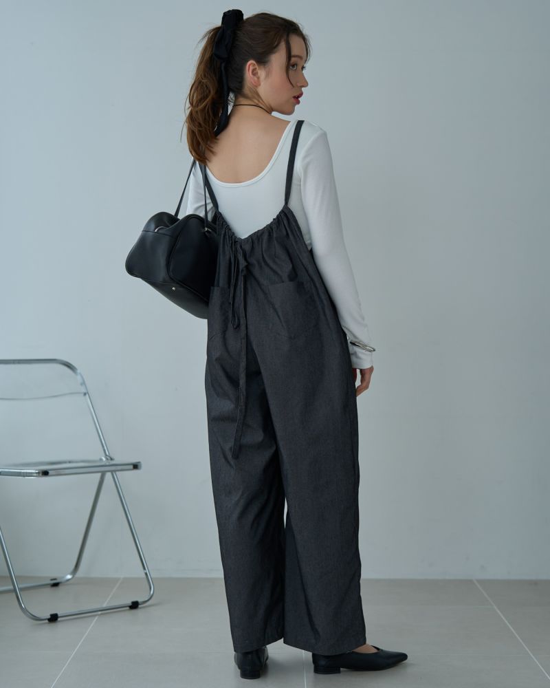 後ろの紐部分で丈の調整ができるのですごくいいです! 少しくびれたようなシルエットになるので、 こういうサロペットはズドンとしたシルエットになりがちだったのですが これは細見えしました!