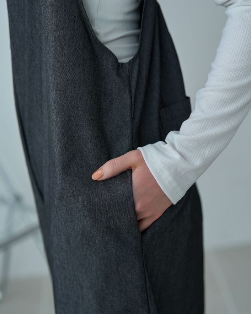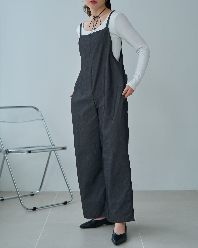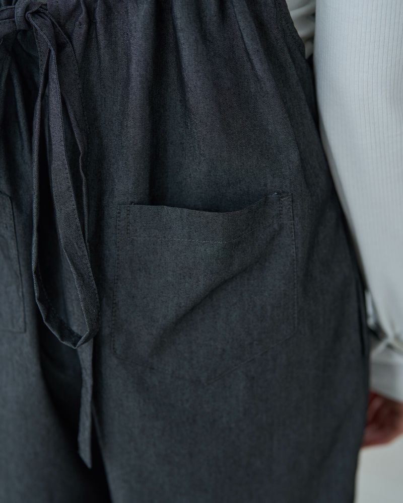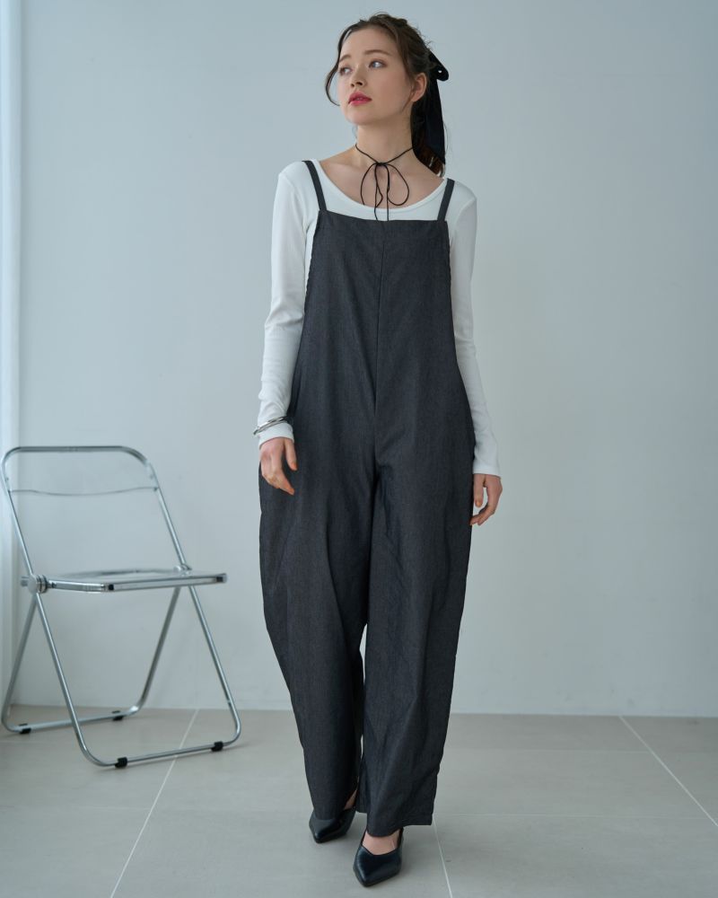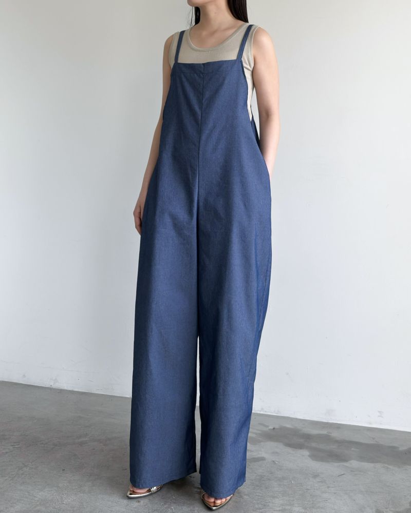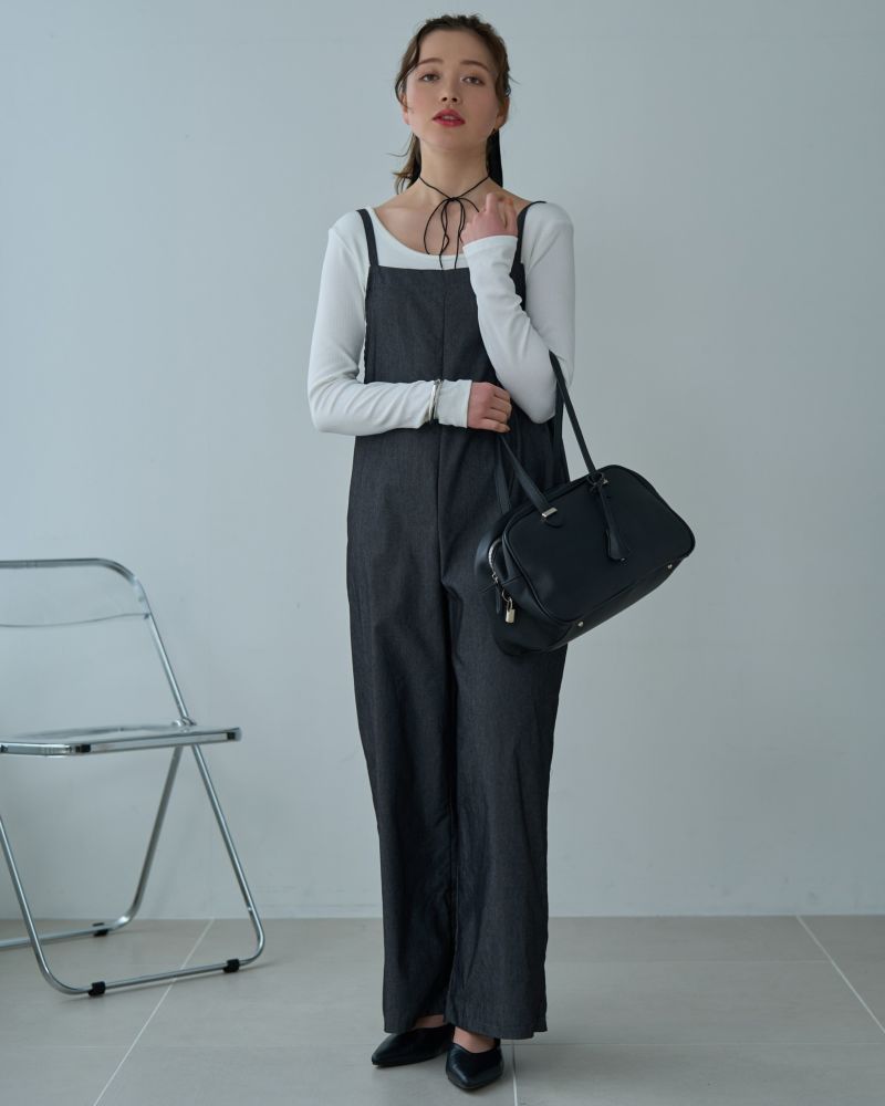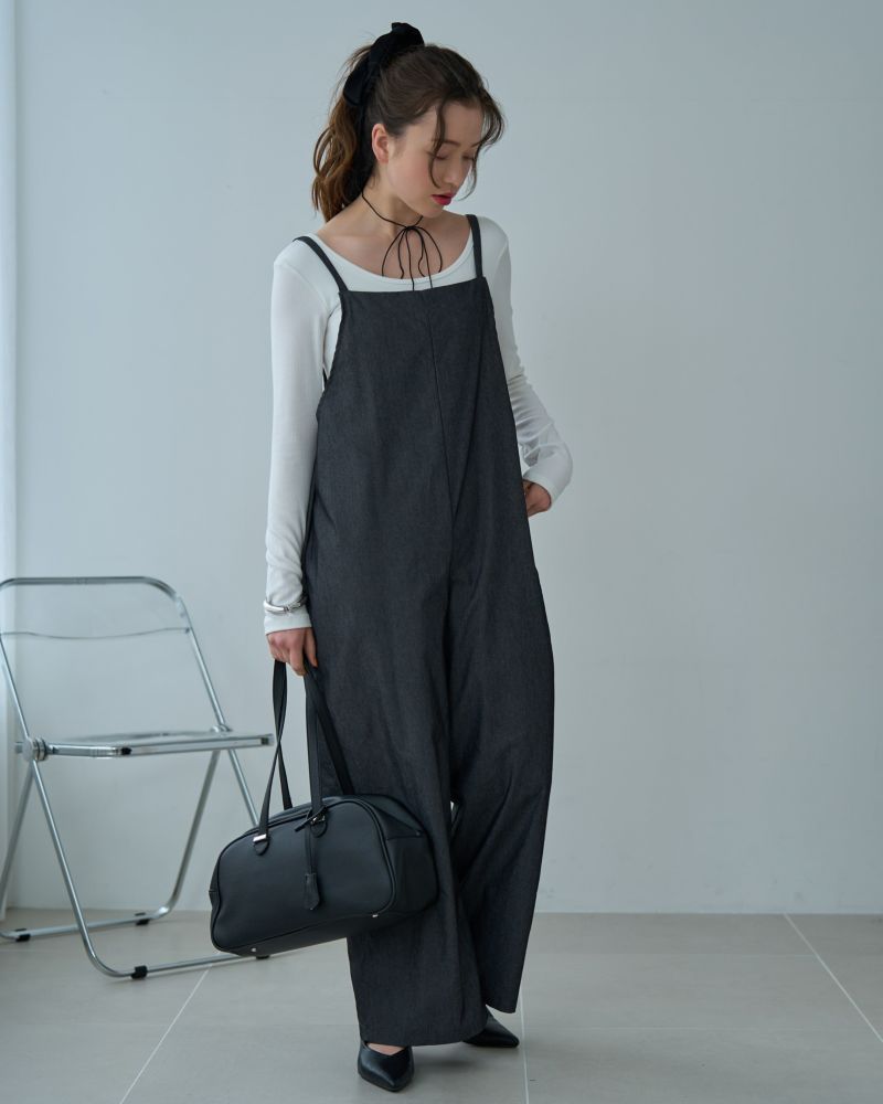 後ろの紐部分で丈の調整ができるのですごくいいです! 少しくびれたようなシルエットになるので、 こういうサロペットはズドンとしたシルエットになりがちだったのですが これは細見えしました!