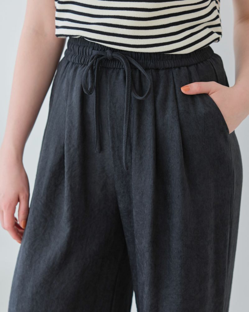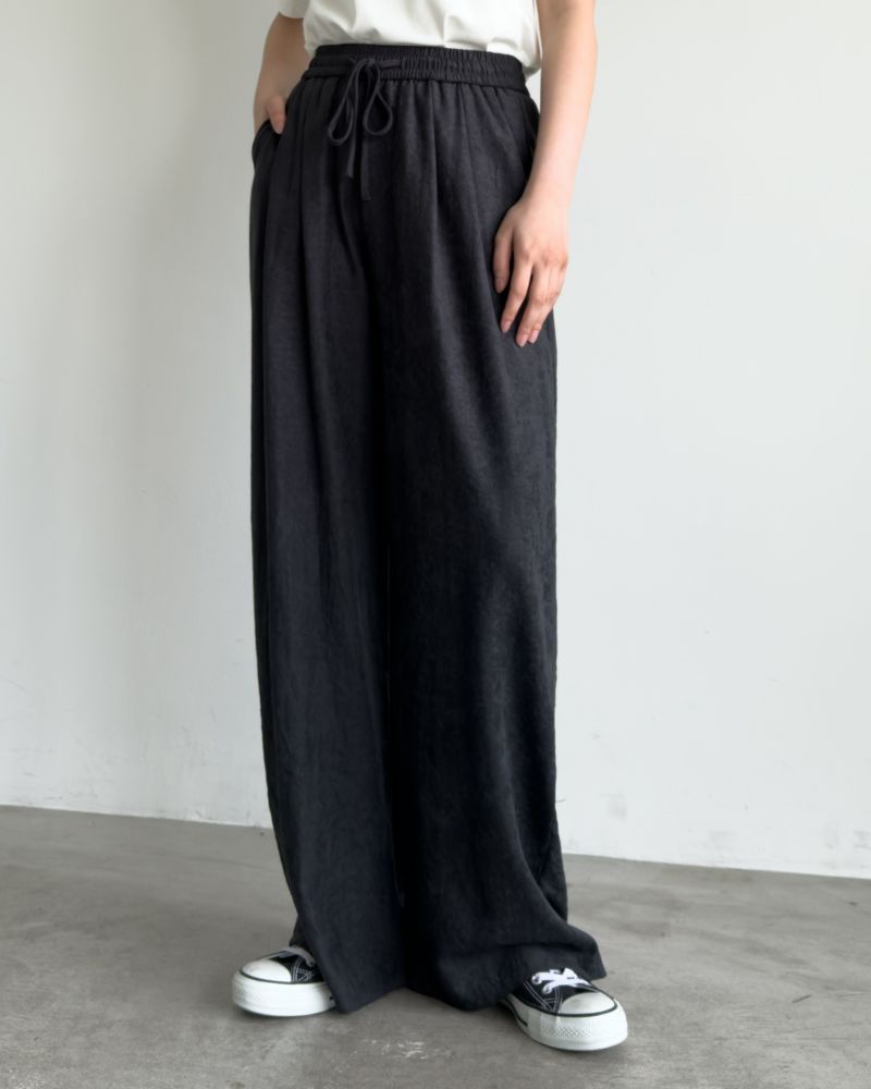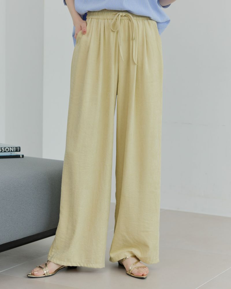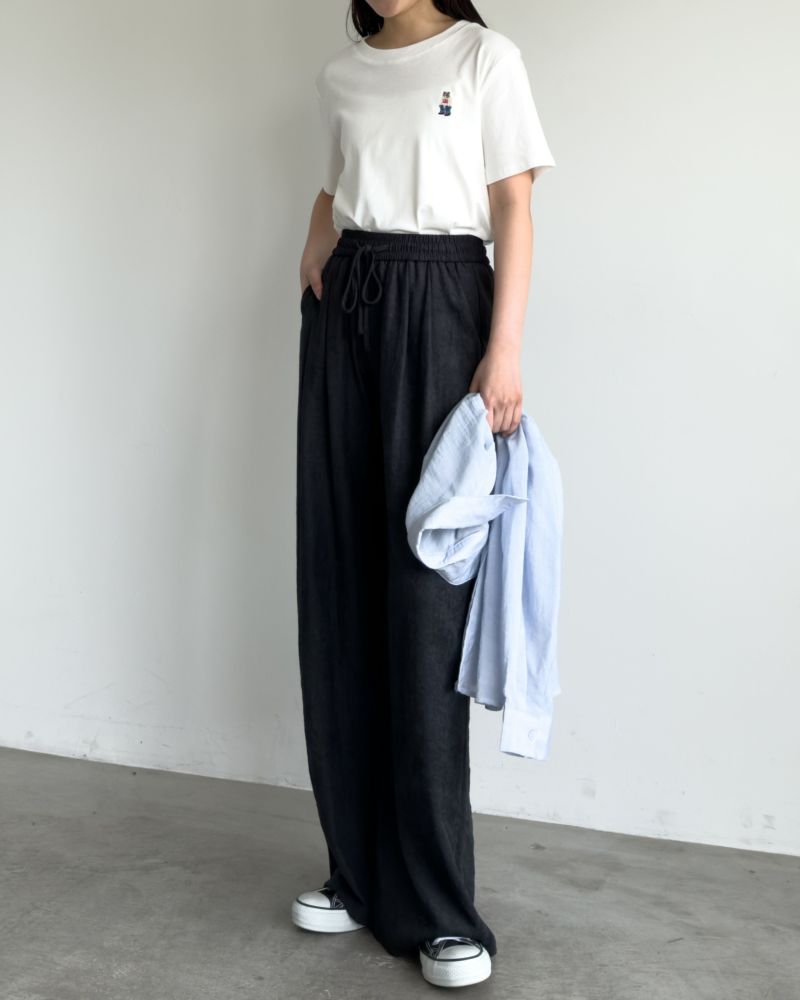 161~162センチくらいの身長で、そんなに細みでもない私が履いて、ペタンコ靴だと階段などで少し裾が気になります。ウエストは他のイージーパンツよりもやや締めつけ強めに感じました。 カラーが春夏らしく、目を引くので、主役級アイテムです。 爽やかなコーデにおすすめです!
