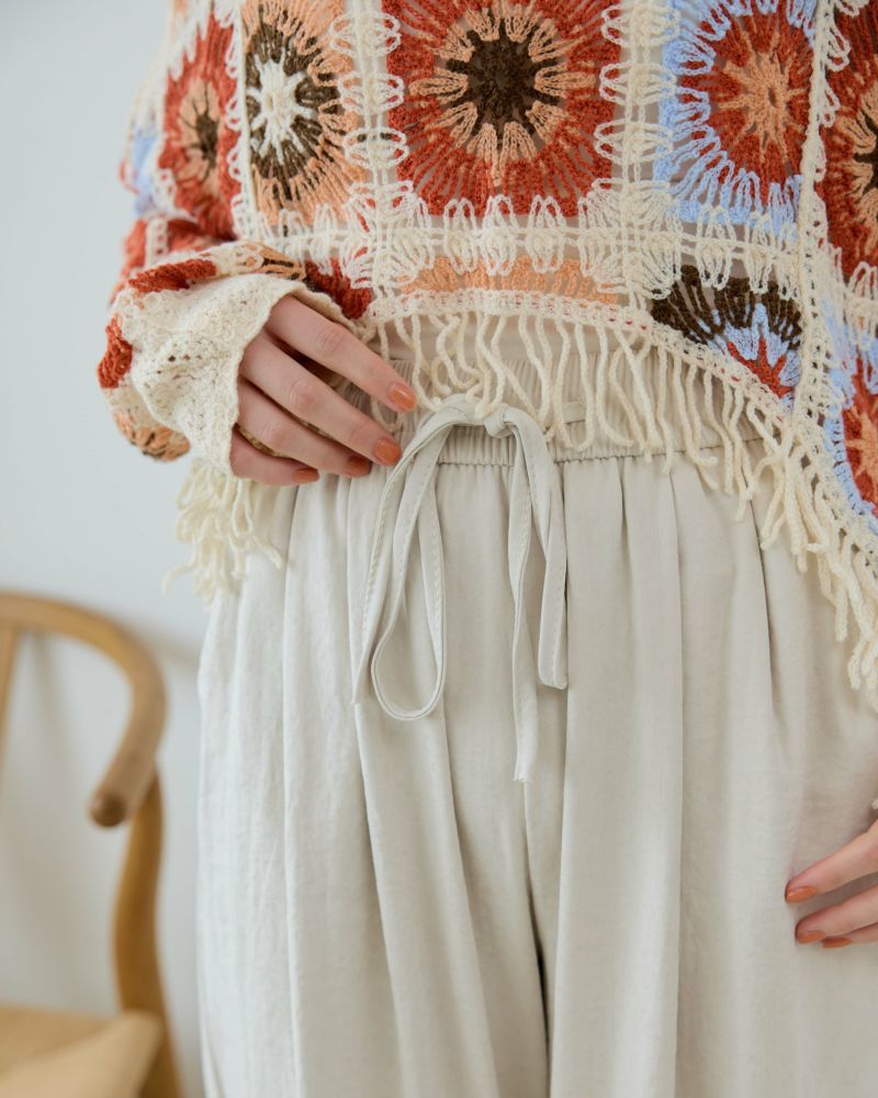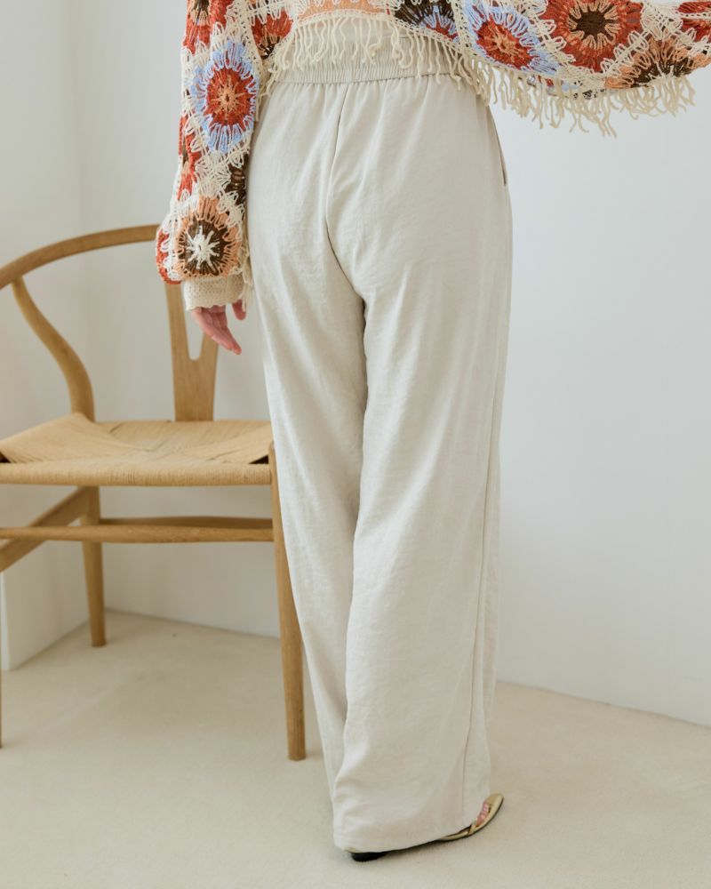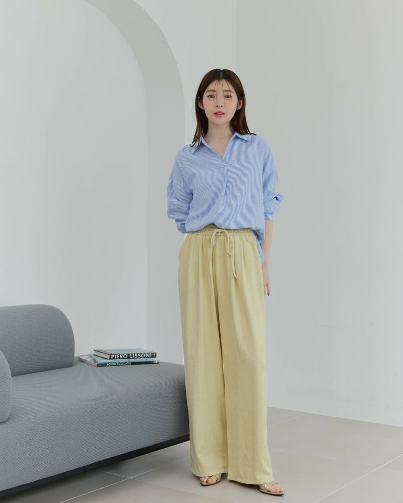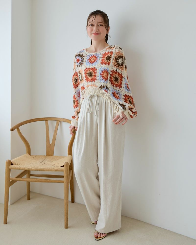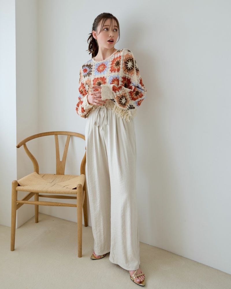 161~162センチくらいの身長で、そんなに細みでもない私が履いて、ペタンコ靴だと階段などで少し裾が気になります。ウエストは他のイージーパンツよりもやや締めつけ強めに感じました。 カラーが春夏らしく、目を引くので、主役級アイテムです。 爽やかなコーデにおすすめです!