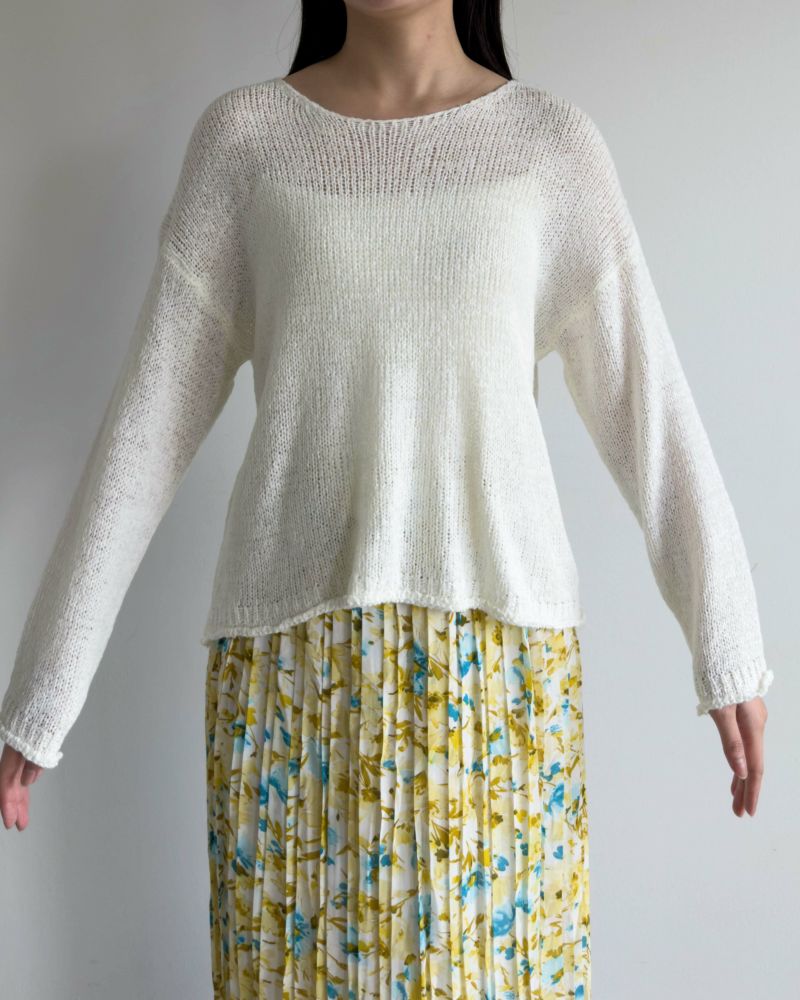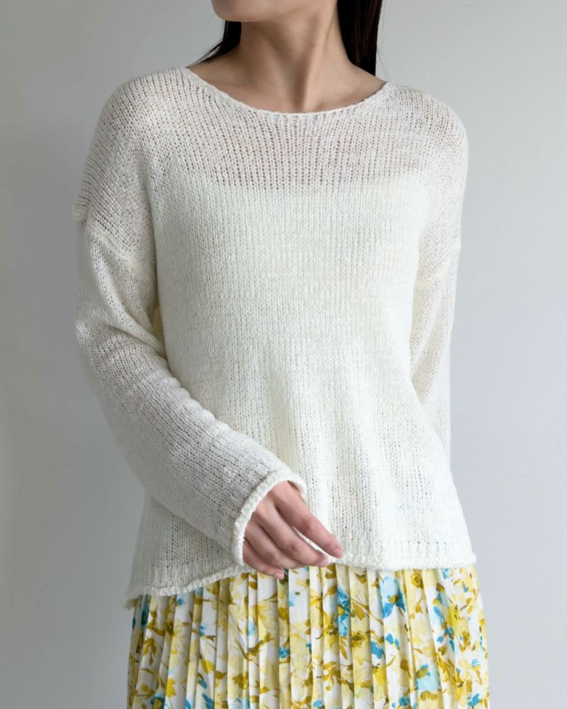 田中ちゃんがおすすめしていたので、ブルーを買いました!鮮やかなブルーというよりは、モデルさんやライブで見せてくれたブルーグレーみたいな色です。柔らかい生地で薄手なのに、透け感が画像よりも目立たないのでらオフィスにも着れそうです!オフホワイトはさすがに透けそうです。
