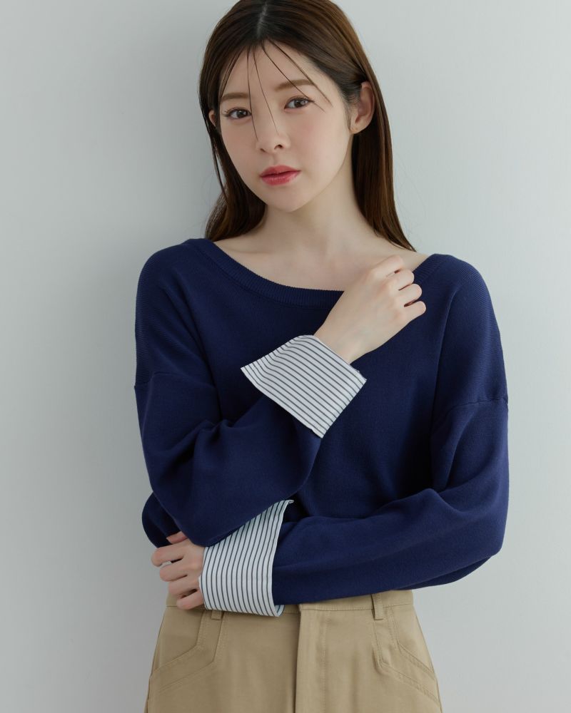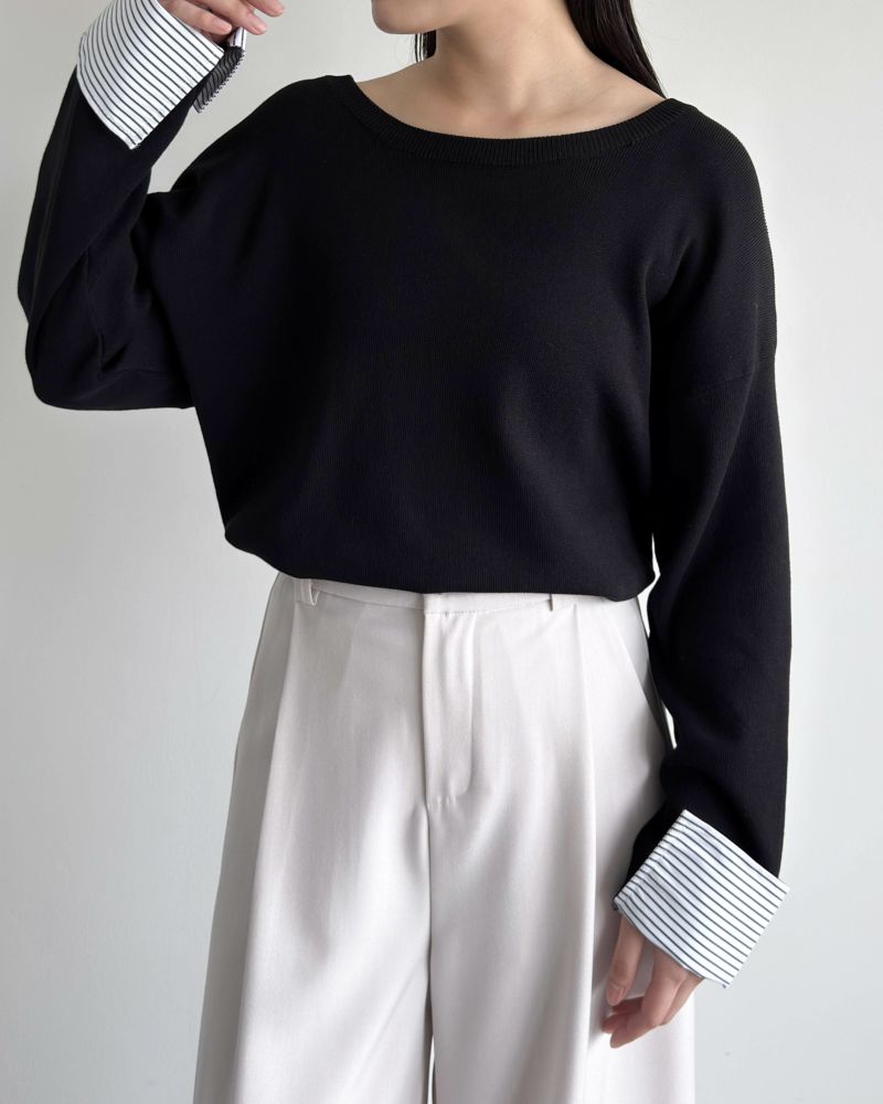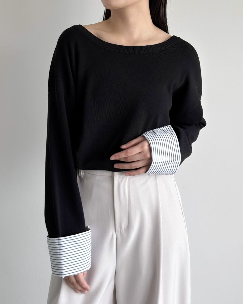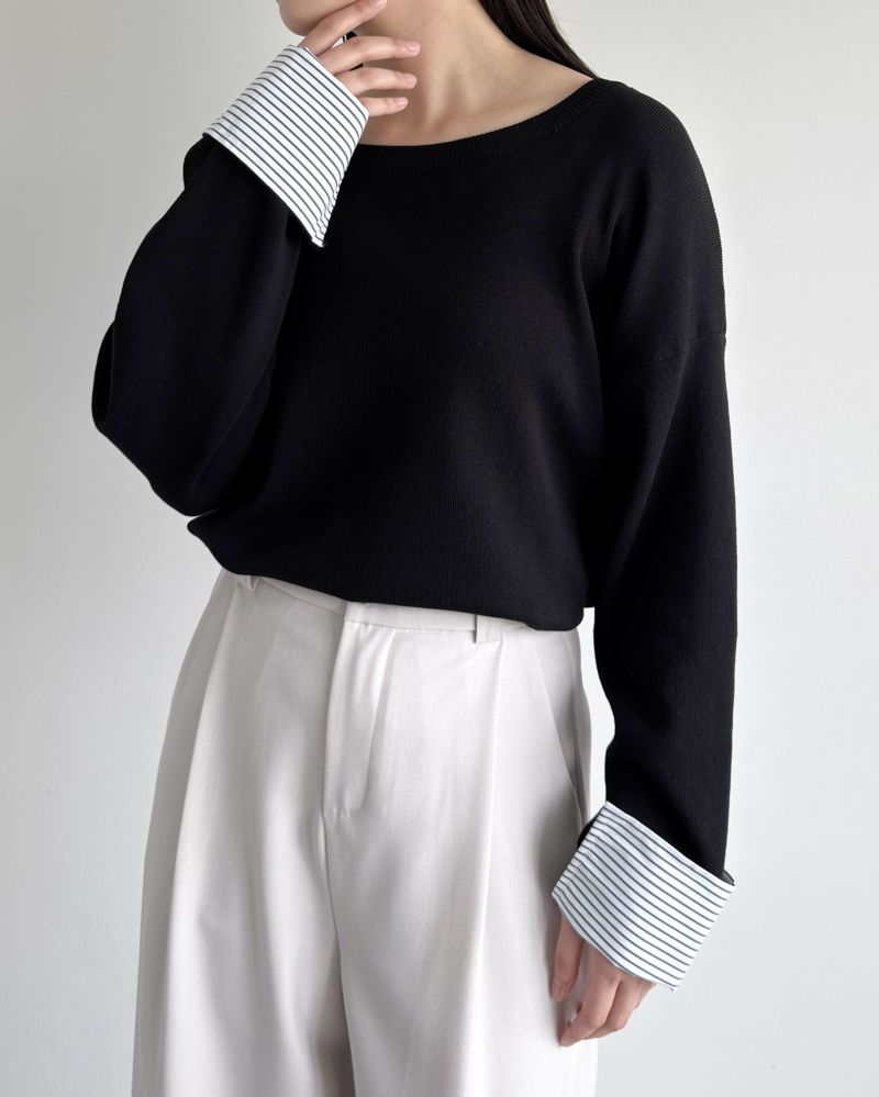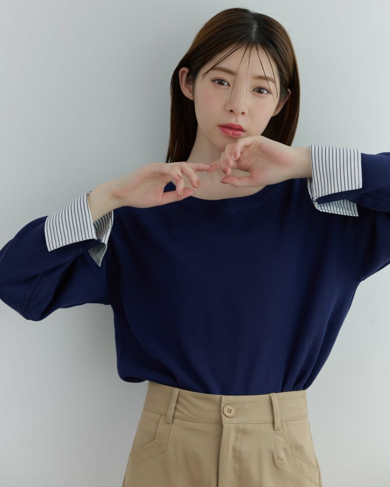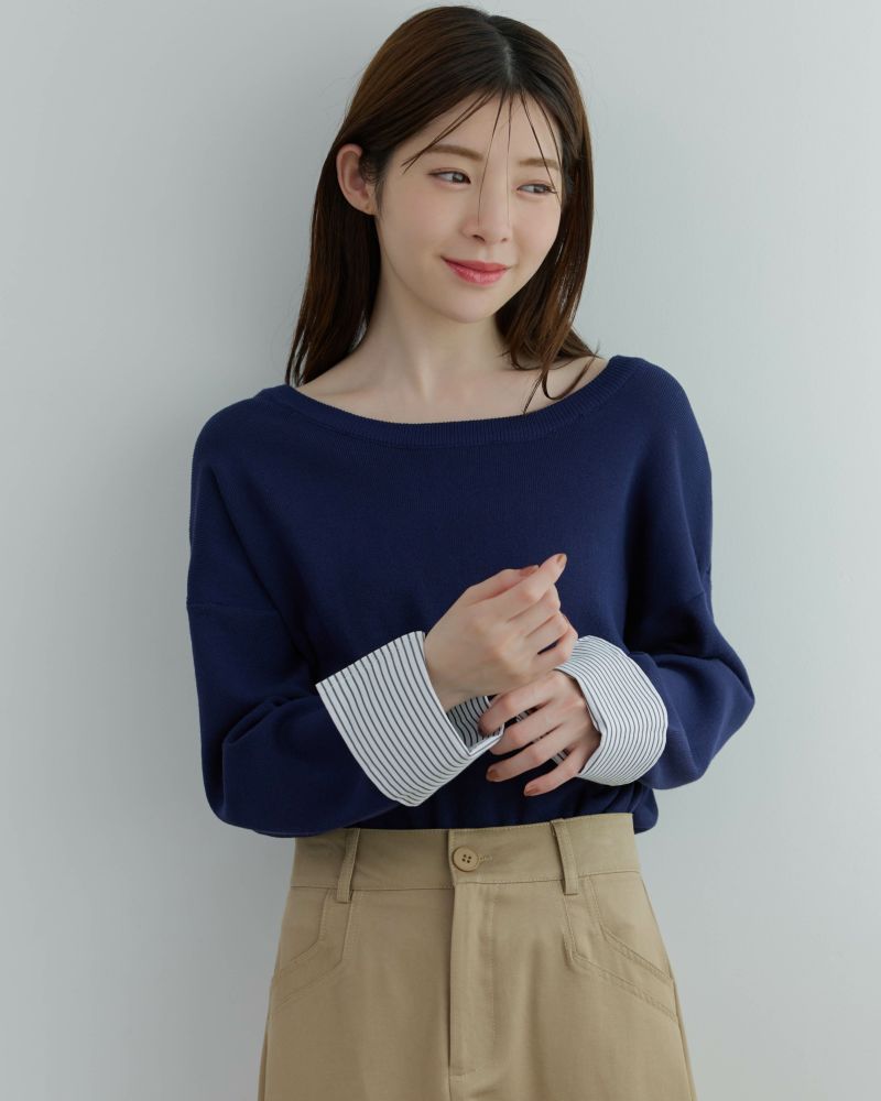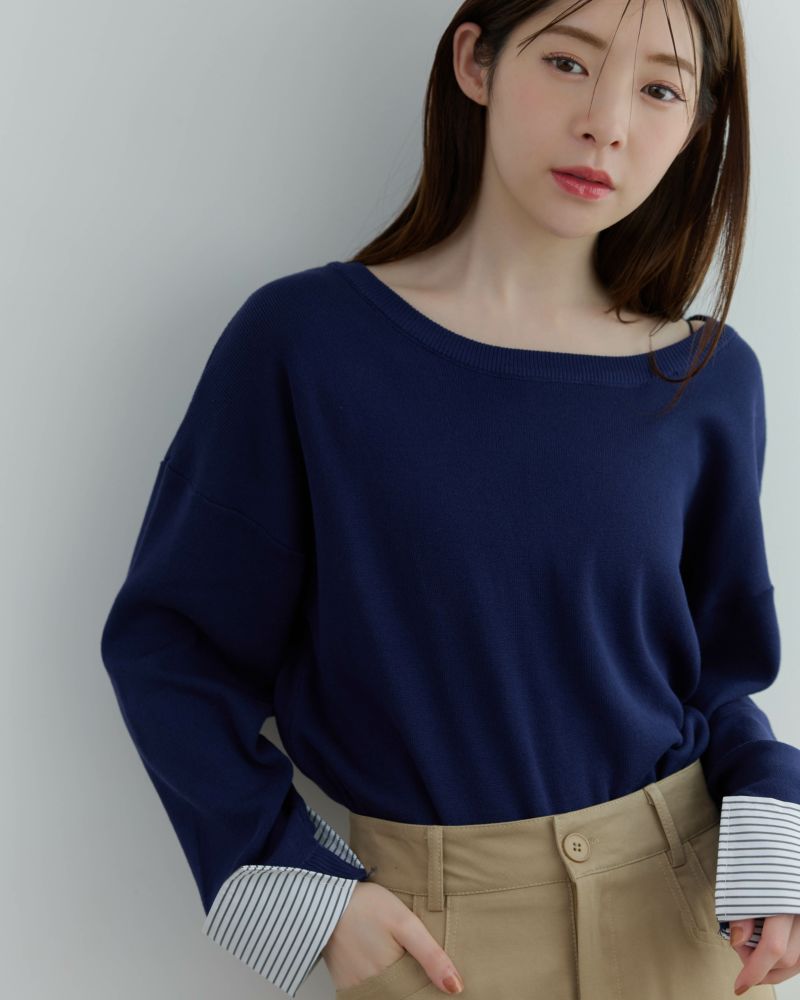ストライプカフスニット