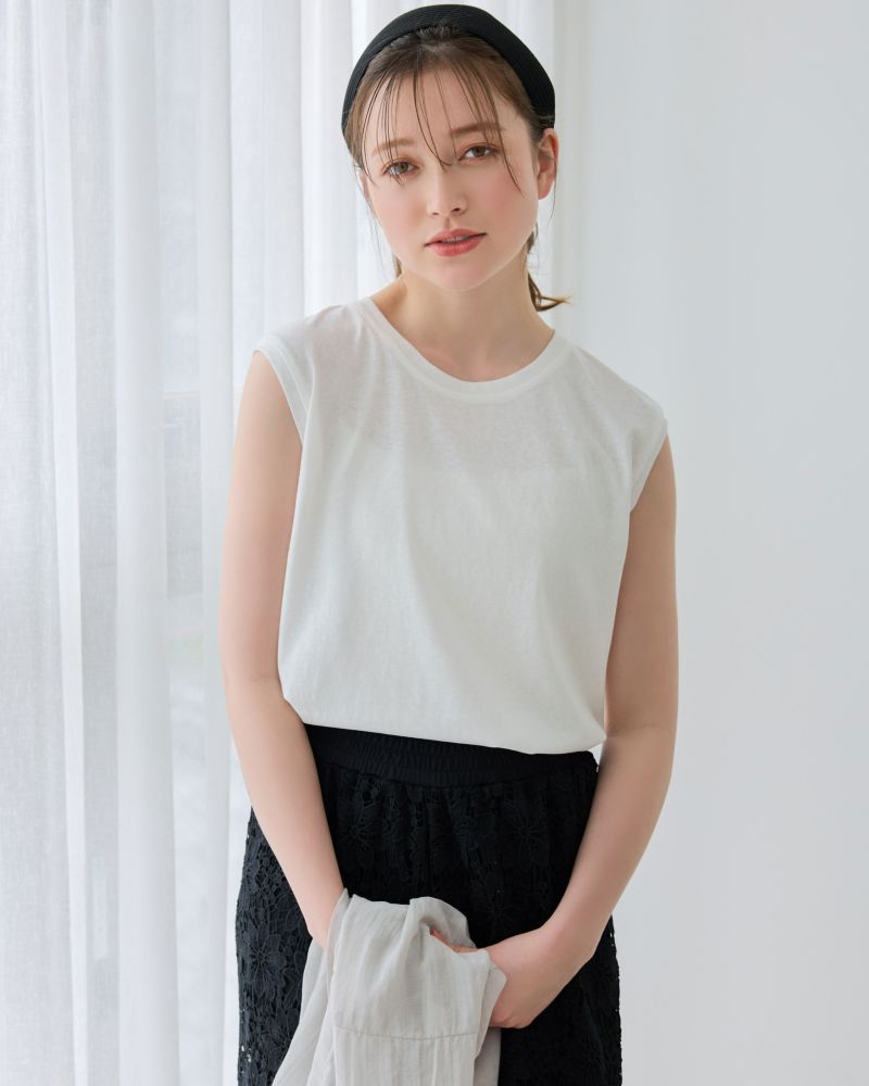 クルーネックノースリーブカットソー
