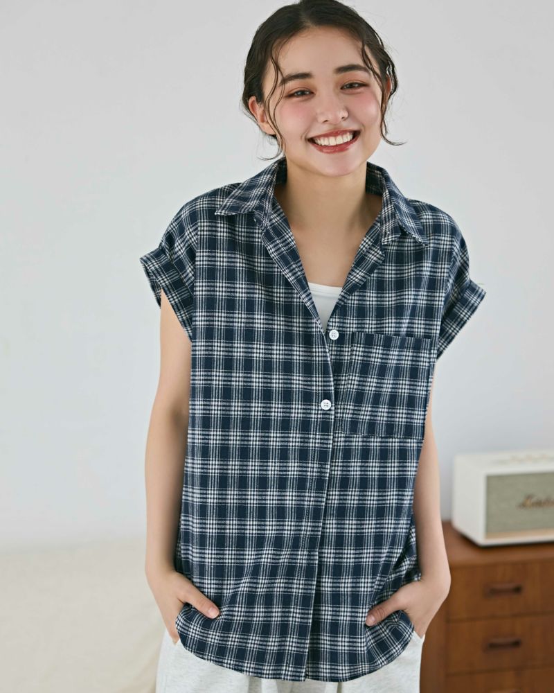 先染めチェックフレンチスリーブシャツ