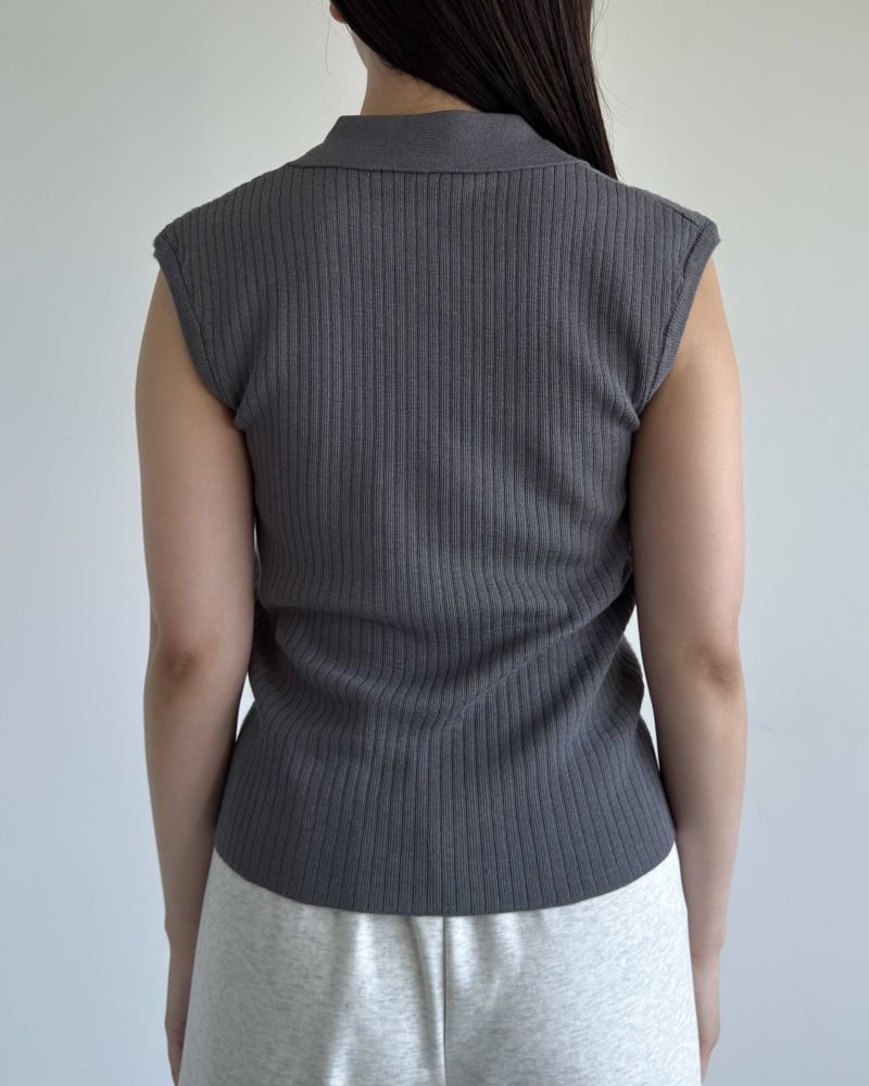 スキッパースリーブレスニット
