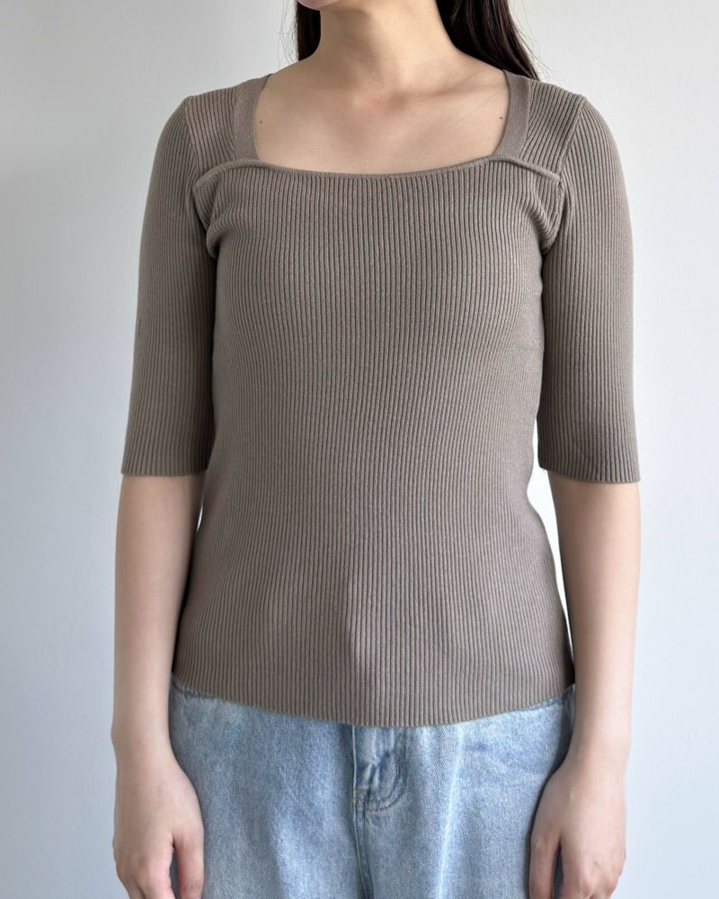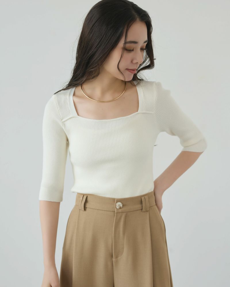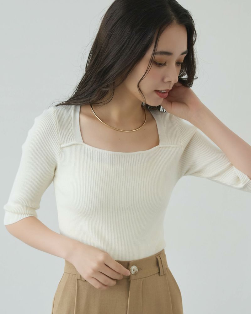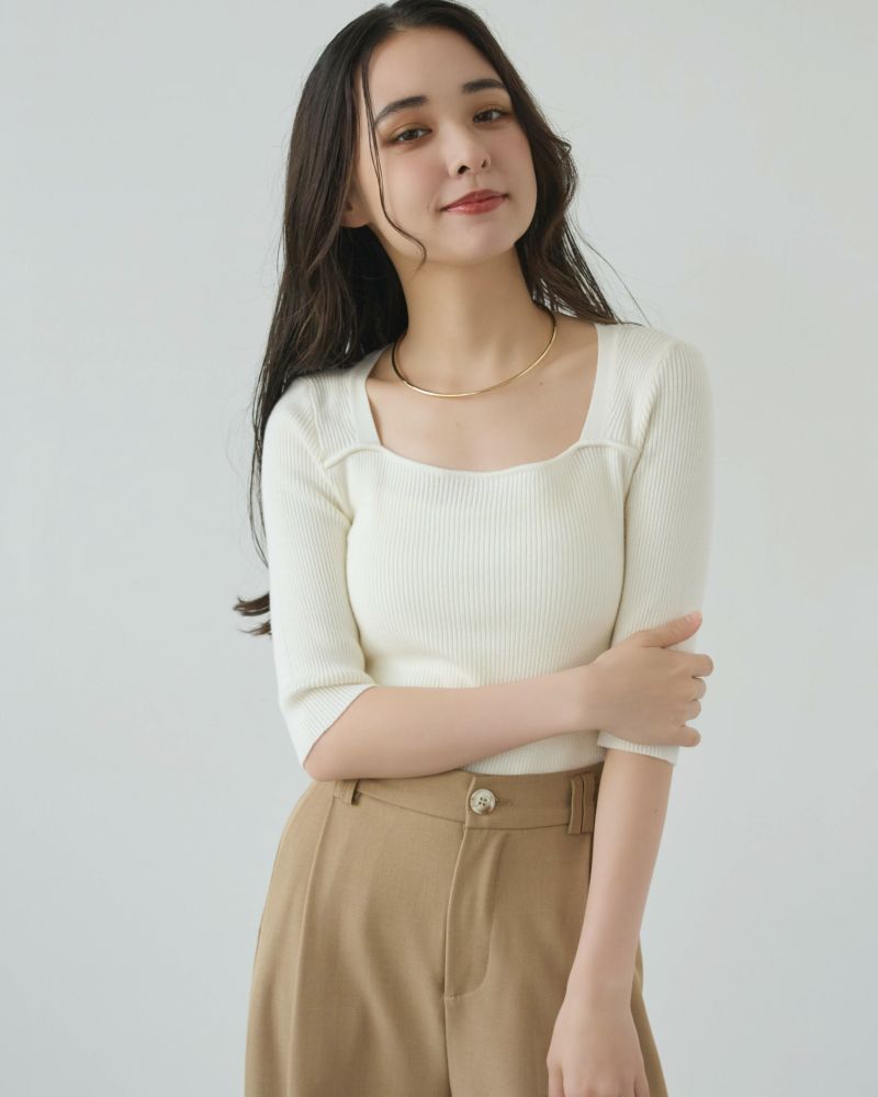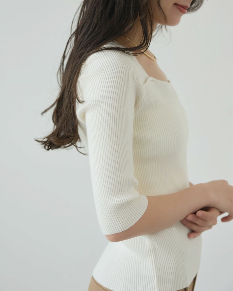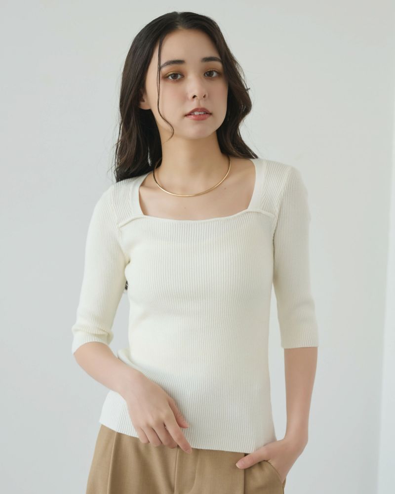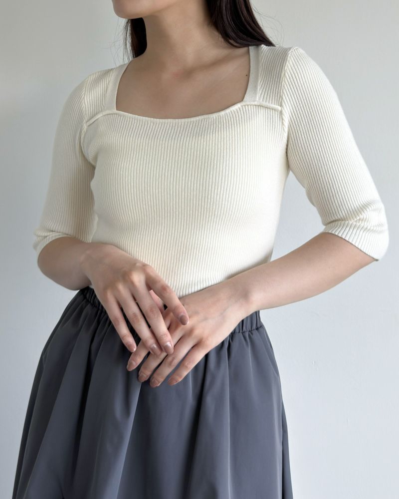 スクエアネック5分袖リブニット