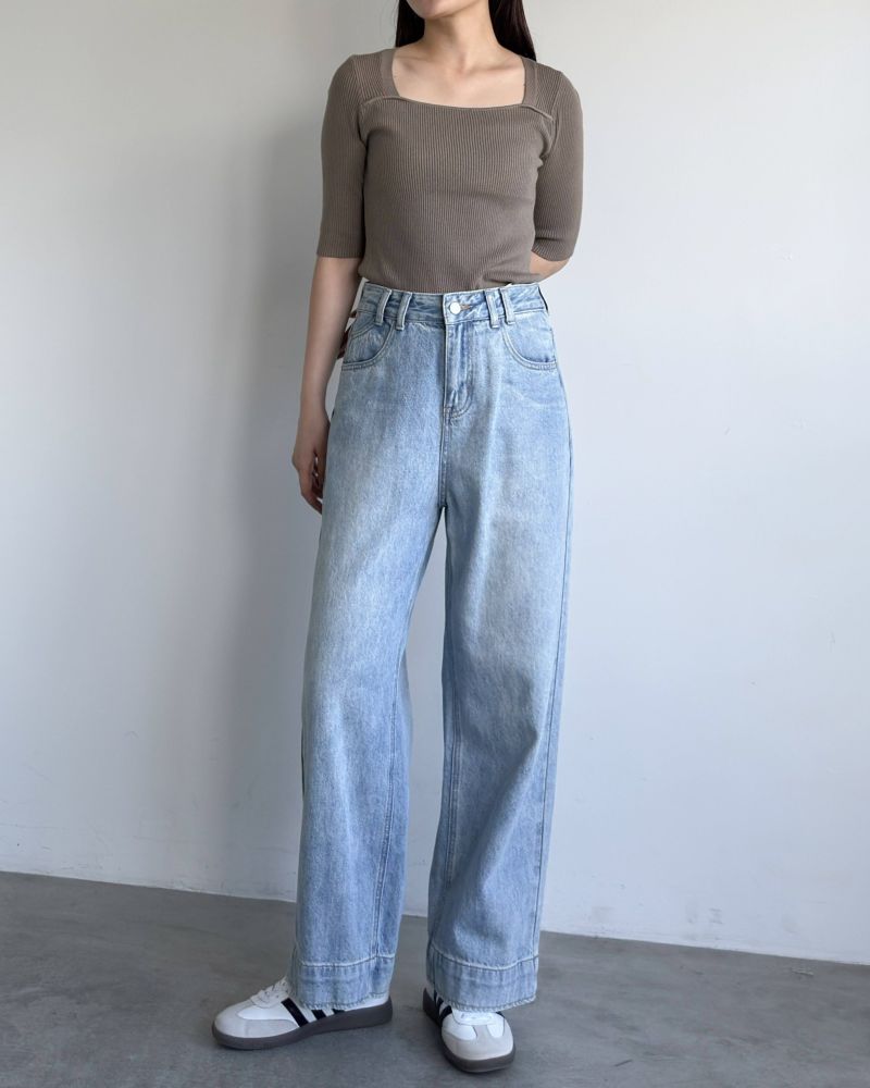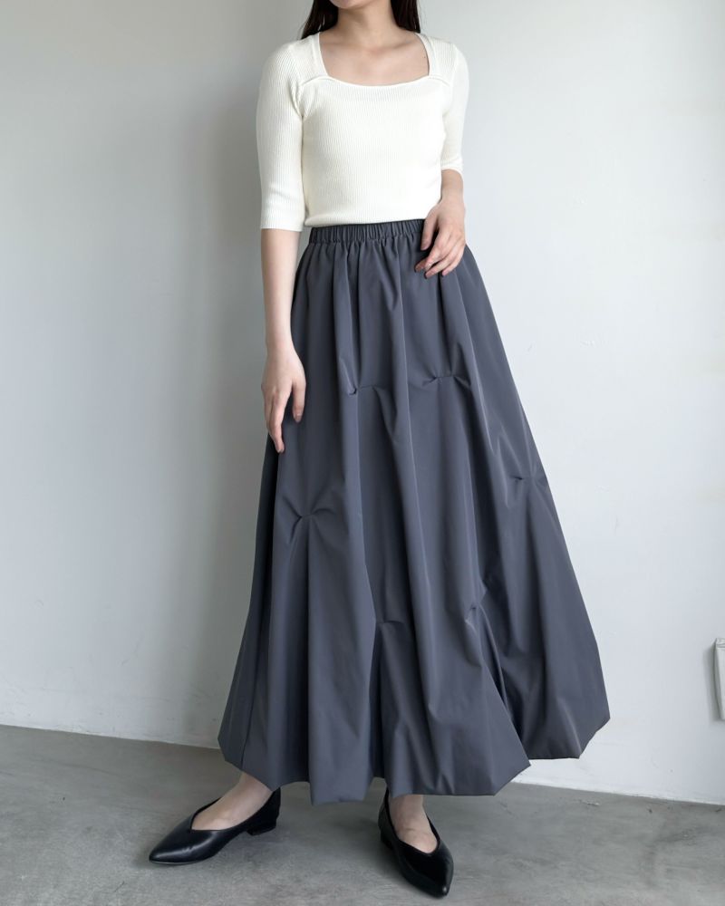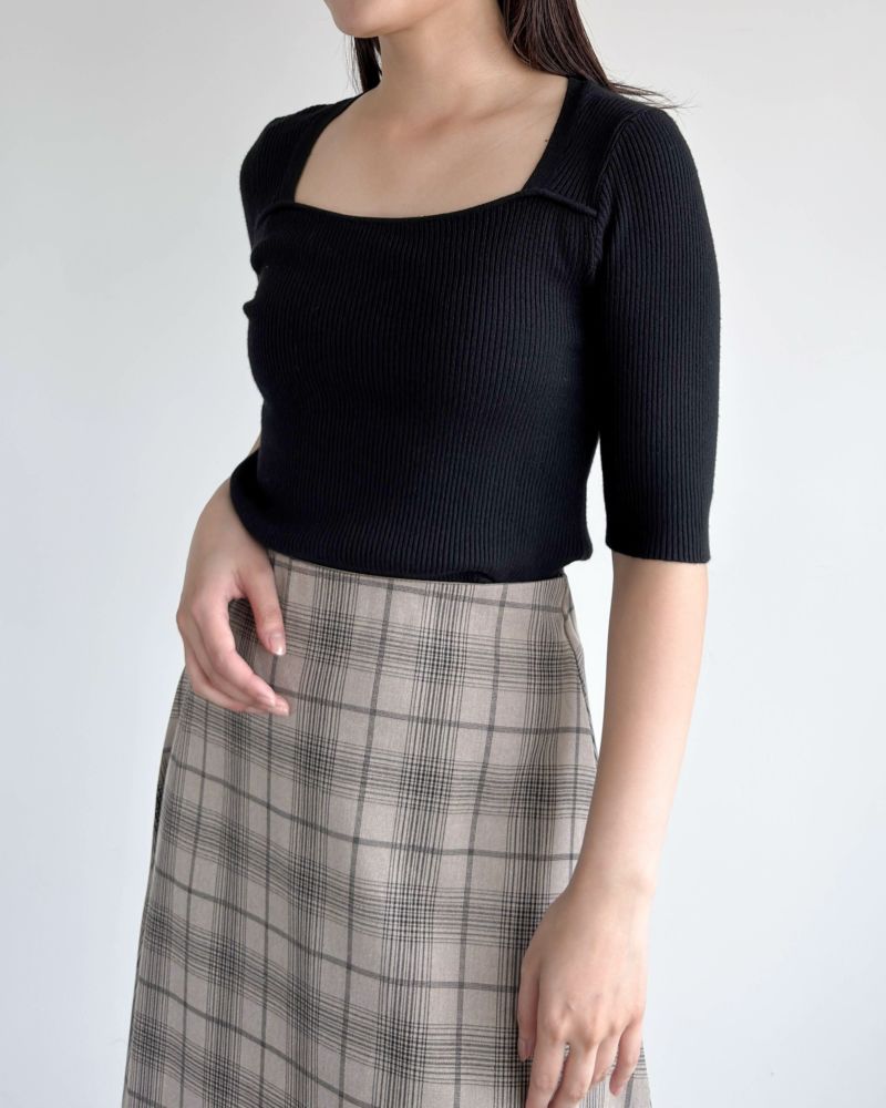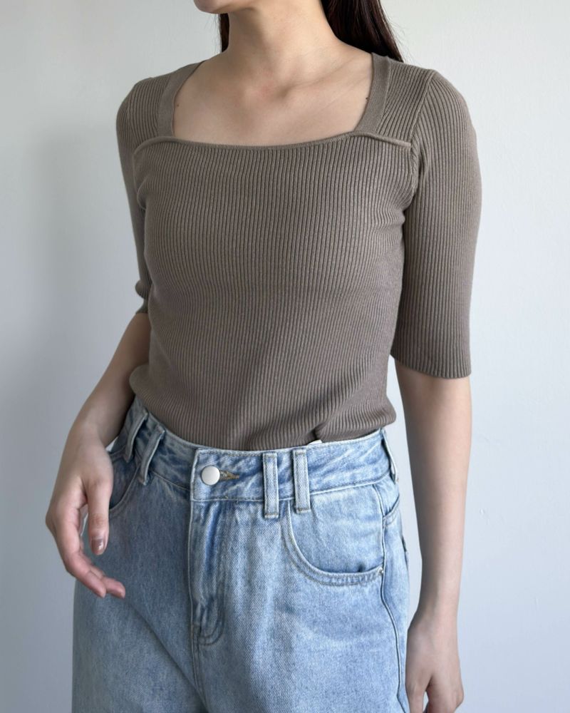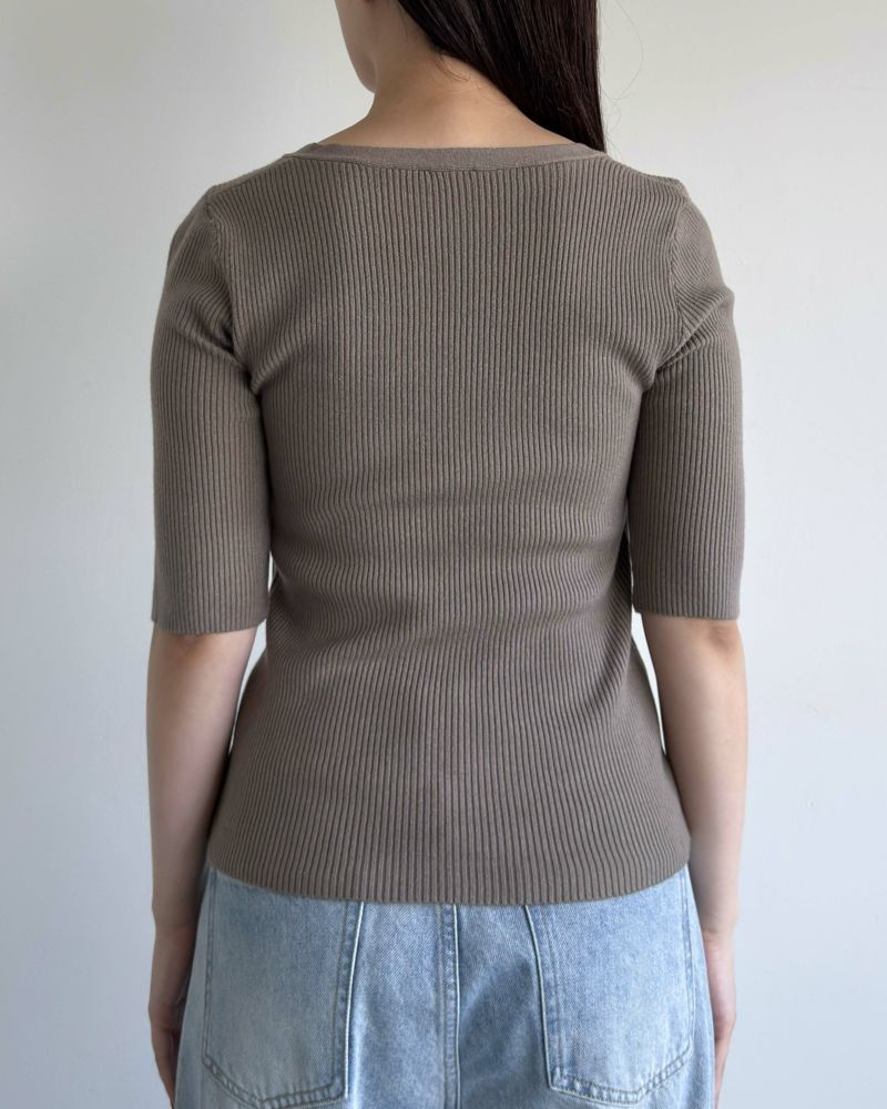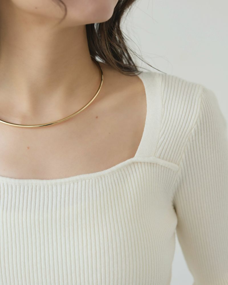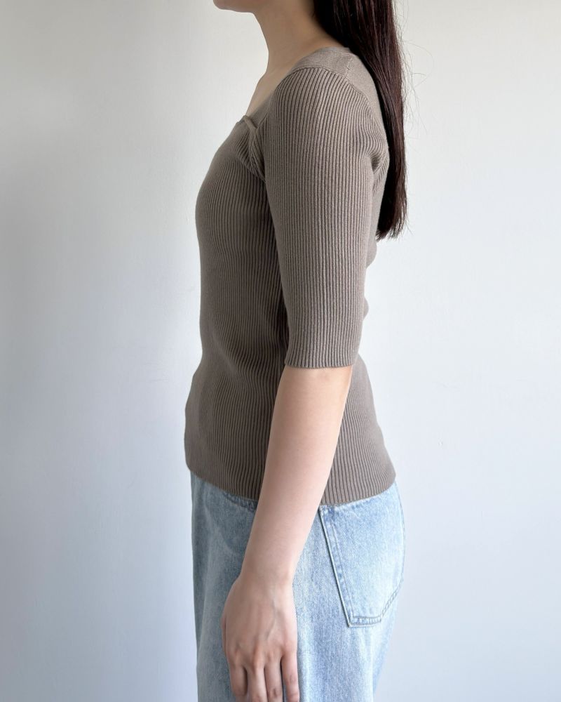 スクエアネック5分袖リブニット