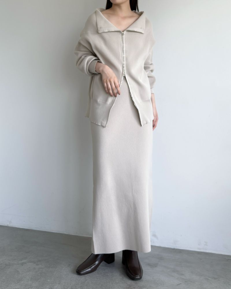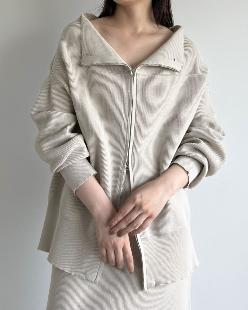モードリブダブルファスナーぽわん袖ニット【セットアップ可】
