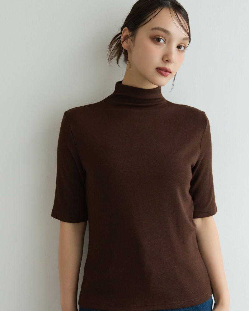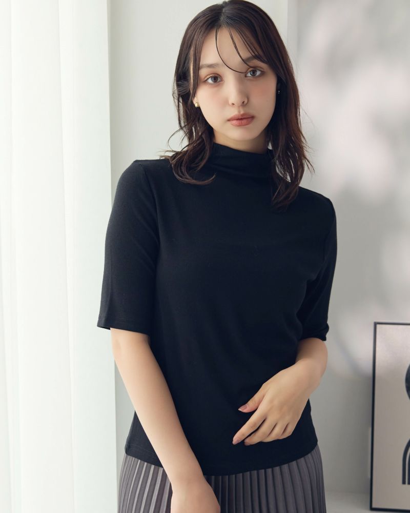 ボトルネック5分袖カットソー