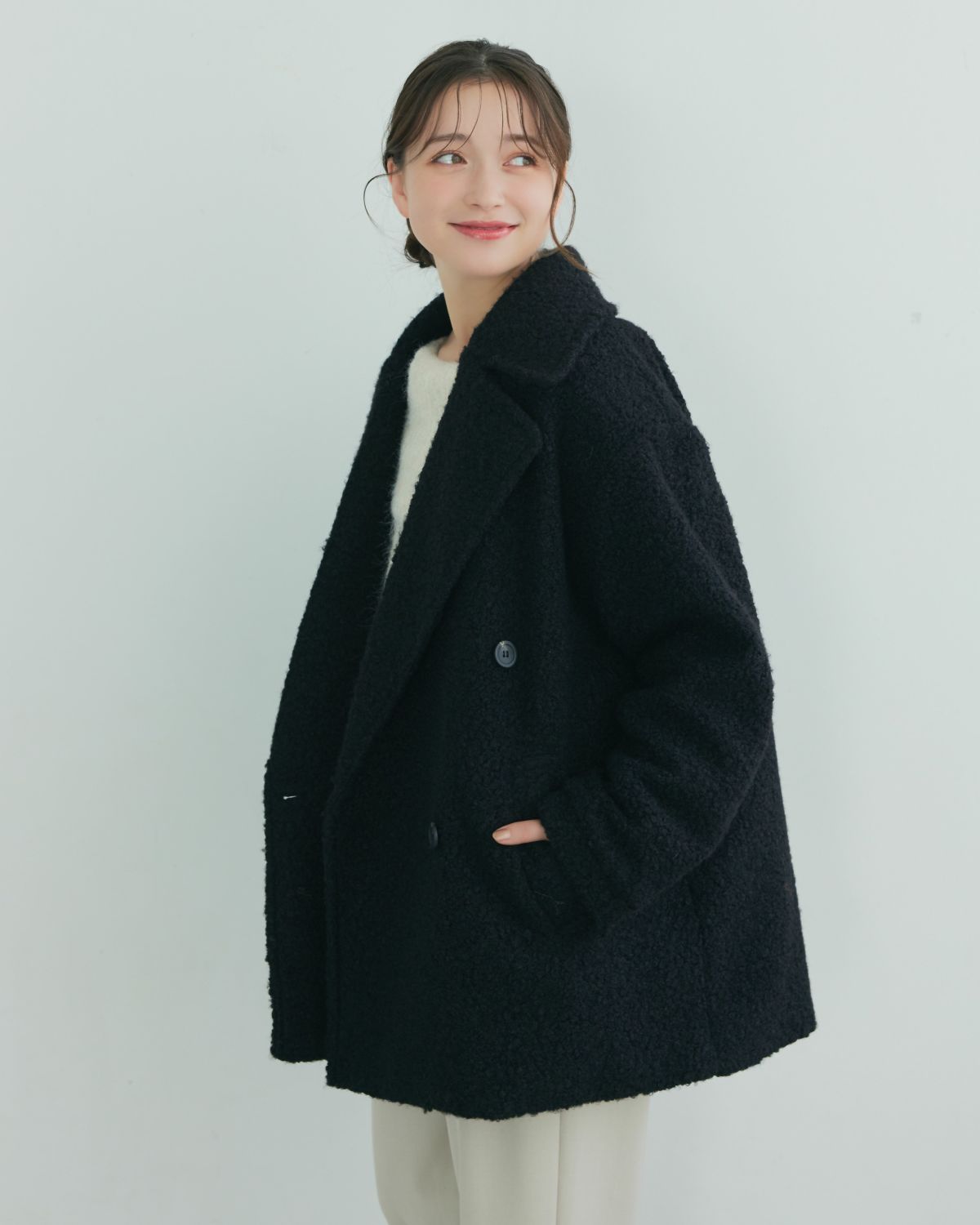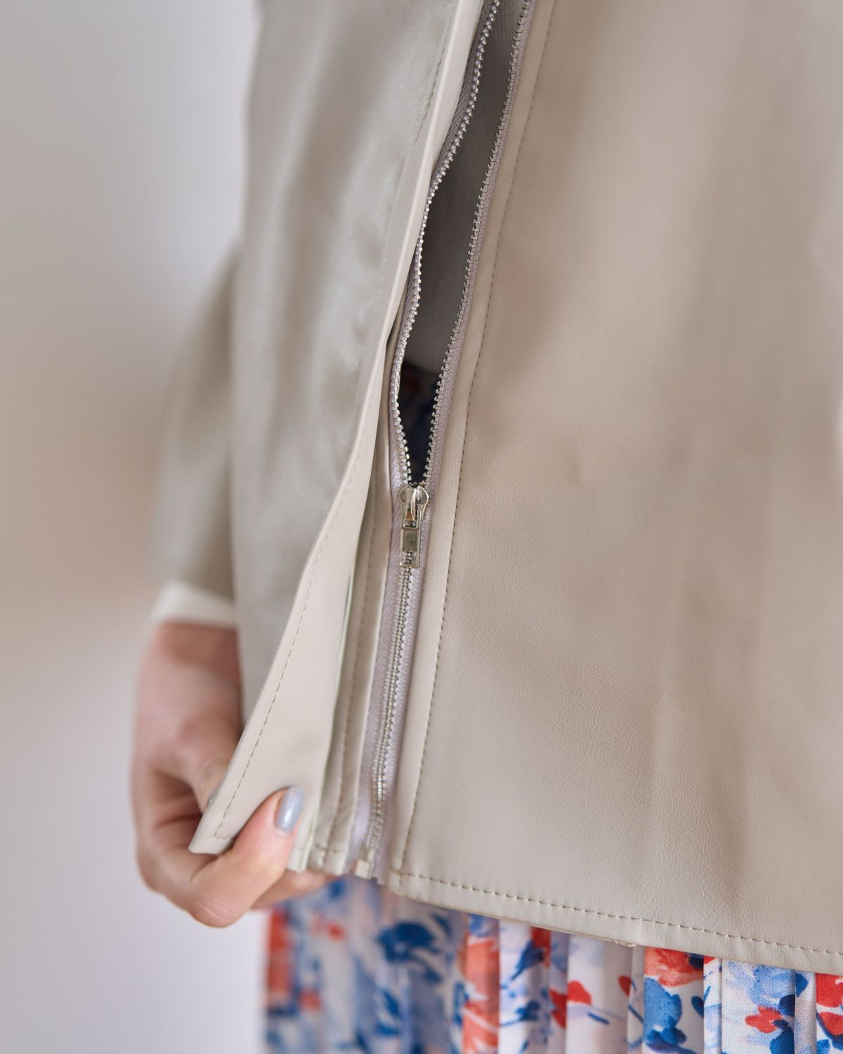an chic ノーカラーフレアスリーブフェイクレザーブルゾン
