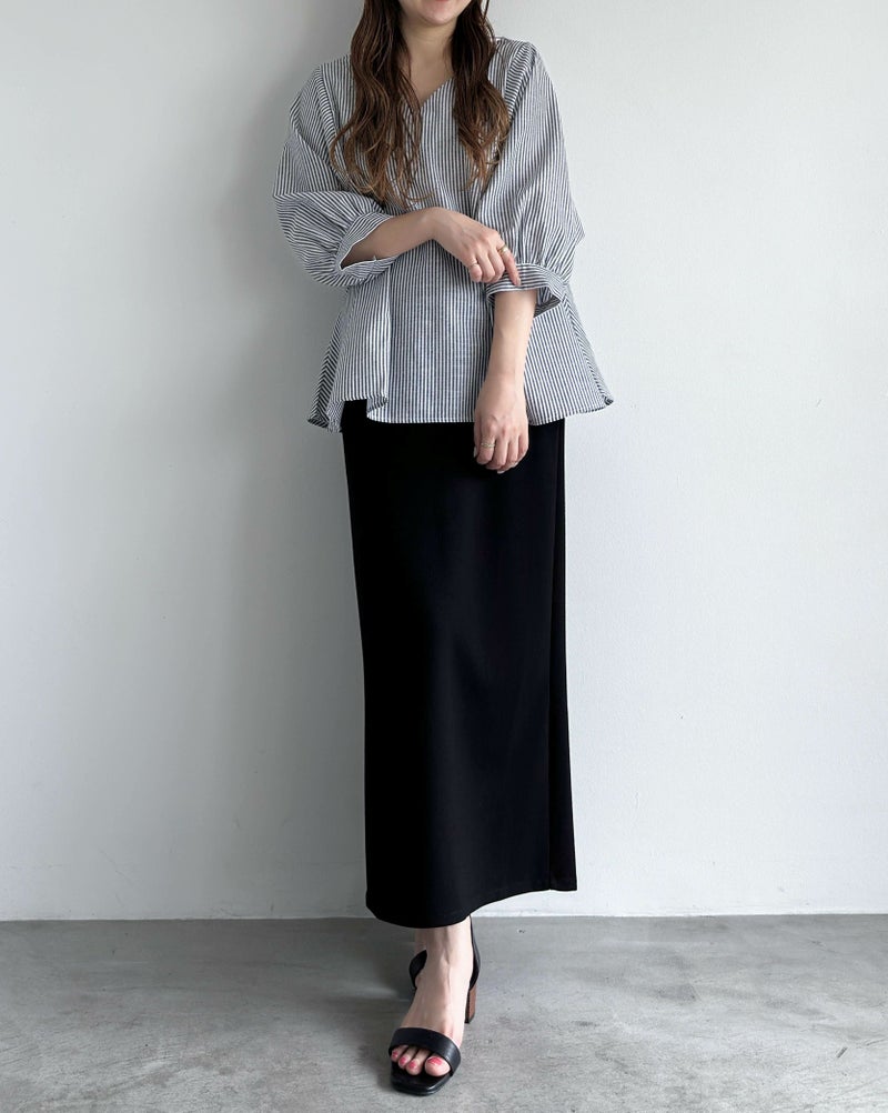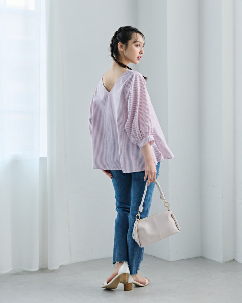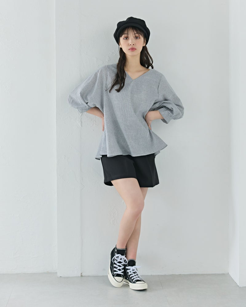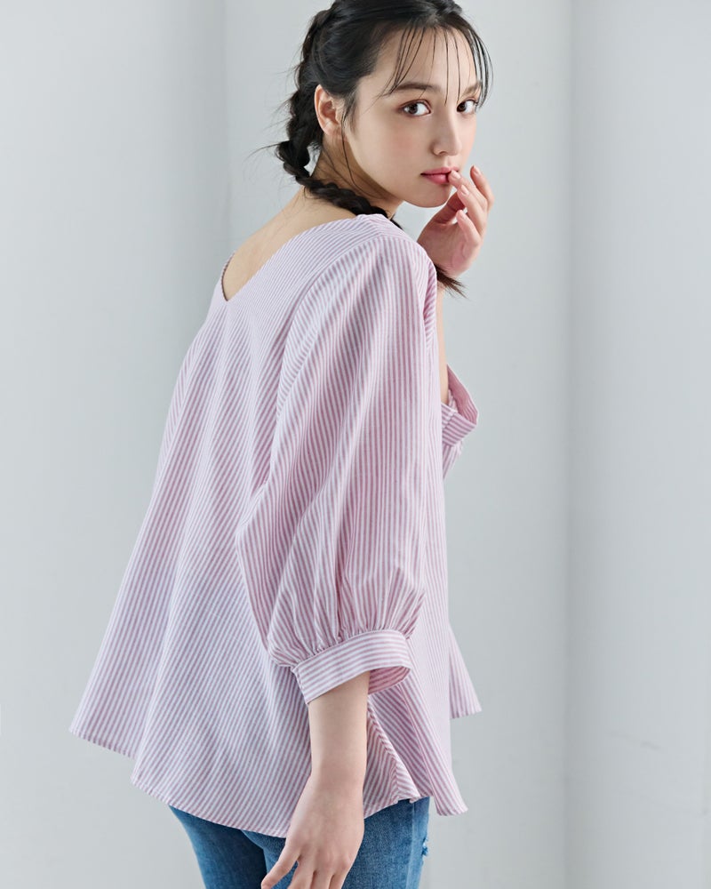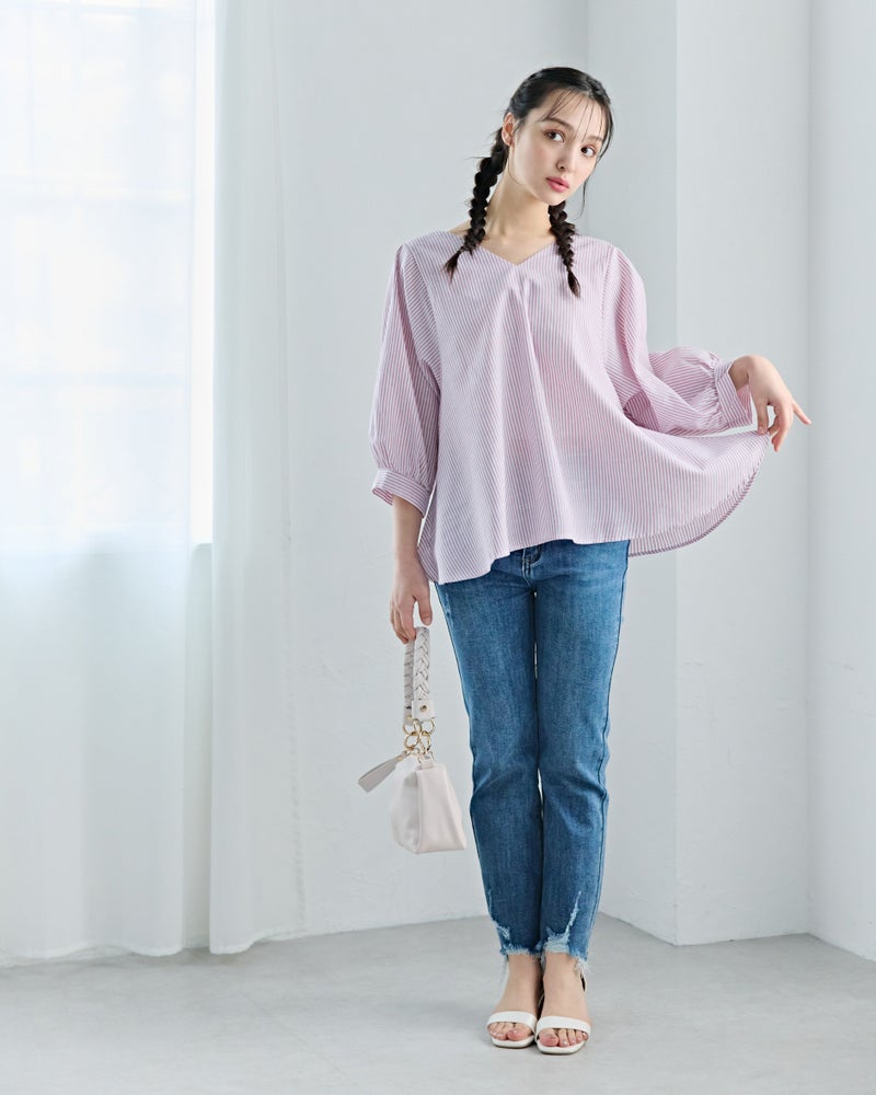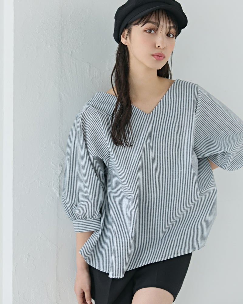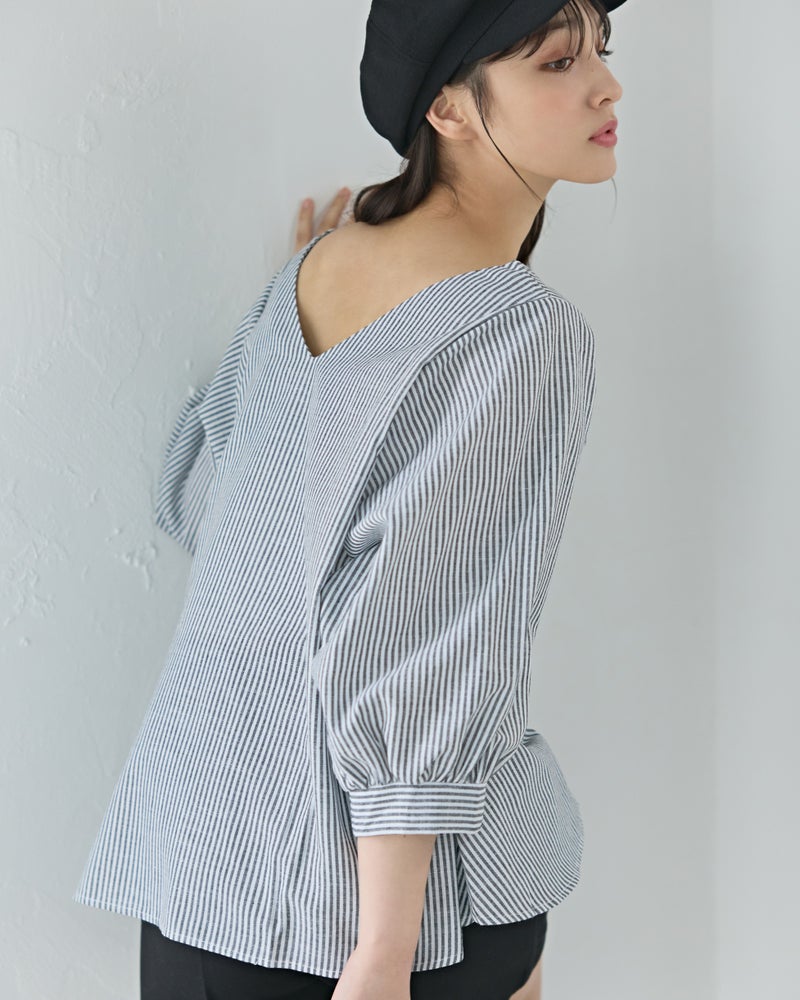 4. Vネックストライプフレアブラウス