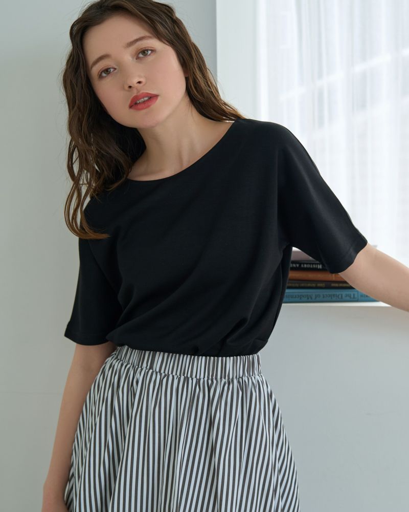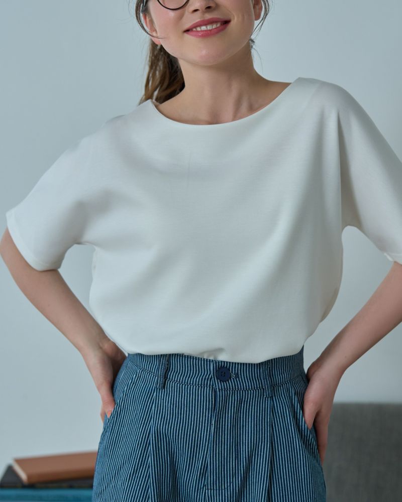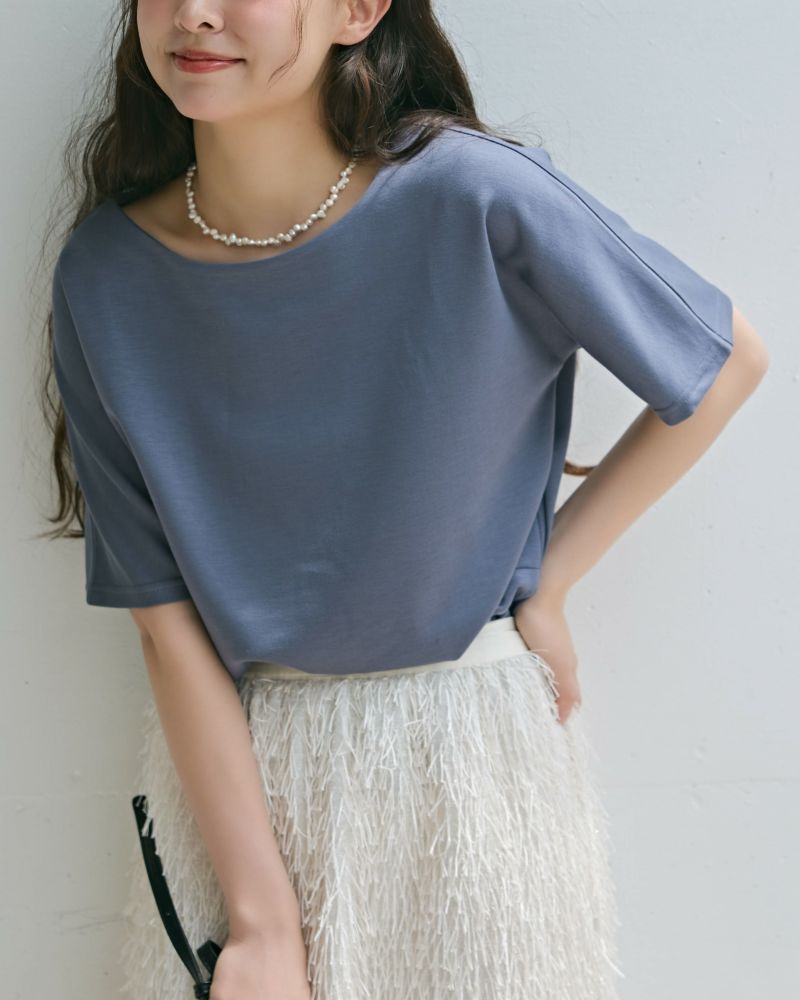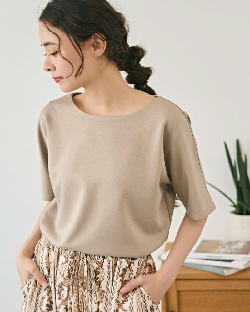 肌触りが良く、涼しく、着膨れしません! 156cmで通常トップスはLかLLサイズを着用してしています。 私は二の腕が太いので、袖が一部ピッタリとする部分がありますが悪目立ちしないのでTシャツが似合わない自分にはとても嬉しいです。 他の方のレビューにもありますが、襟の折り返し部分は縫われていないので、まくれあがって来ます。