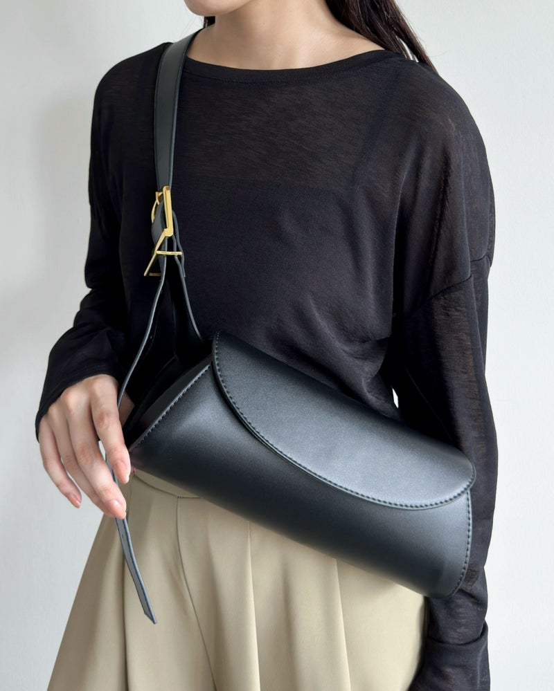 筒形フラップショルダーバッグ