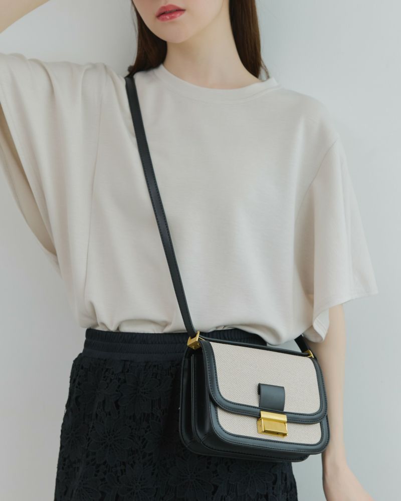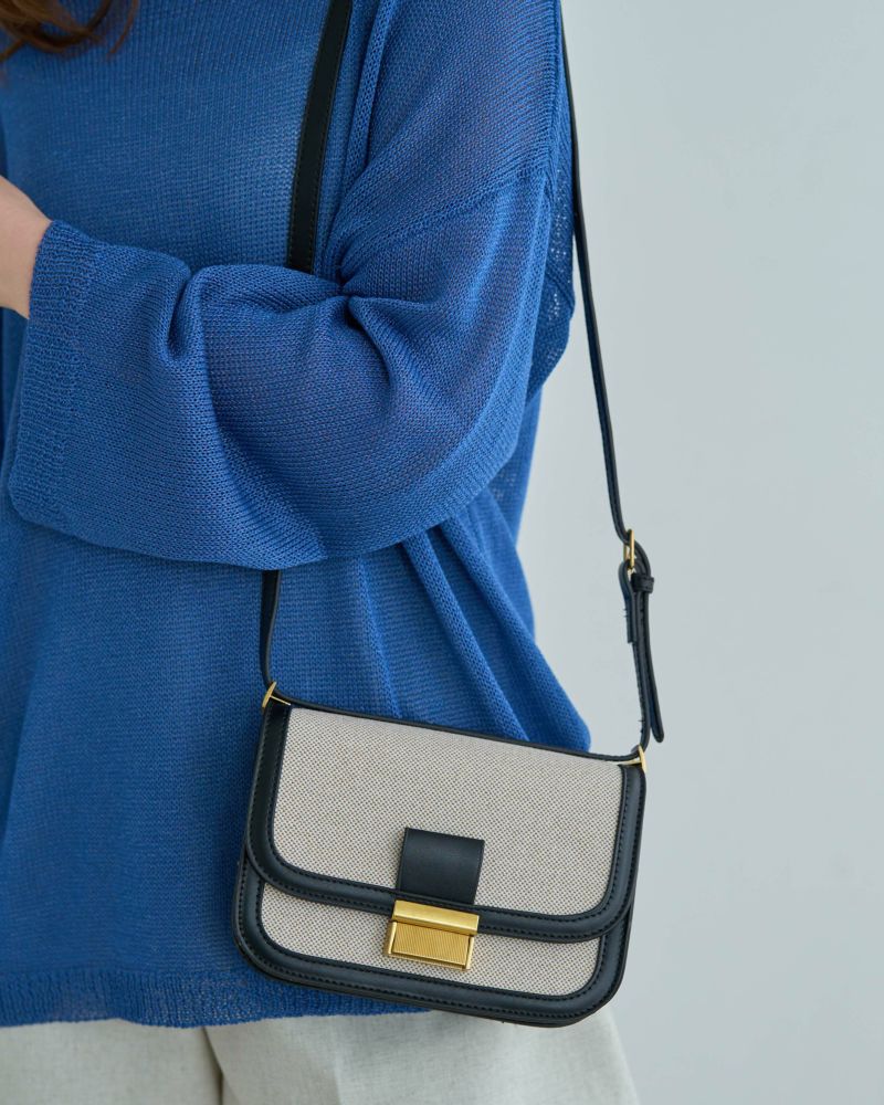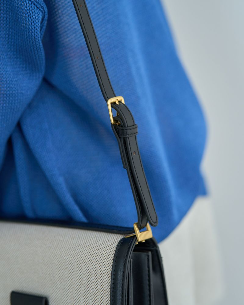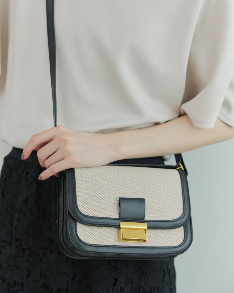 キャンバス×フェイクレザーコンビクロスボディーバッグ