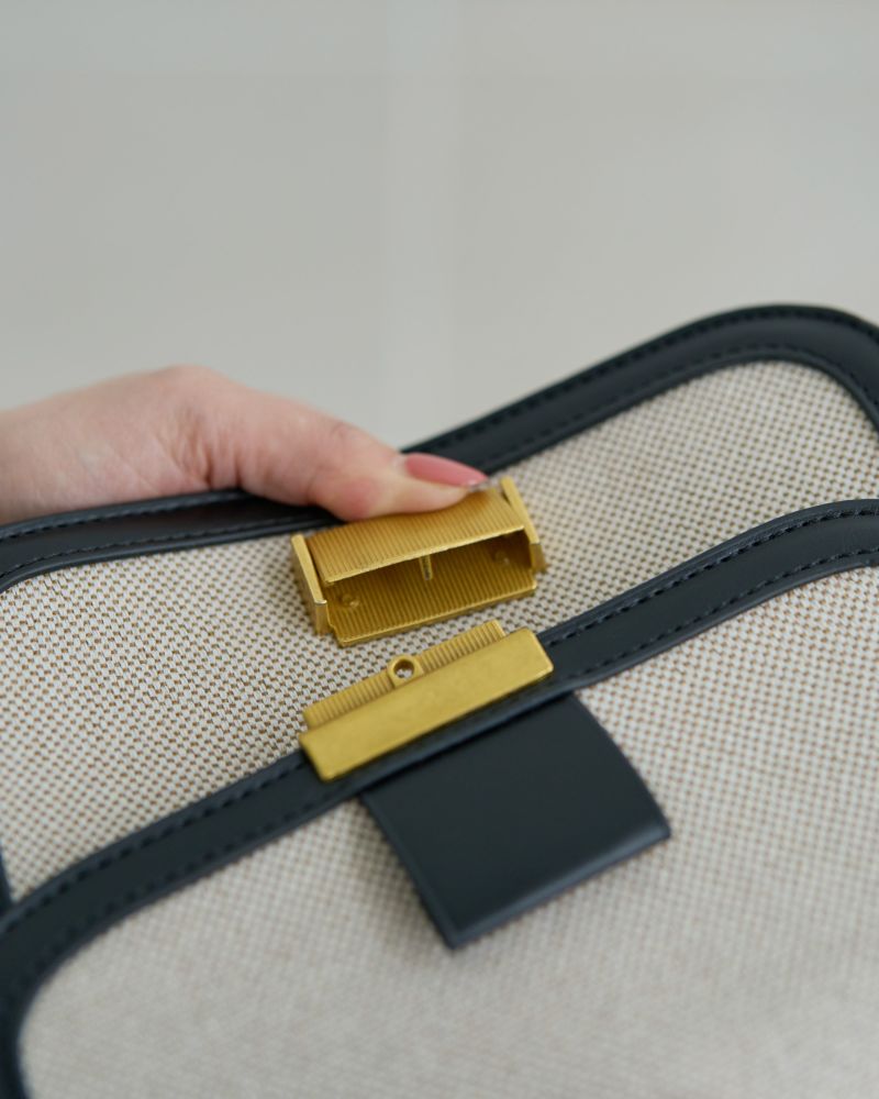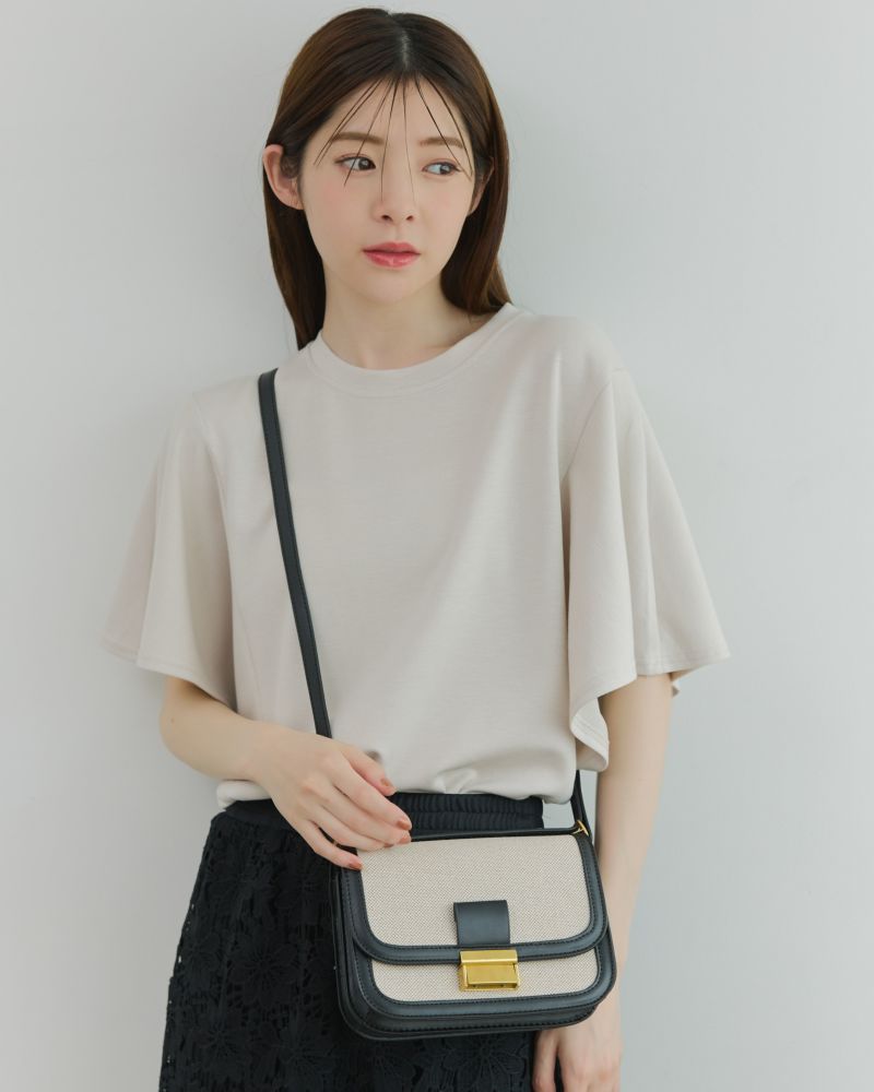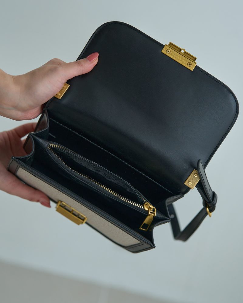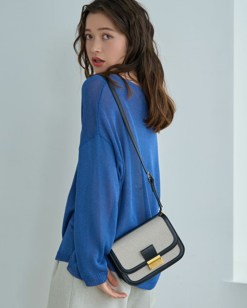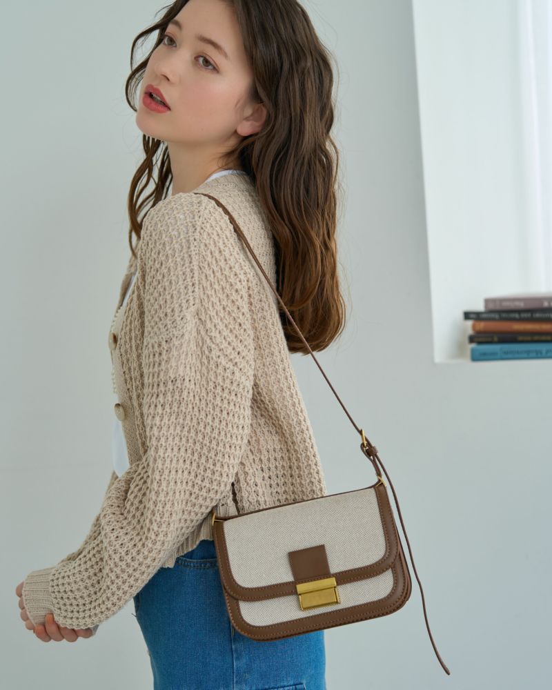 キャンバス×フェイクレザーコンビクロスボディーバッグ