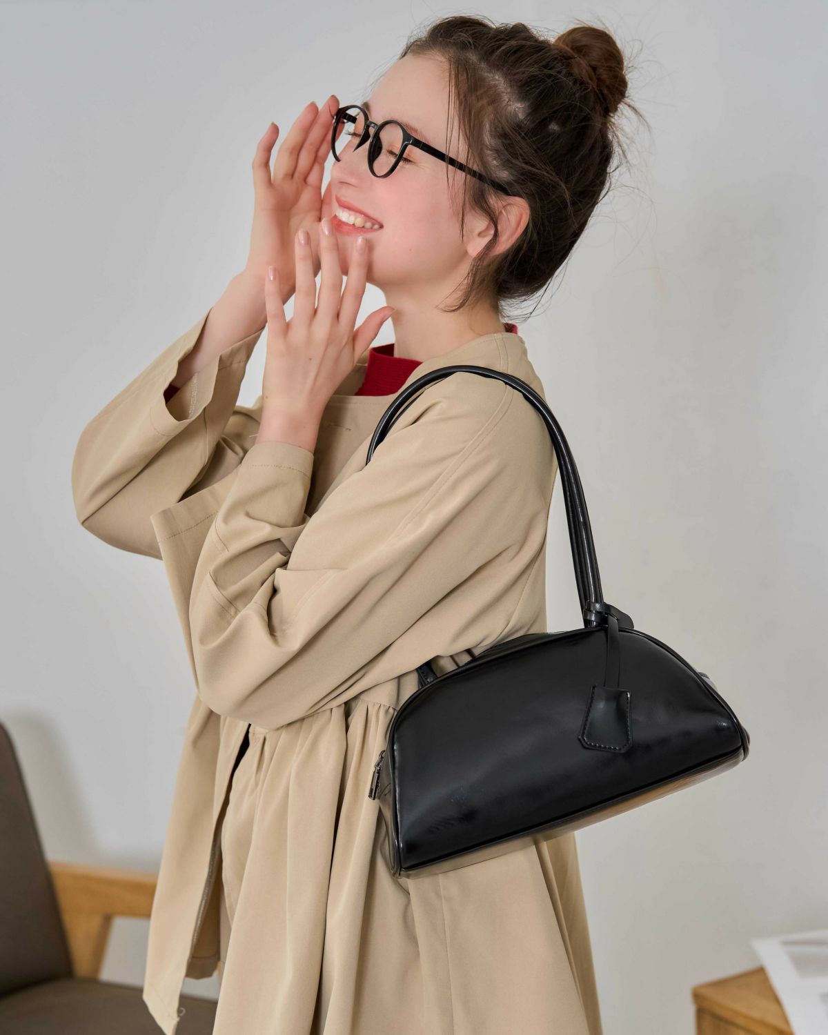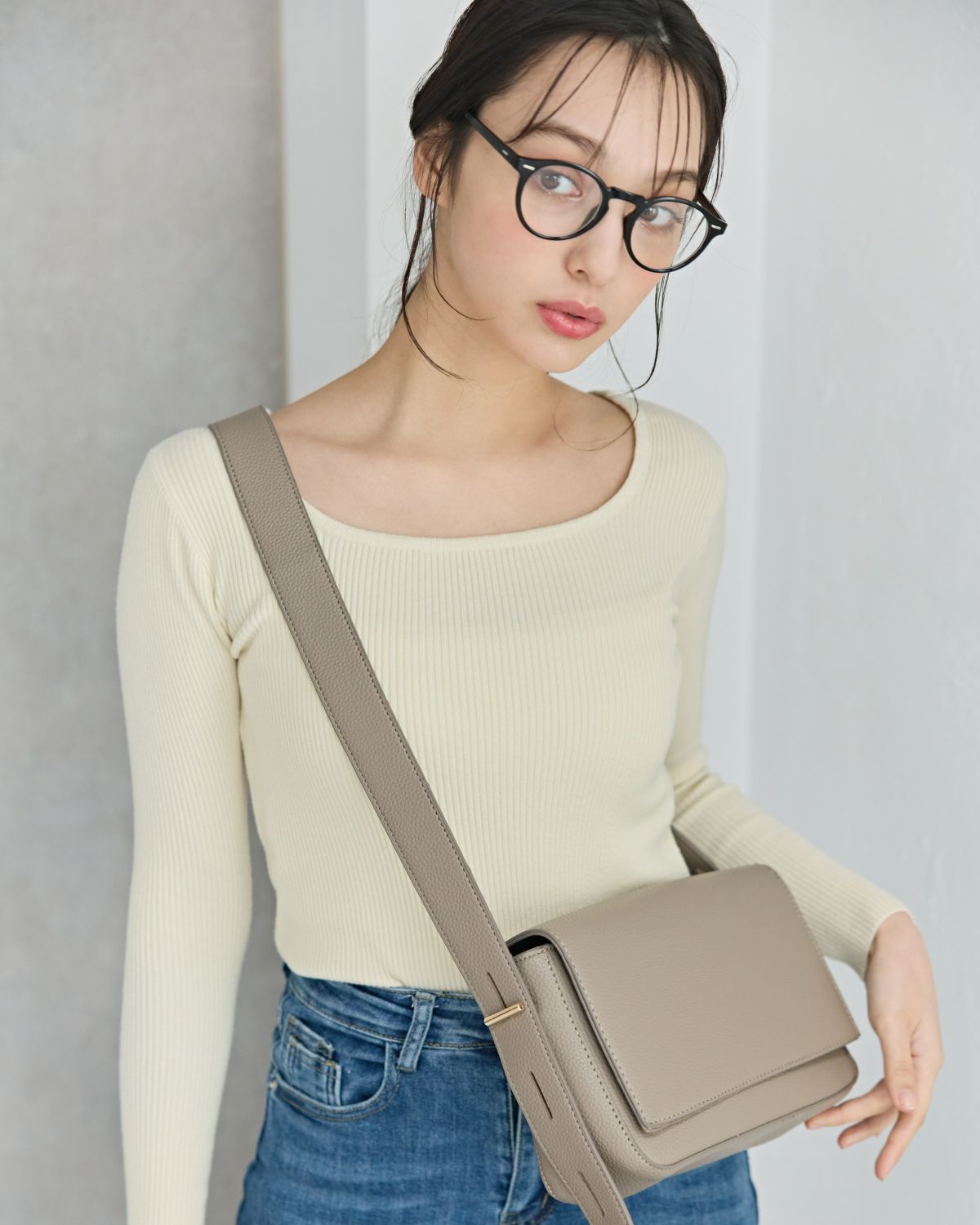 スウェードタッチポイントゴールドフラップ2wayバッグ