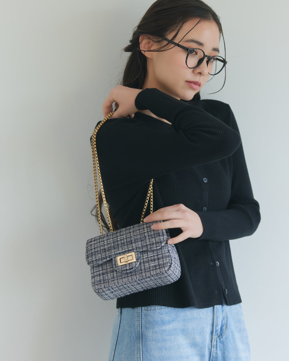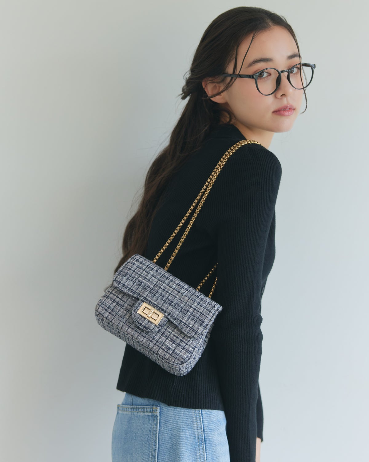 ミックスツイードフラップバッグ ミドル