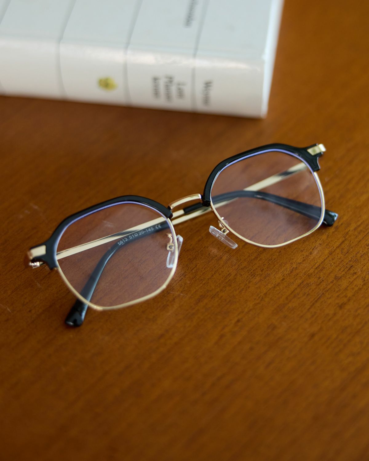【UV/ブルーライトカット】メタルフレームウエリントンメガネ